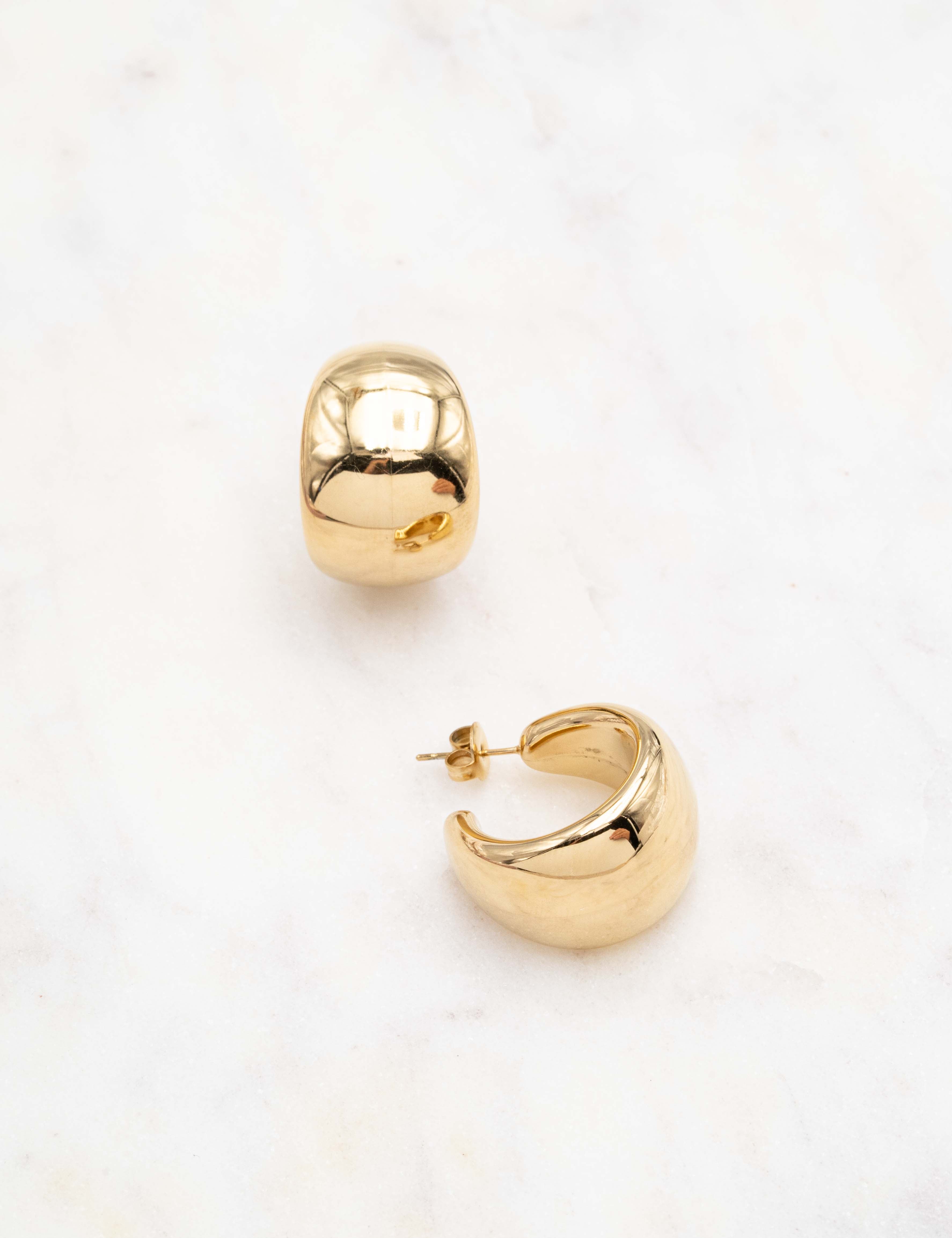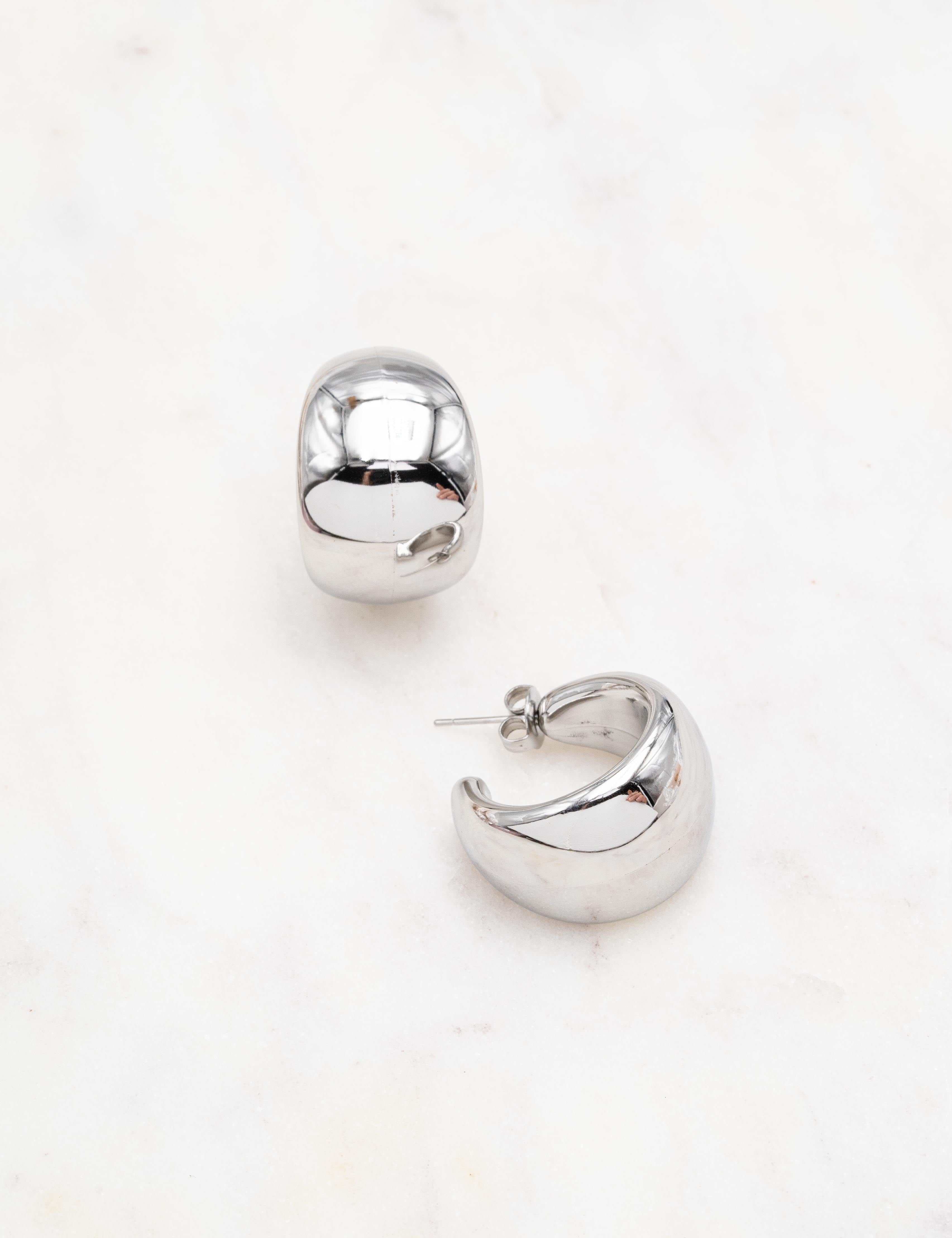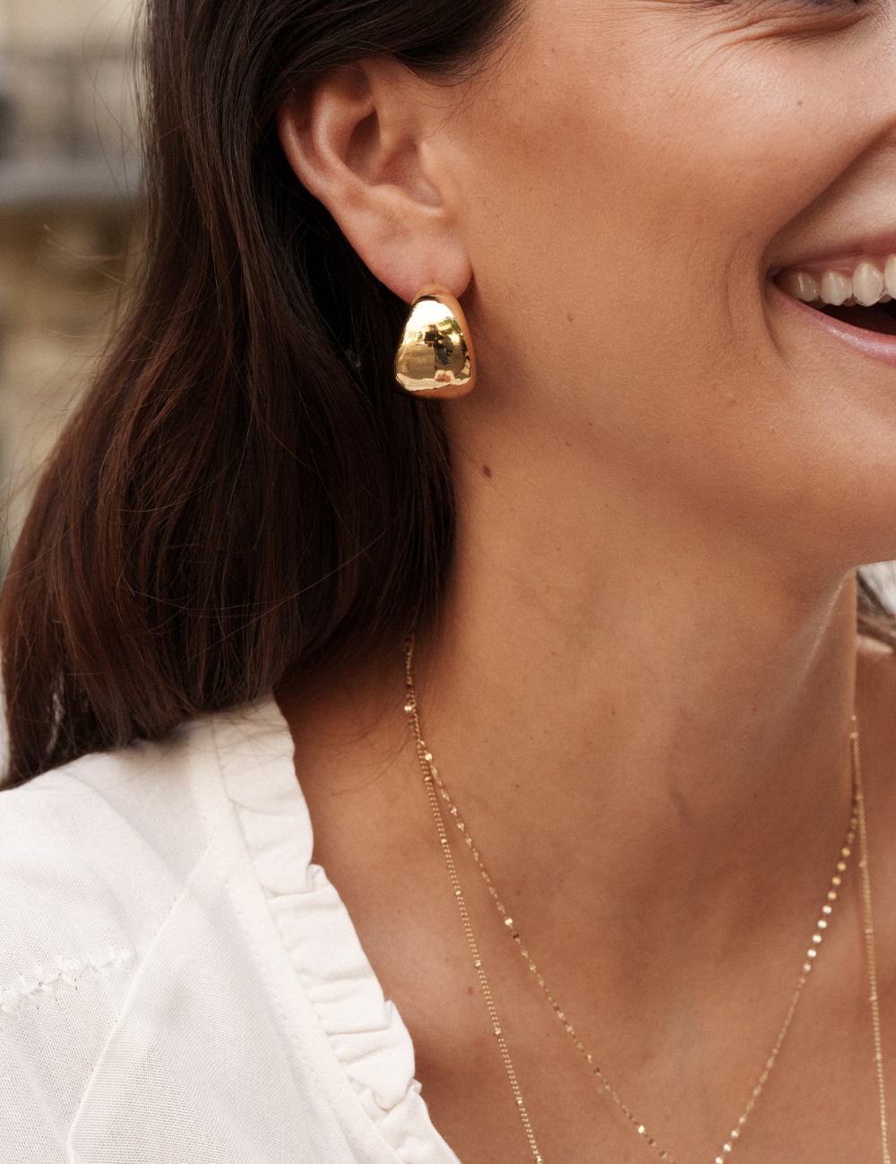 Boucles d'oreilles graphiques type créoles à puce effet bombé. Fermoir papillon.