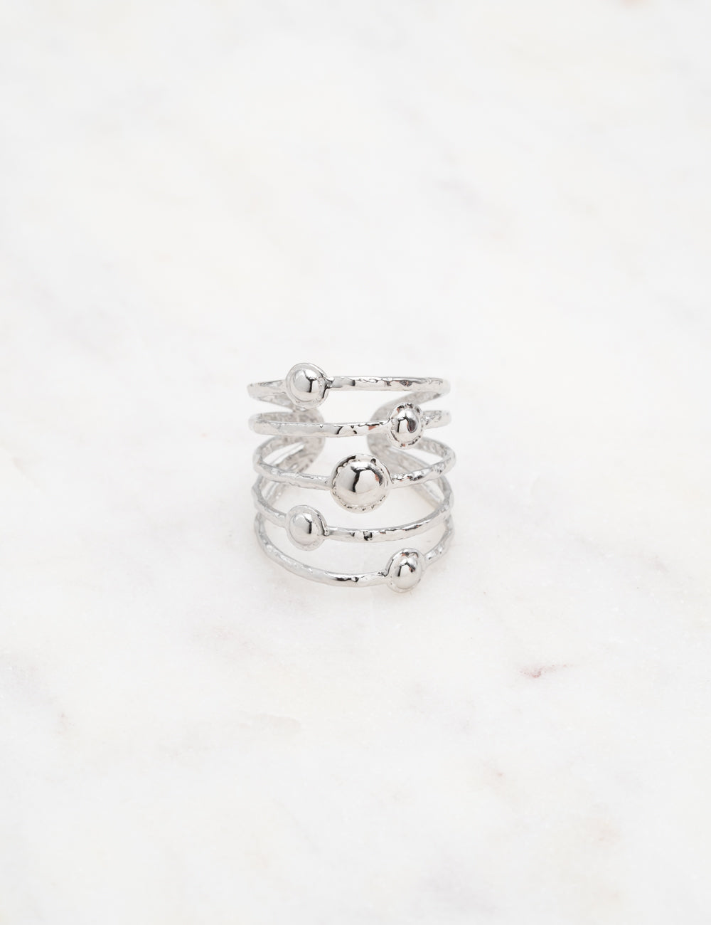 Bague ajustable graphique multirangs texturés avec des points martelés.