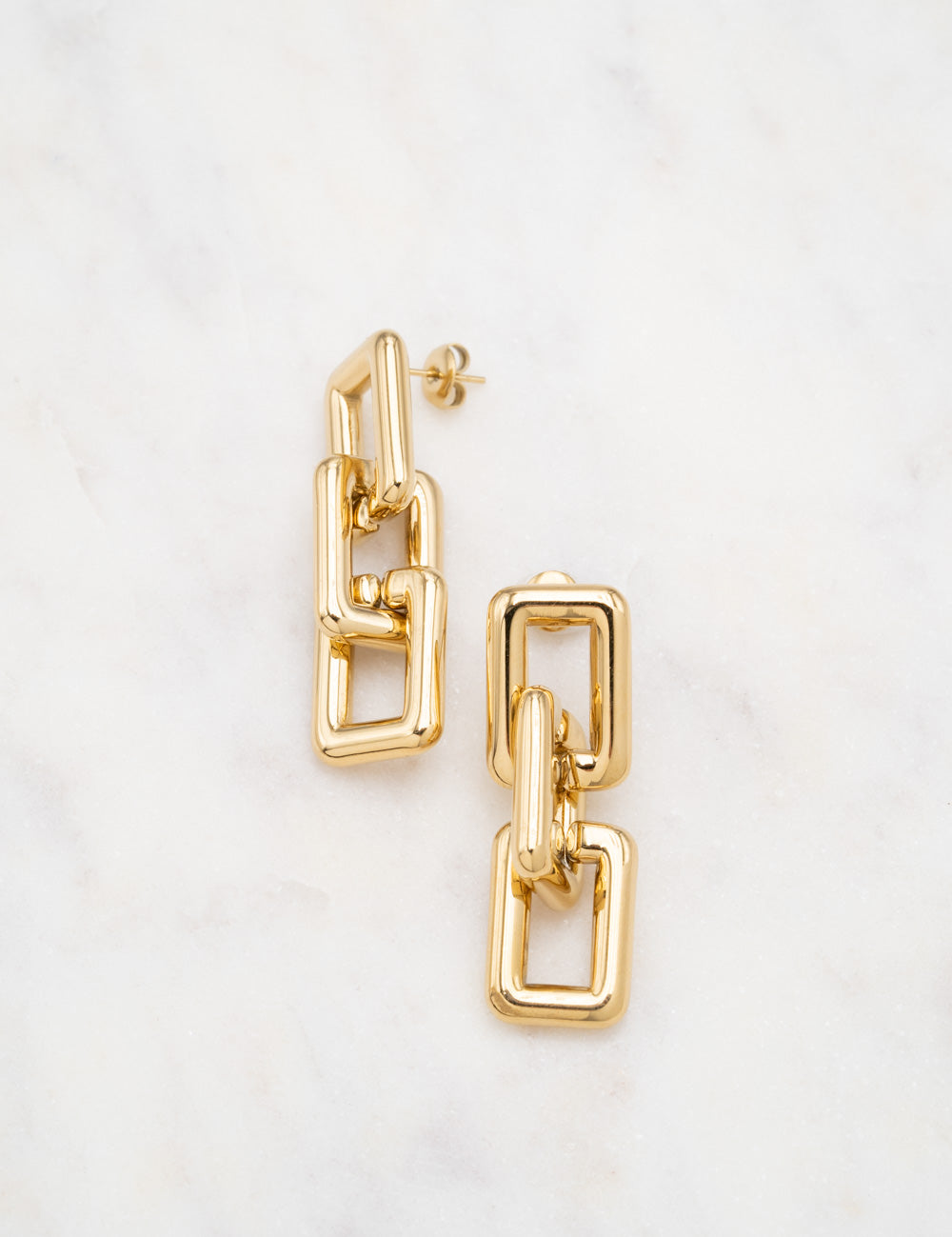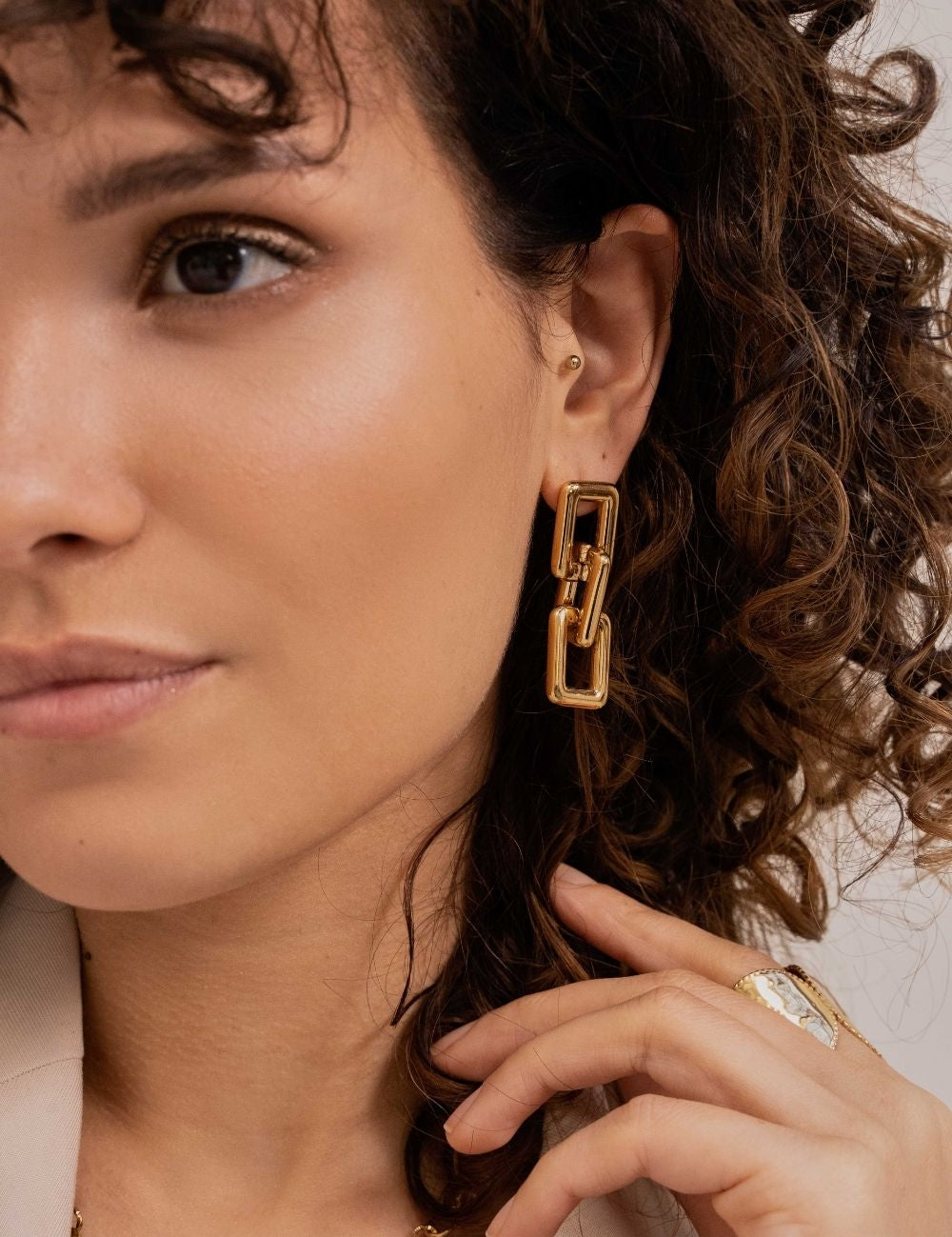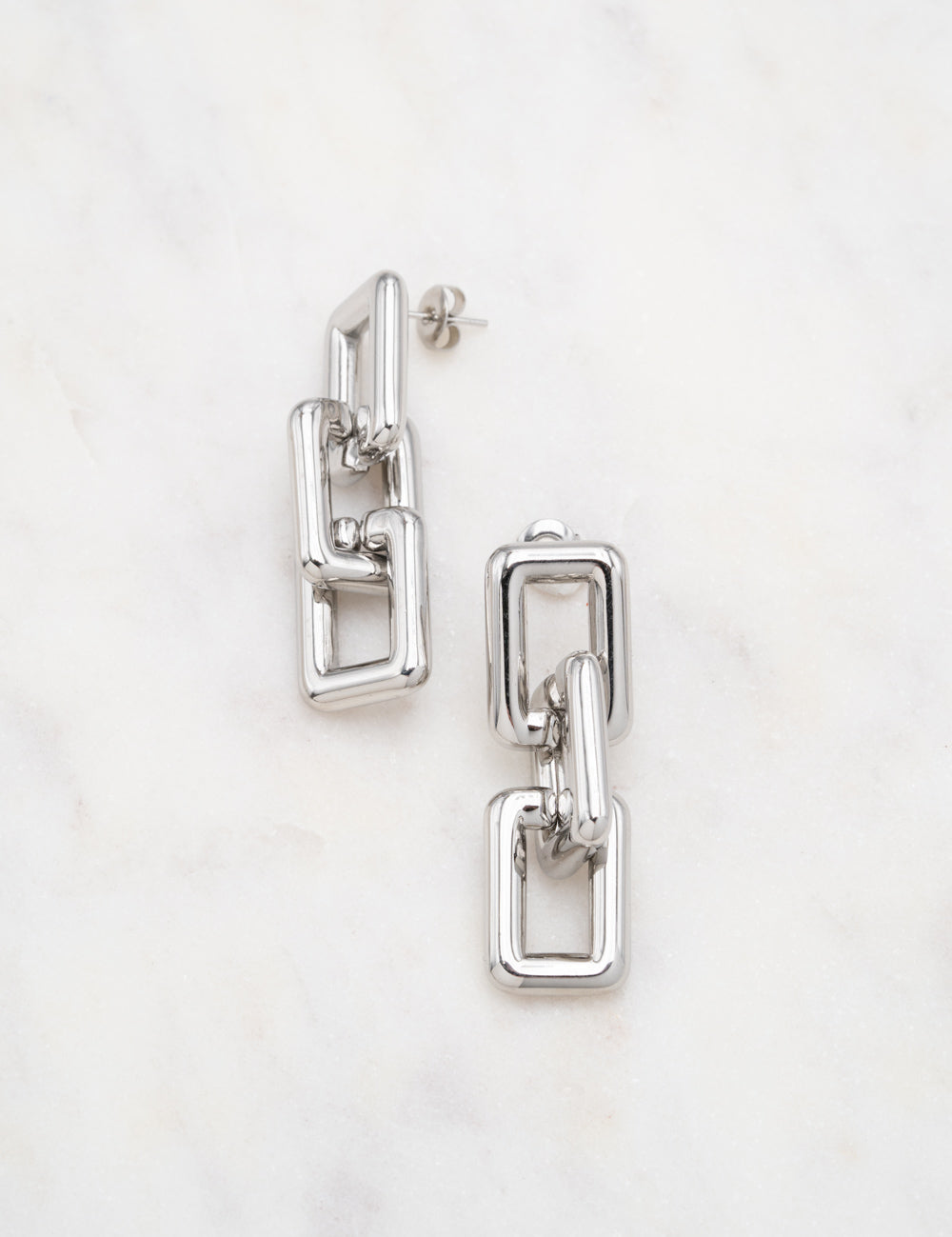 Boucles d'oreilles graphiques multi anneaux rectangulaires à puce. Fermoir papillon.