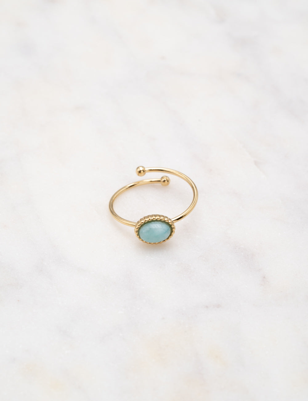 Bague fine ovale ajustable ornée d'une pierre naturelle.