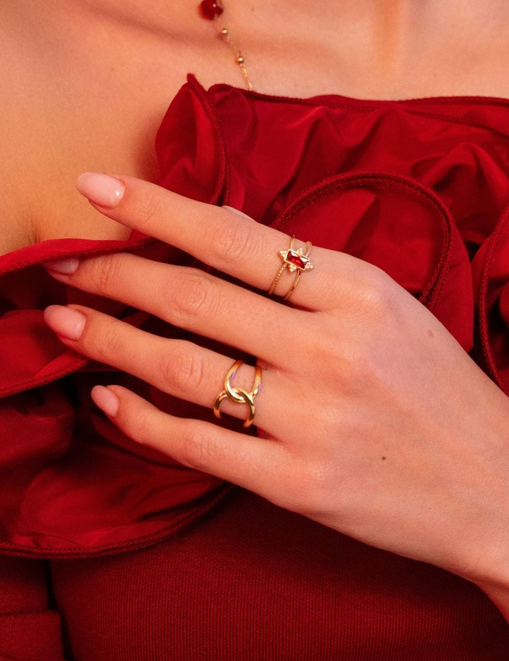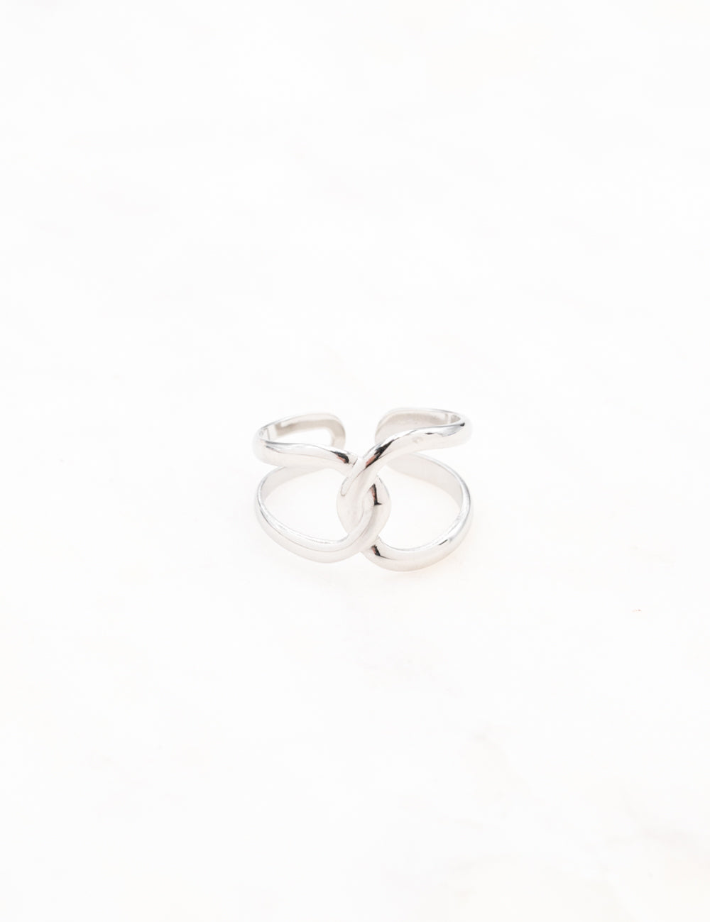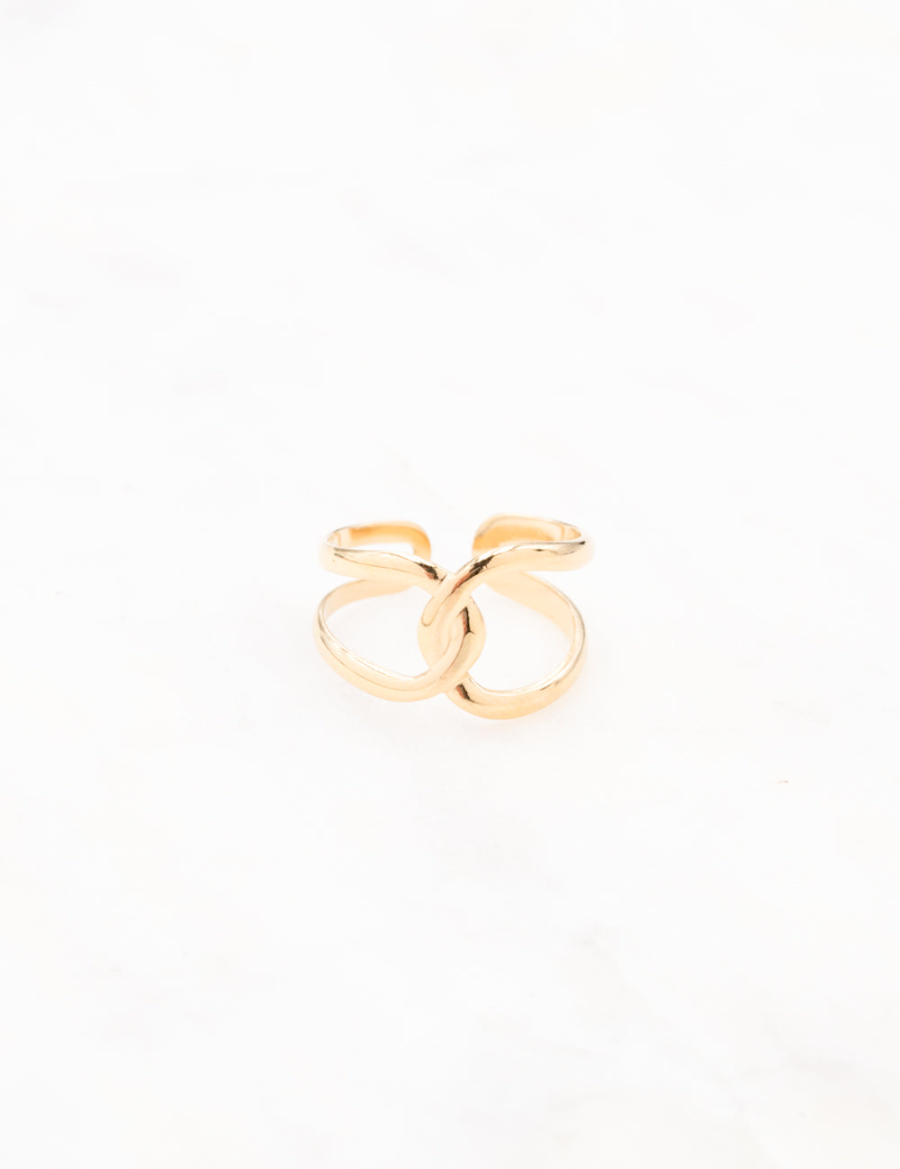 Bague ajustable double rangs avec un jeu de lignes graphiques effet entrelacé.