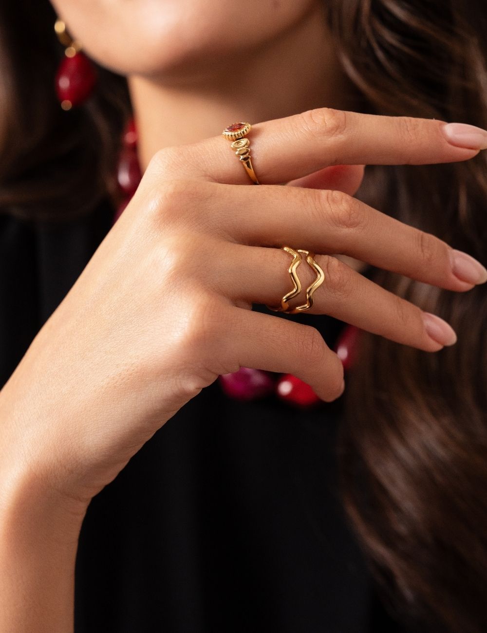 Bague ajustable double rangs avec un jeu de lignes graphiques effet zigzag.