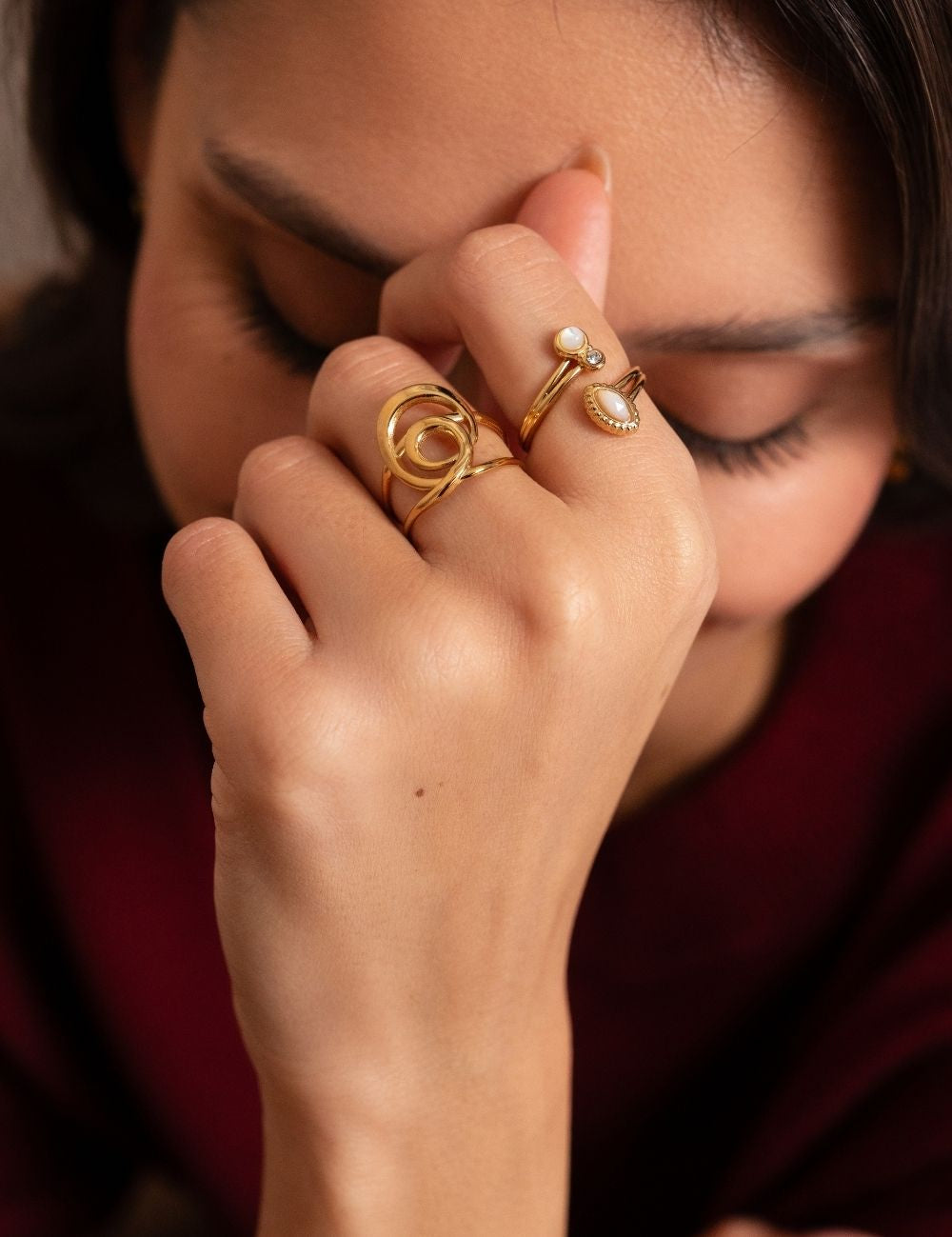 Bague ajustable double rangs avec un jeu de lignes graphiques effet tourbillon.