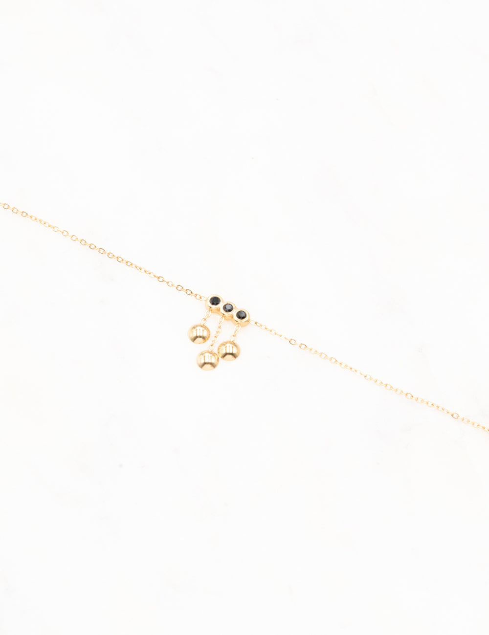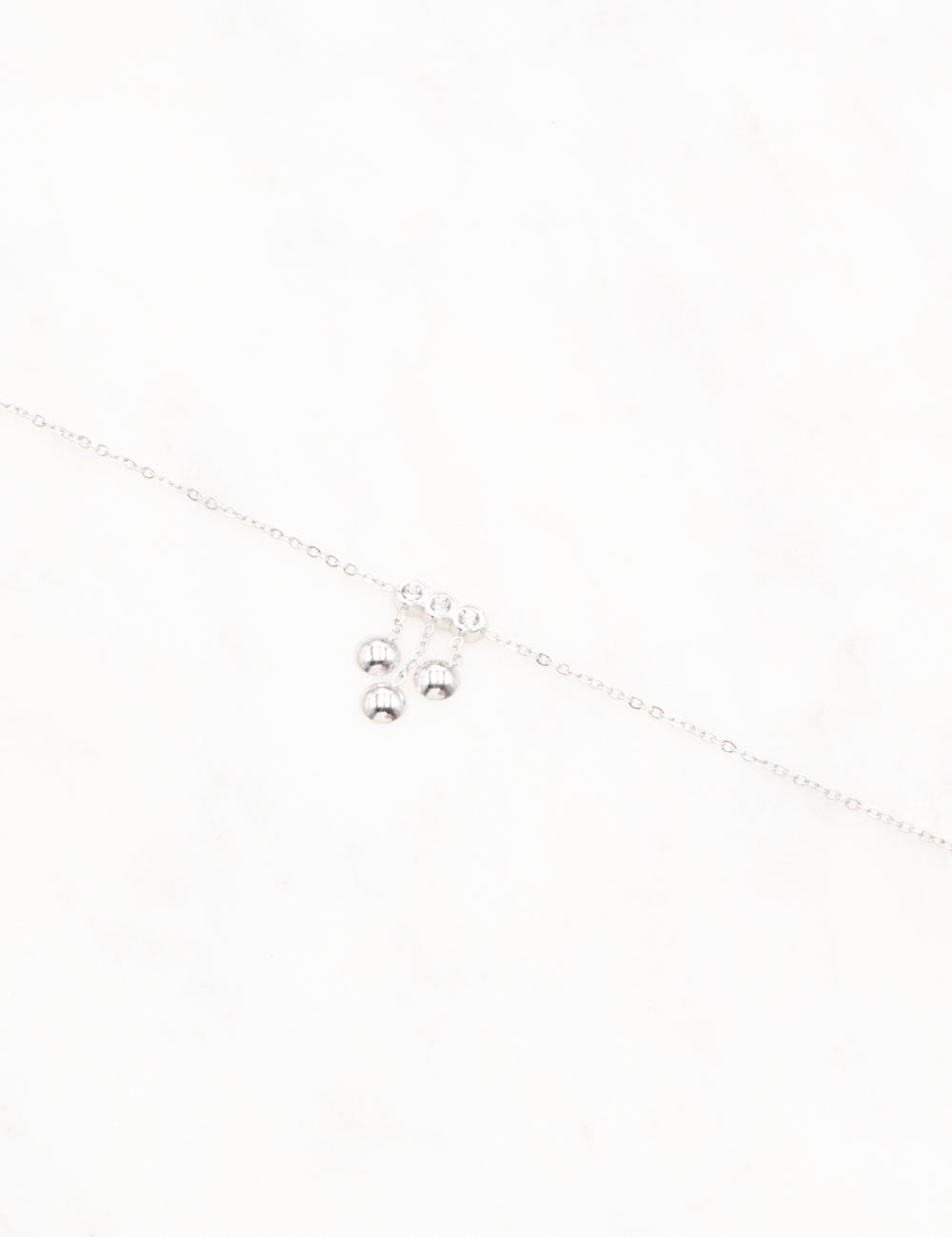 Bracelet réglable sur chaîne composé de chaînes et de pampilles rondes et de trois strass.