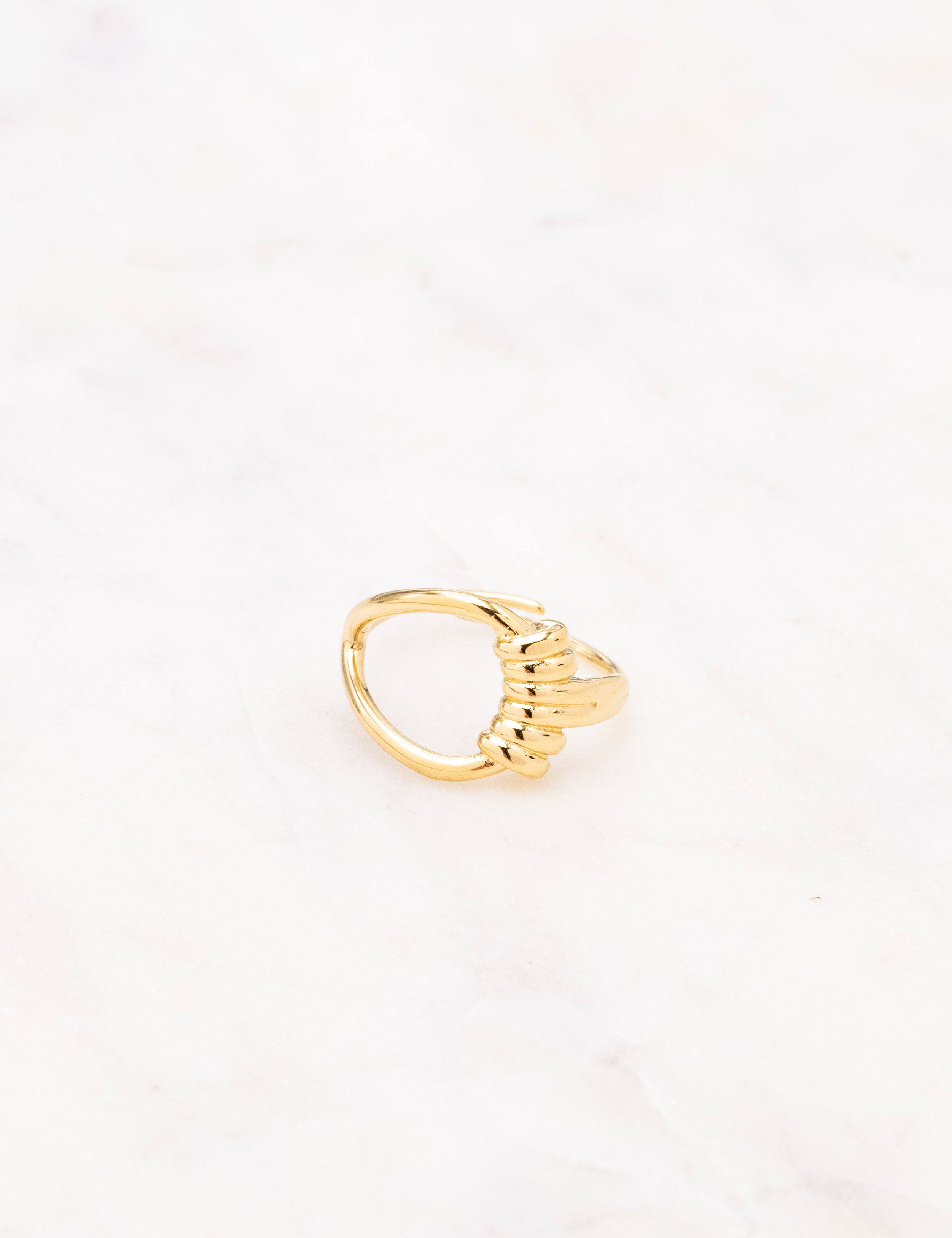 Bague graphique ajustable ajourée et effet cordage sur le côté.