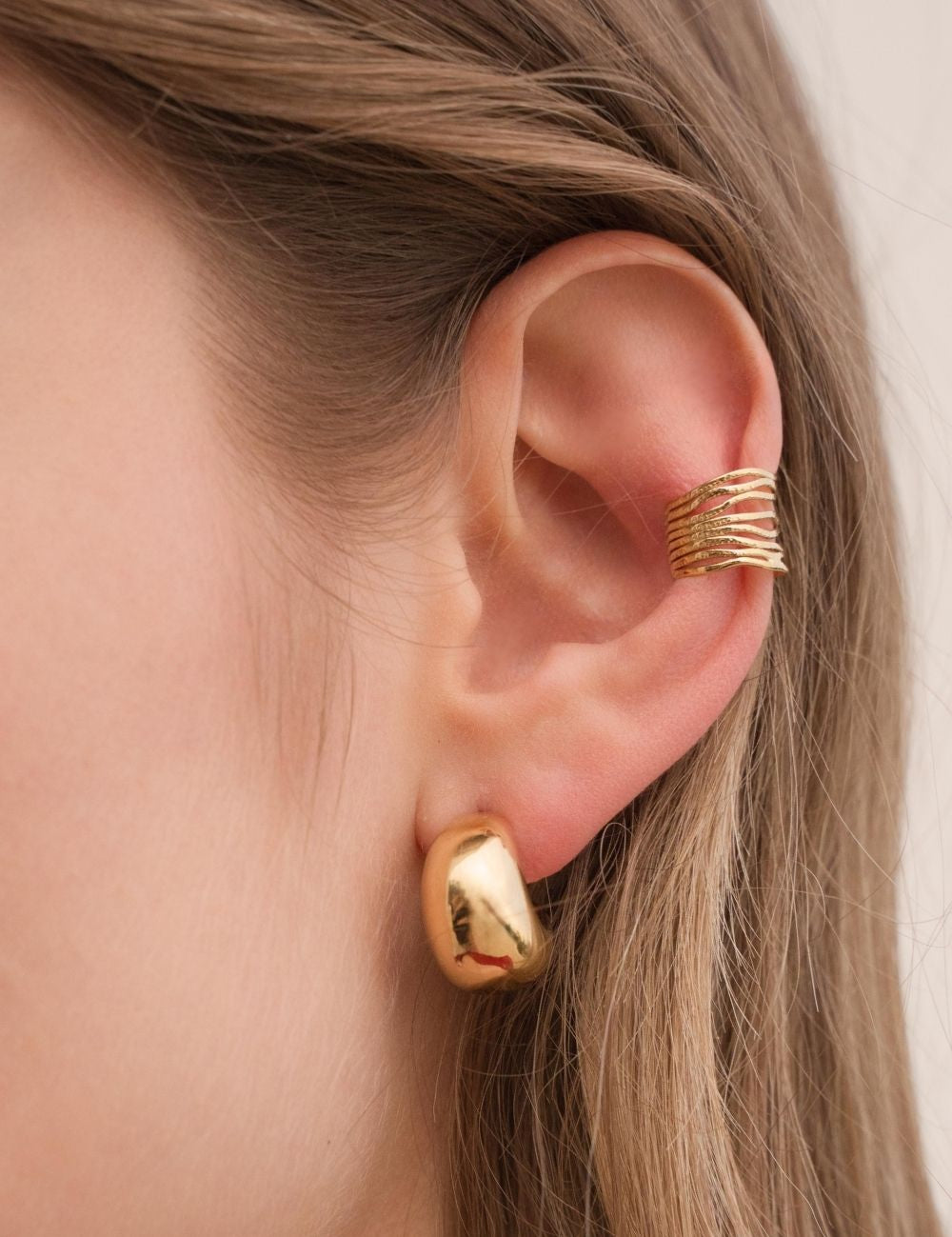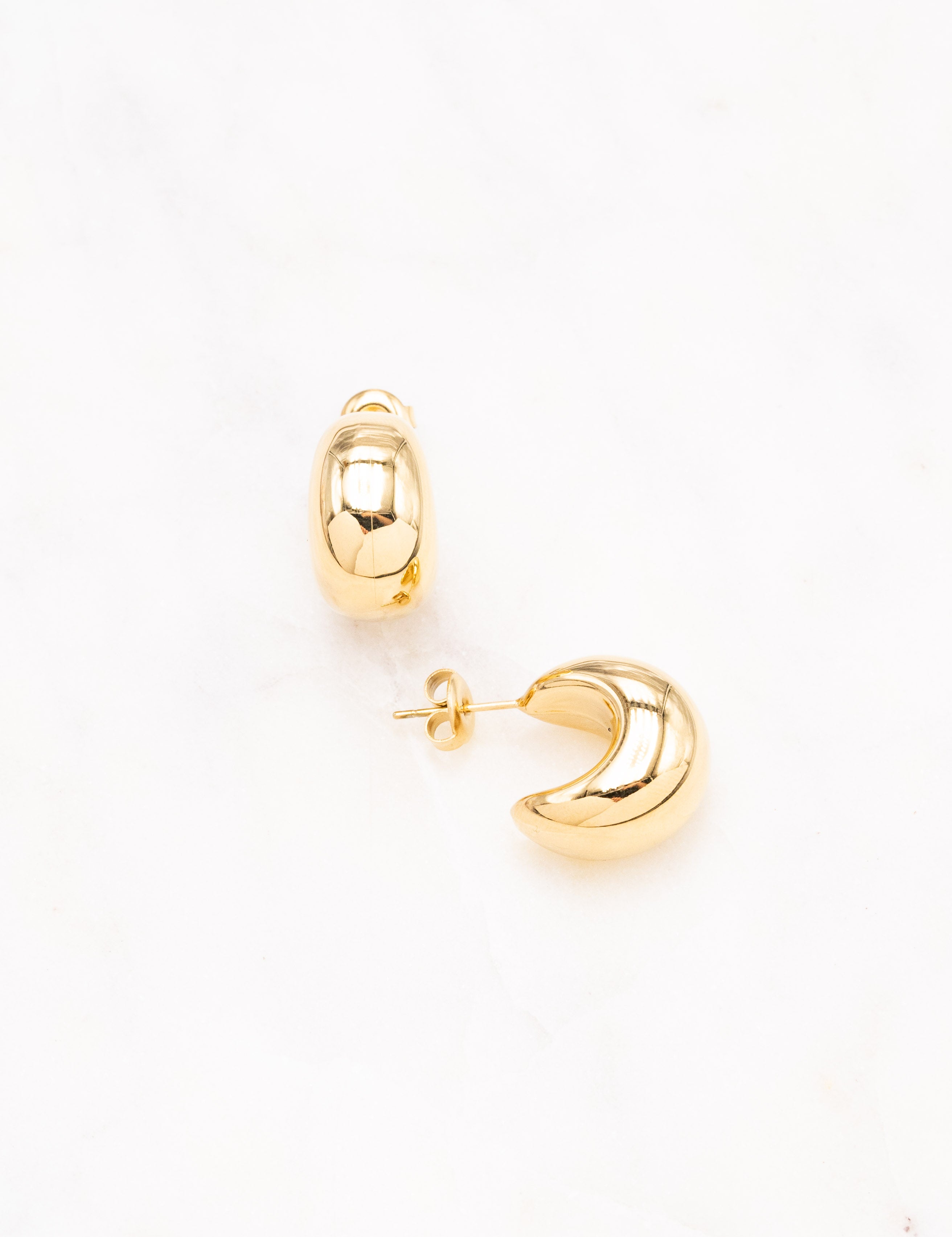 Boucles d'oreilles graphiques type créoles à puce effet bombé.