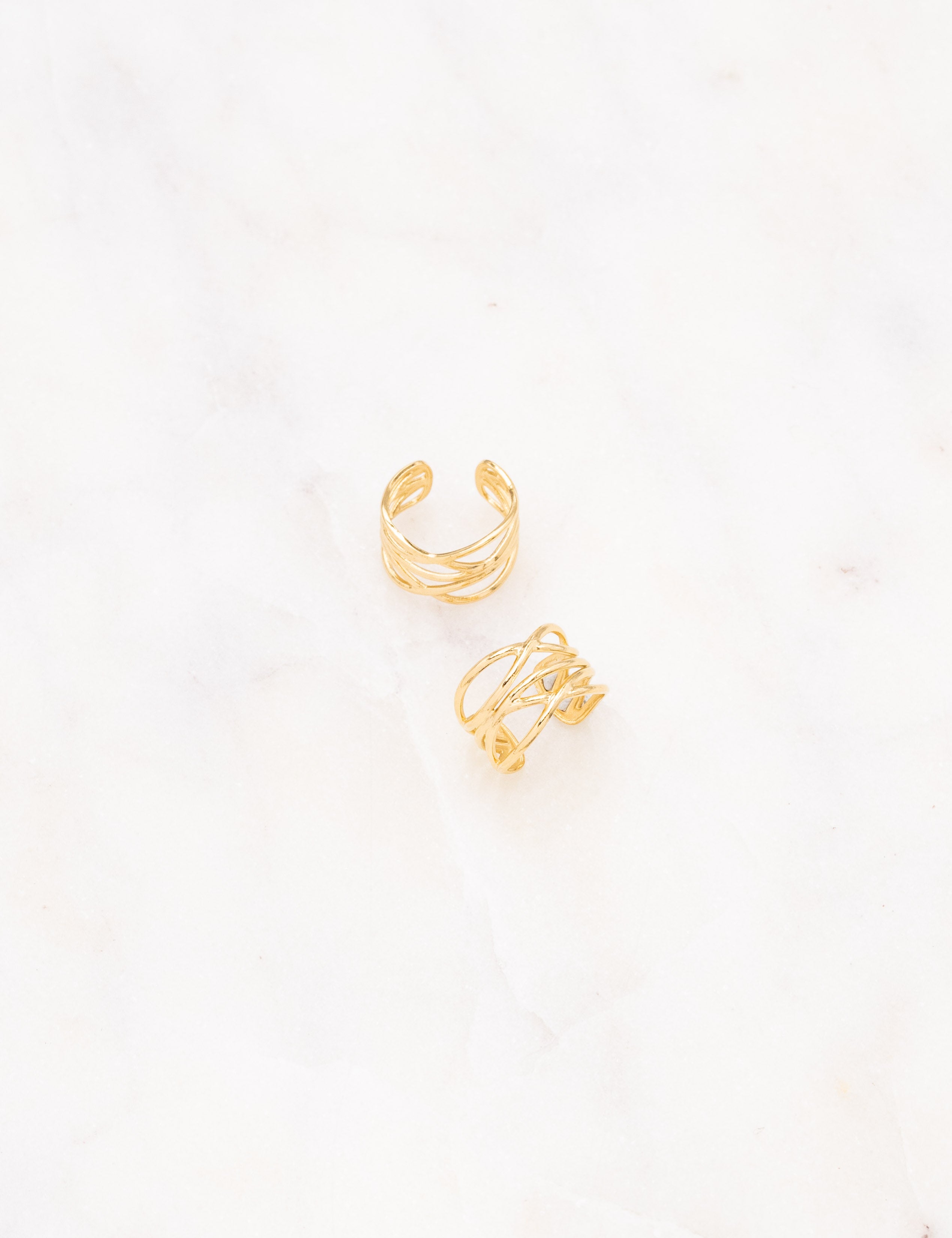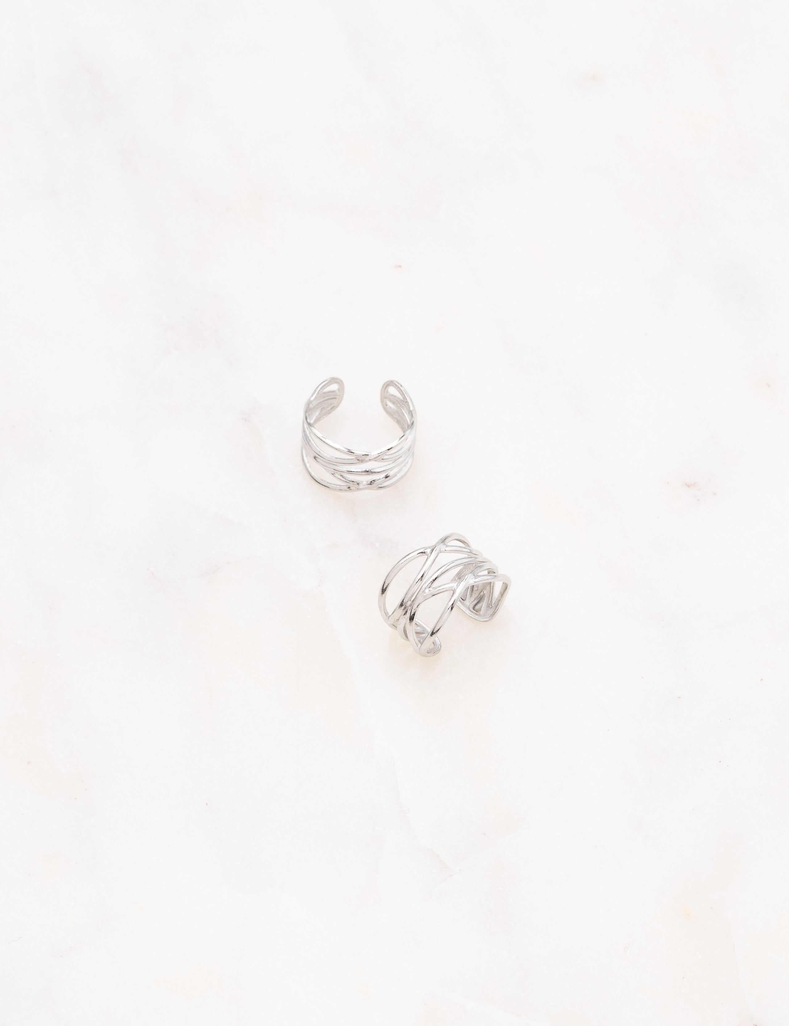 Lot de 2 Ear Cuffs double rangs croisés texturés. Ajustables en resserrant sur les extrémités et ne nécessitent pas d'avoir les oreilles percées.