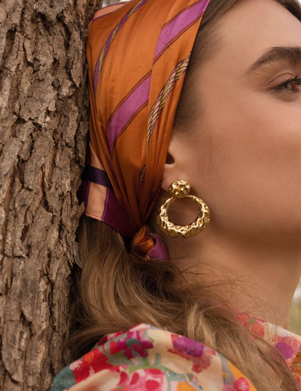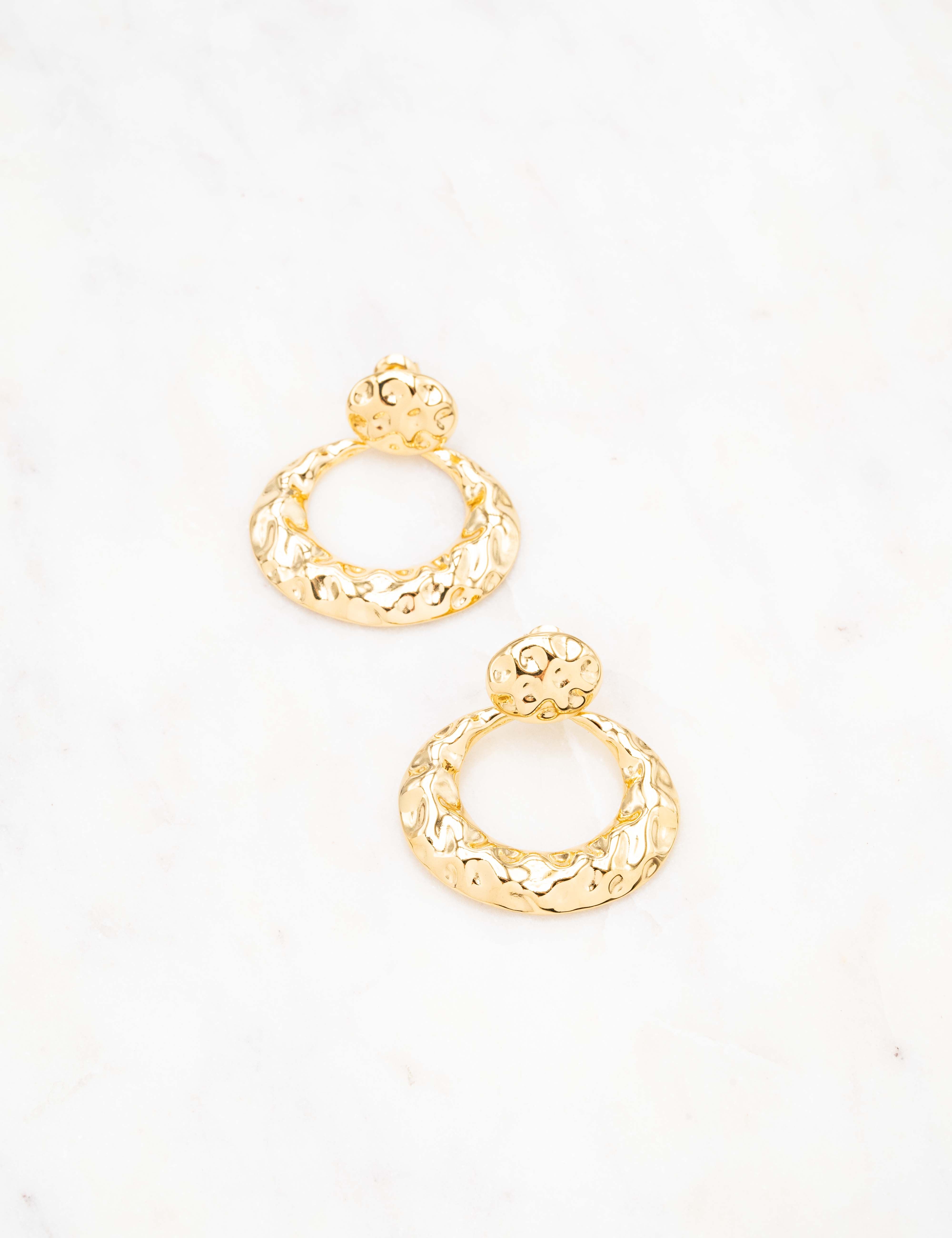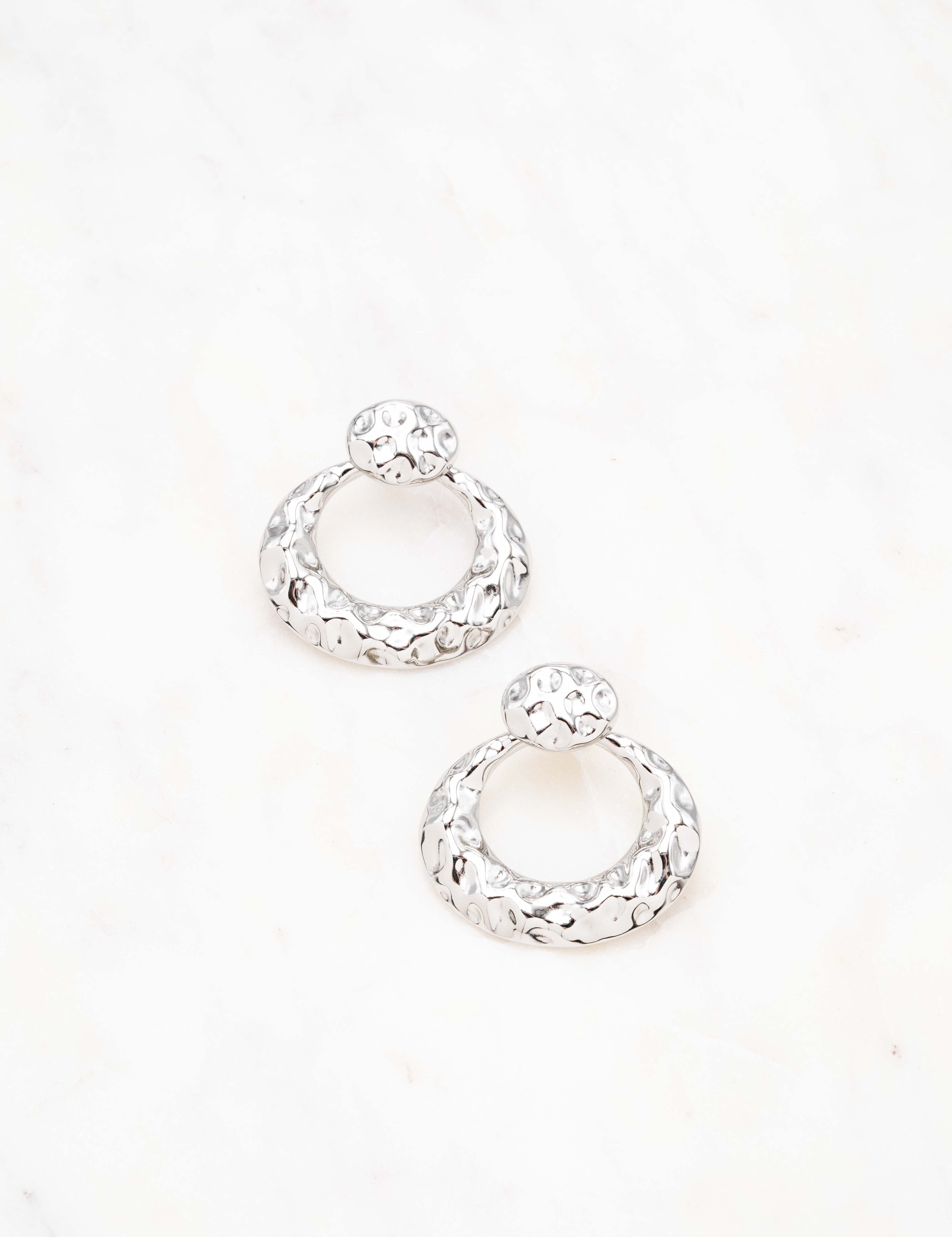 Boucles d'oreilles graphiques à puce composées d'une pièce texturée et ajourée de forme ronde.
