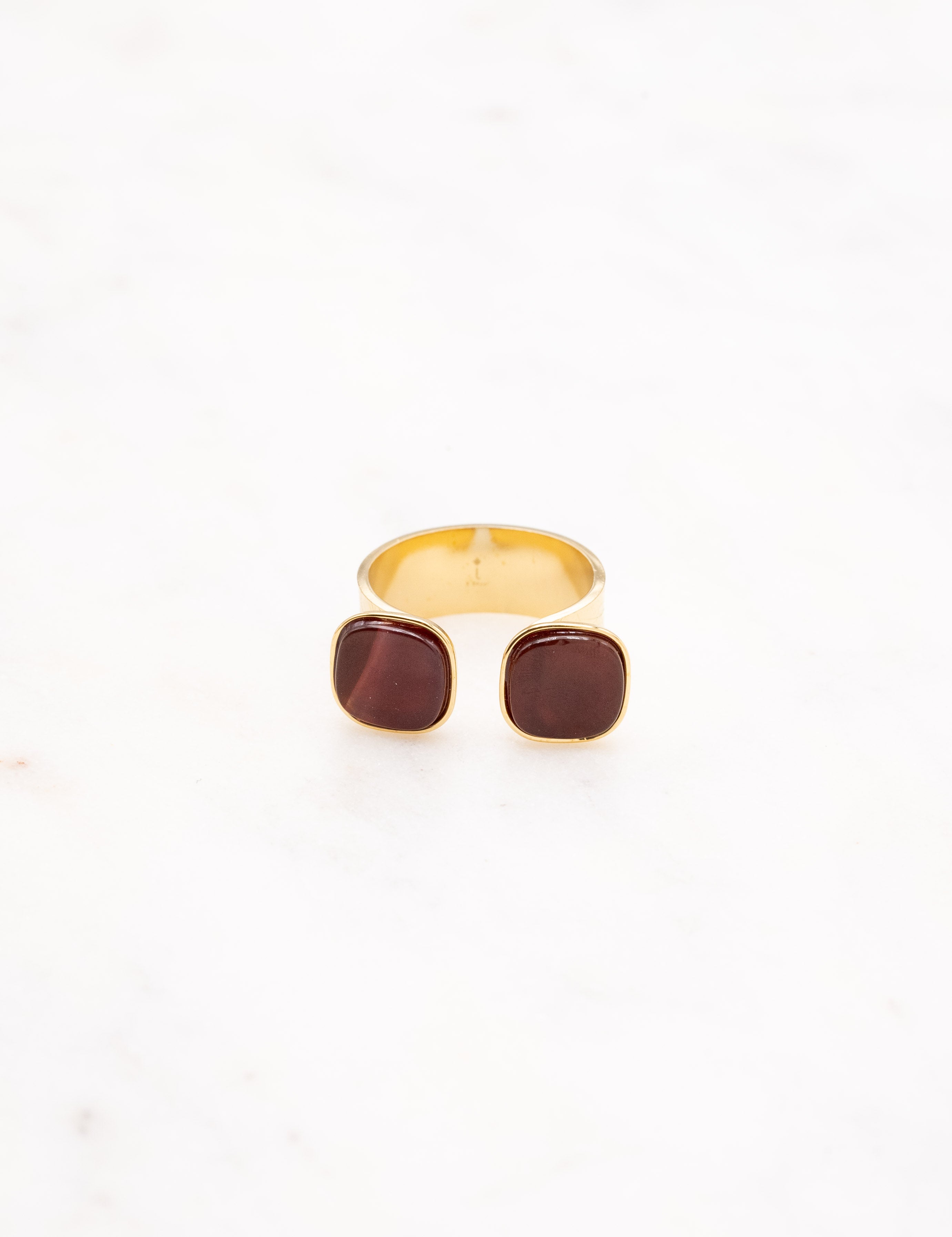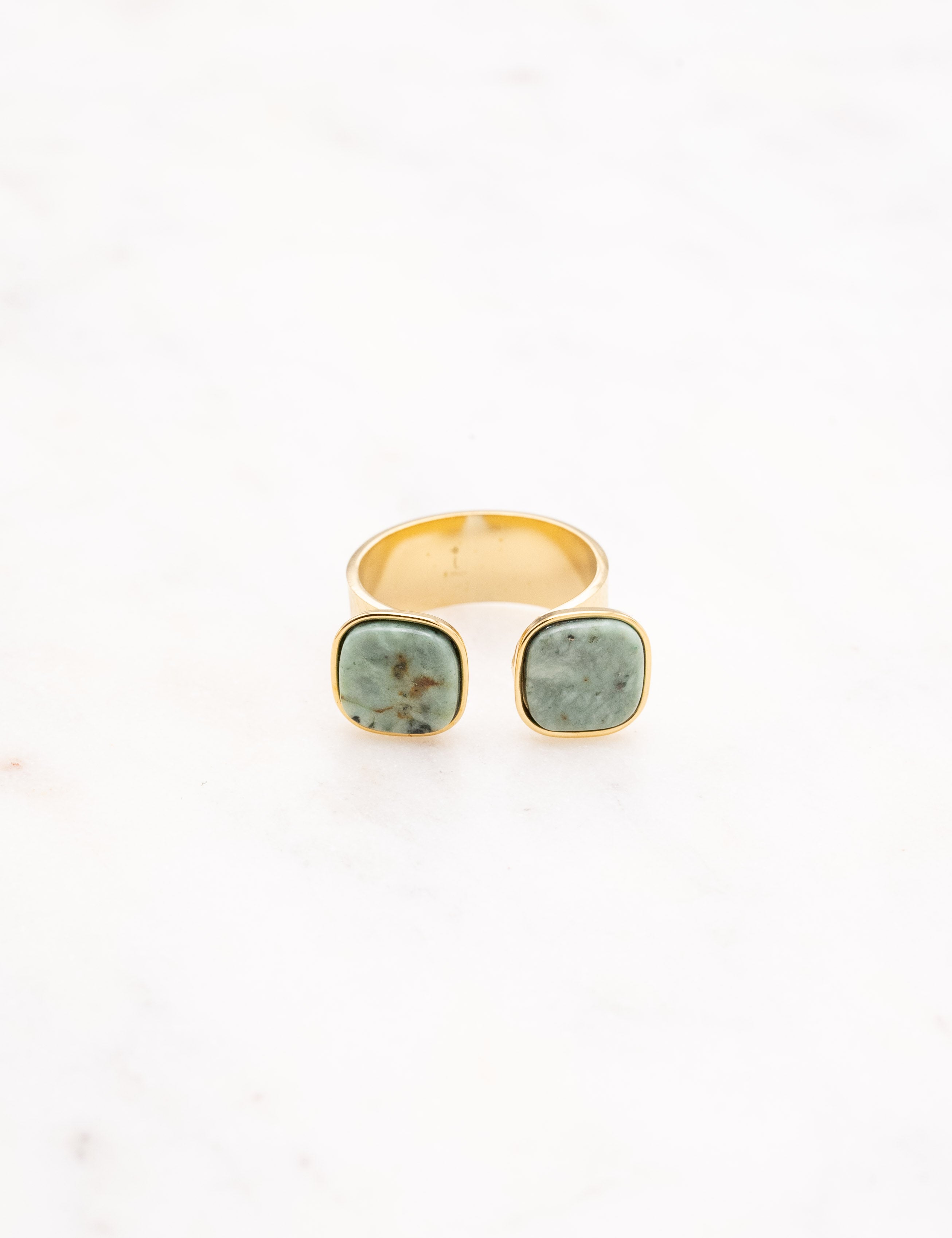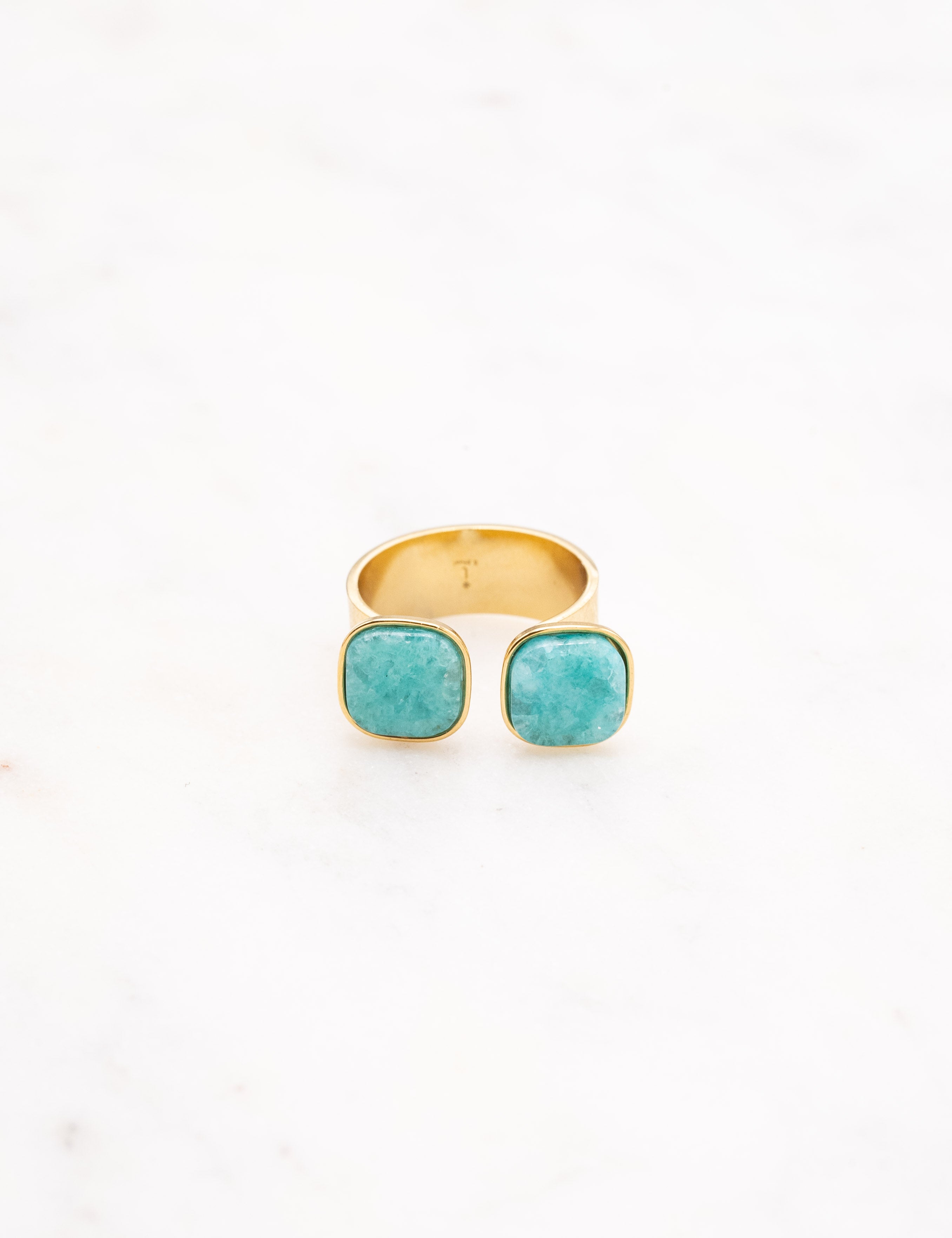 Bague ajustable composée de deux pierres naturelles carrées. Ouverture par le devant.