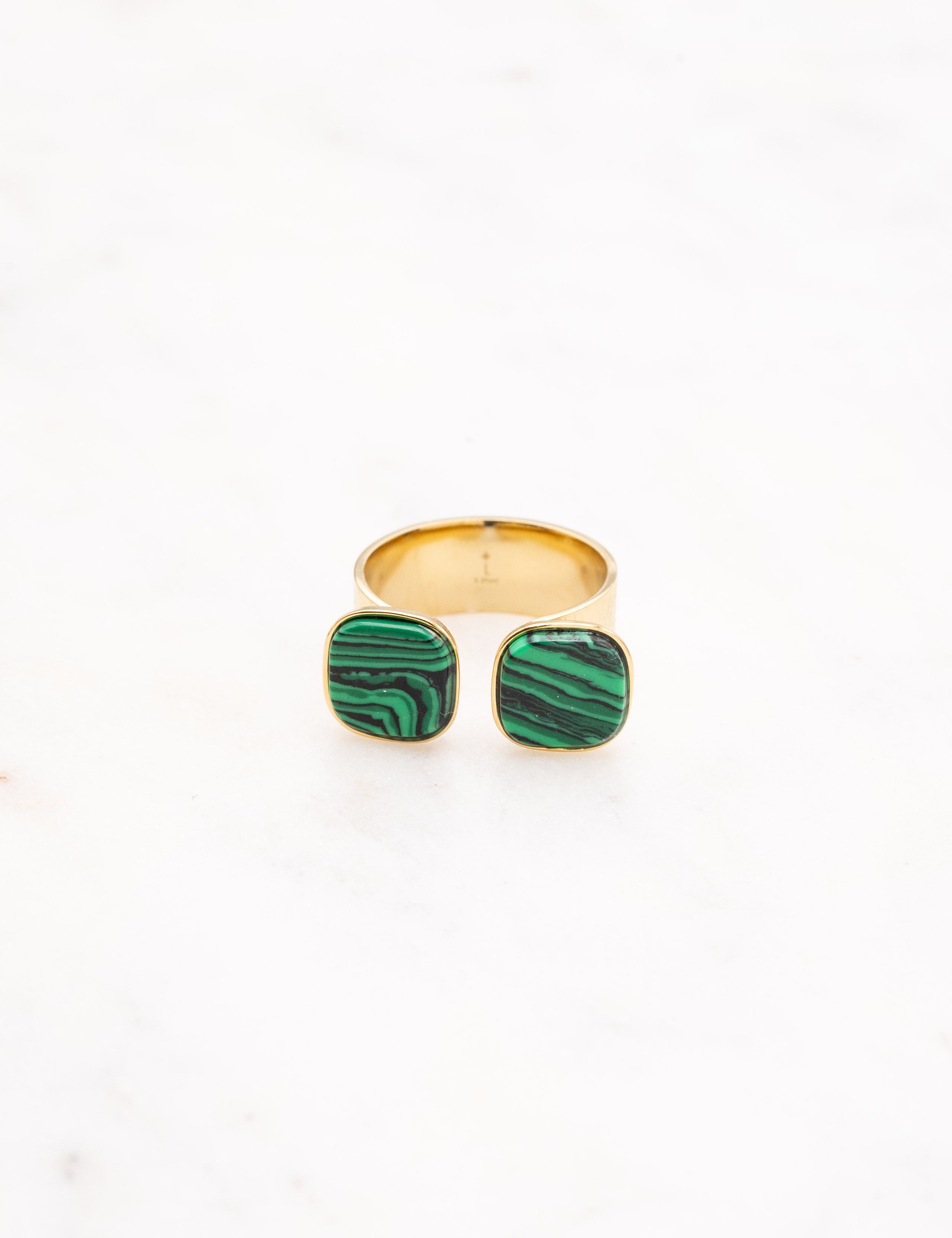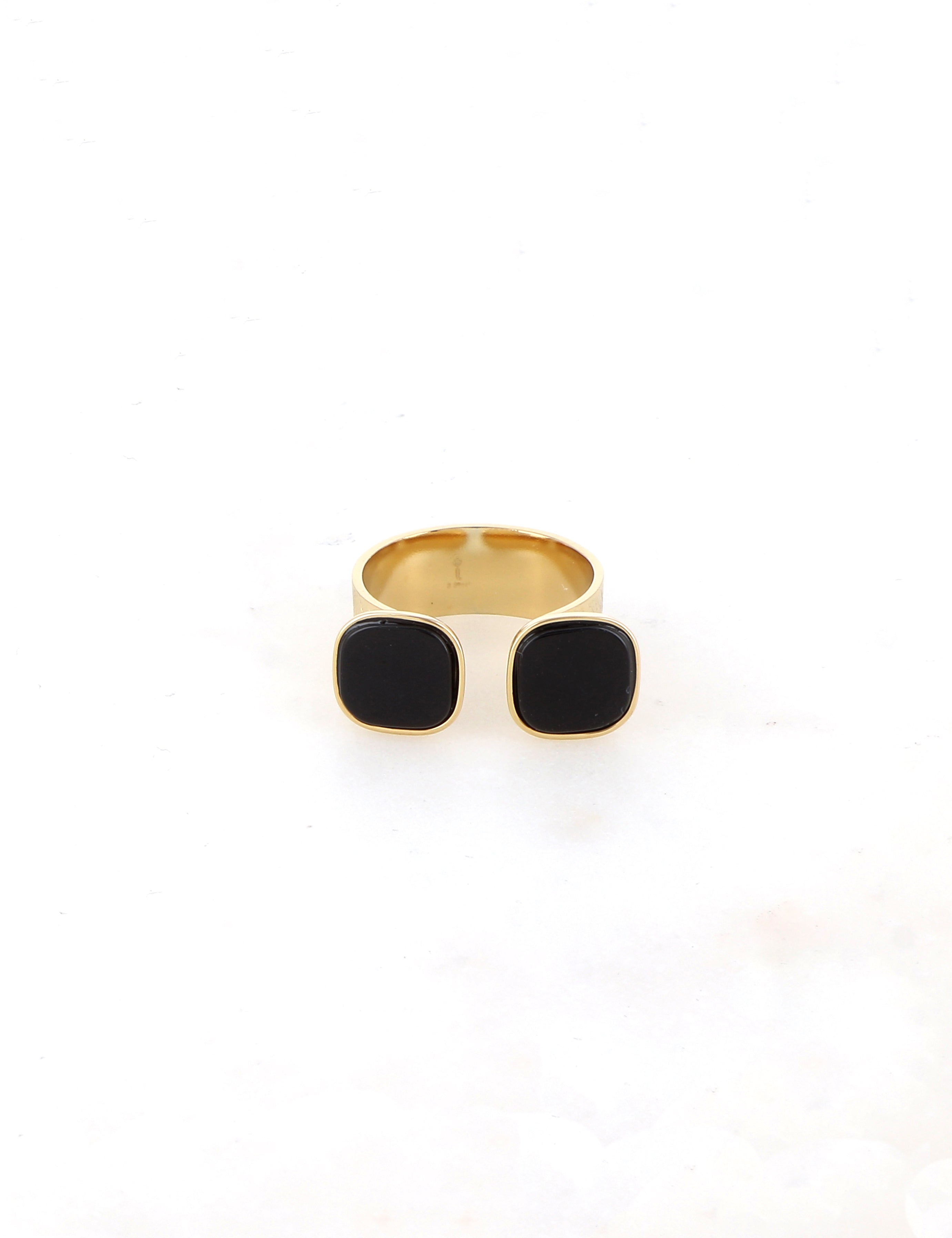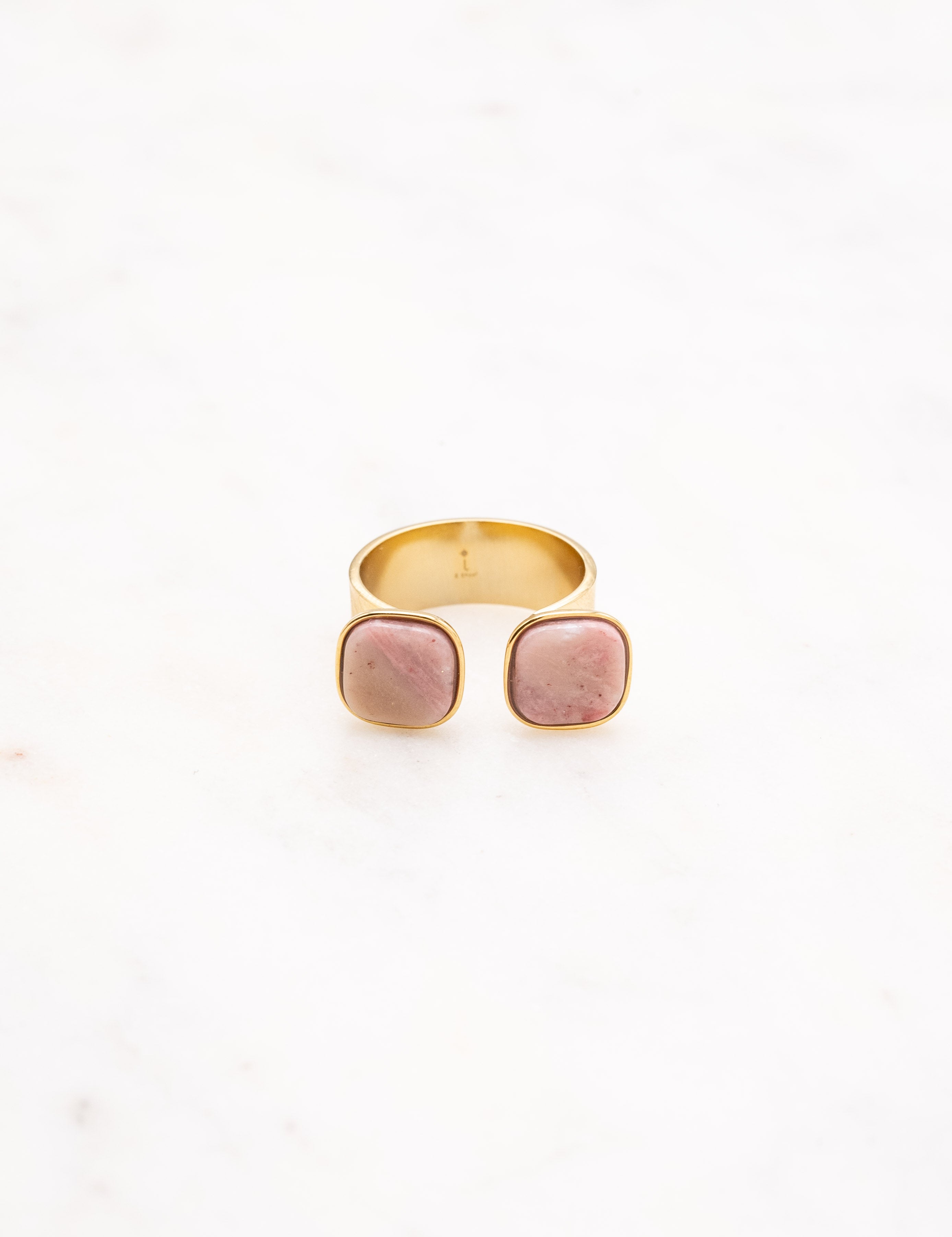Bague ajustable composée de deux pierres naturelles carrées. Ouverture par le devant.