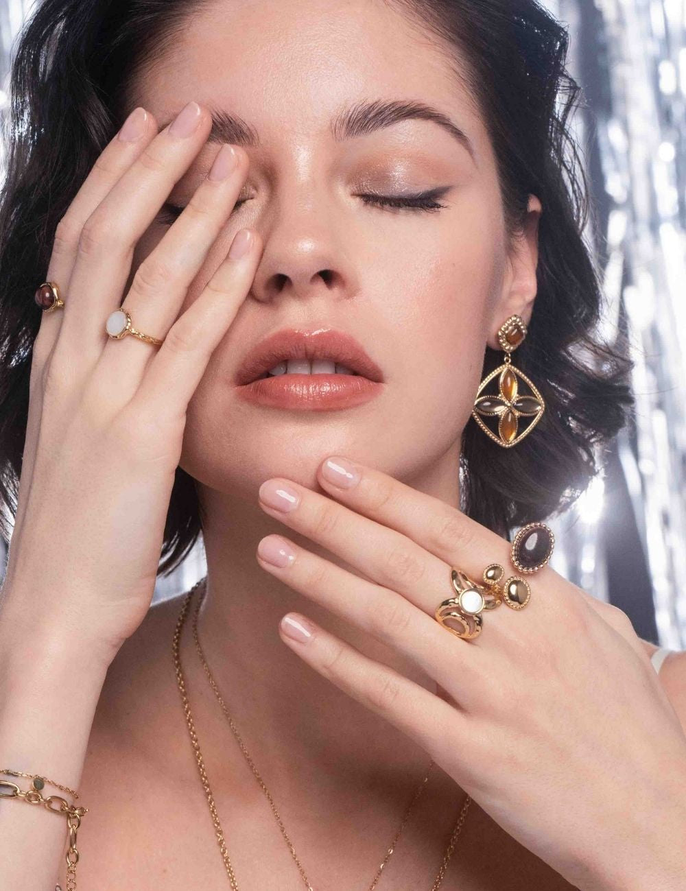 - Les pierres naturelles: Nacre blanche, Onyx, Agate verte, Oeil de taureau, Cornaline, Malachite reconstituée.