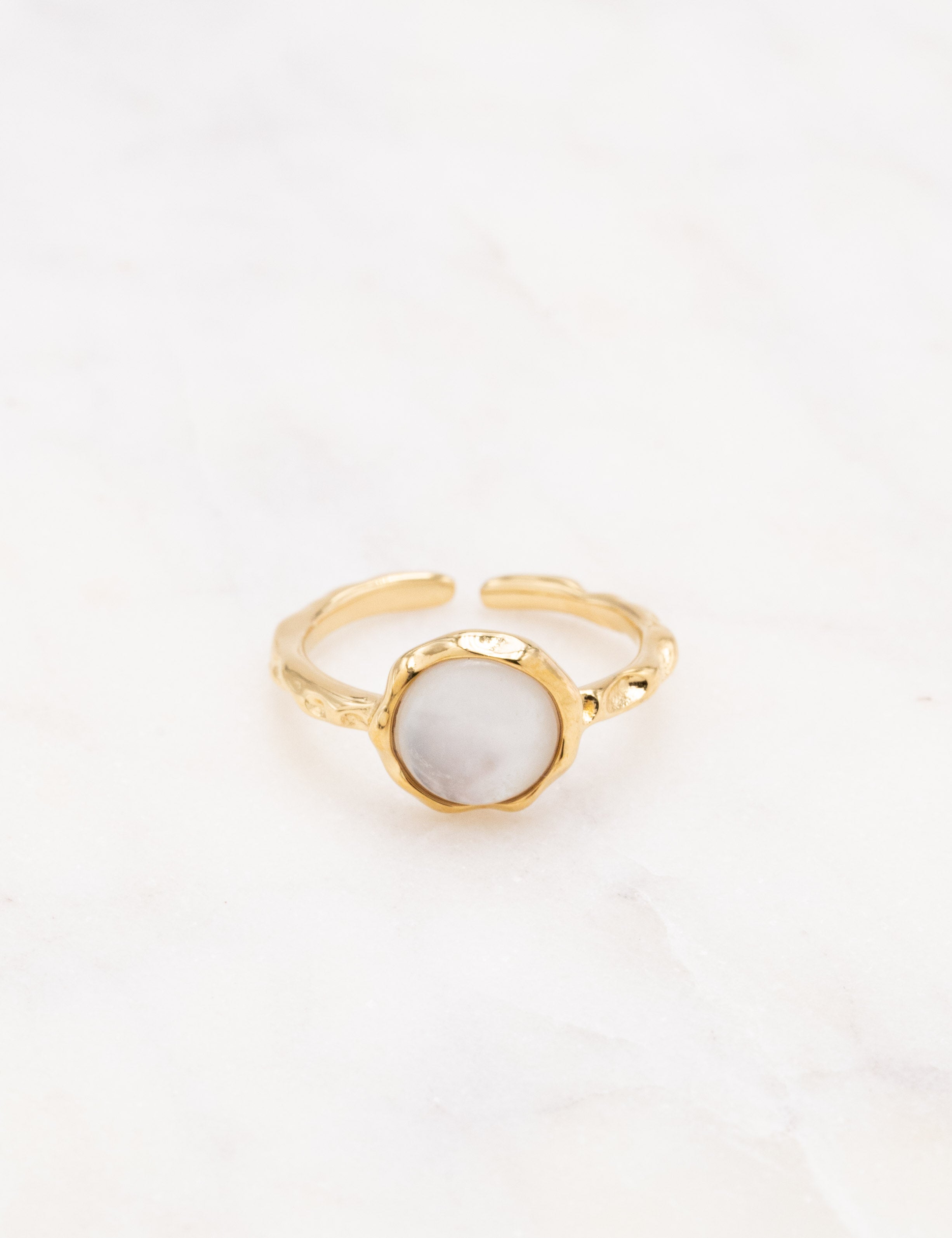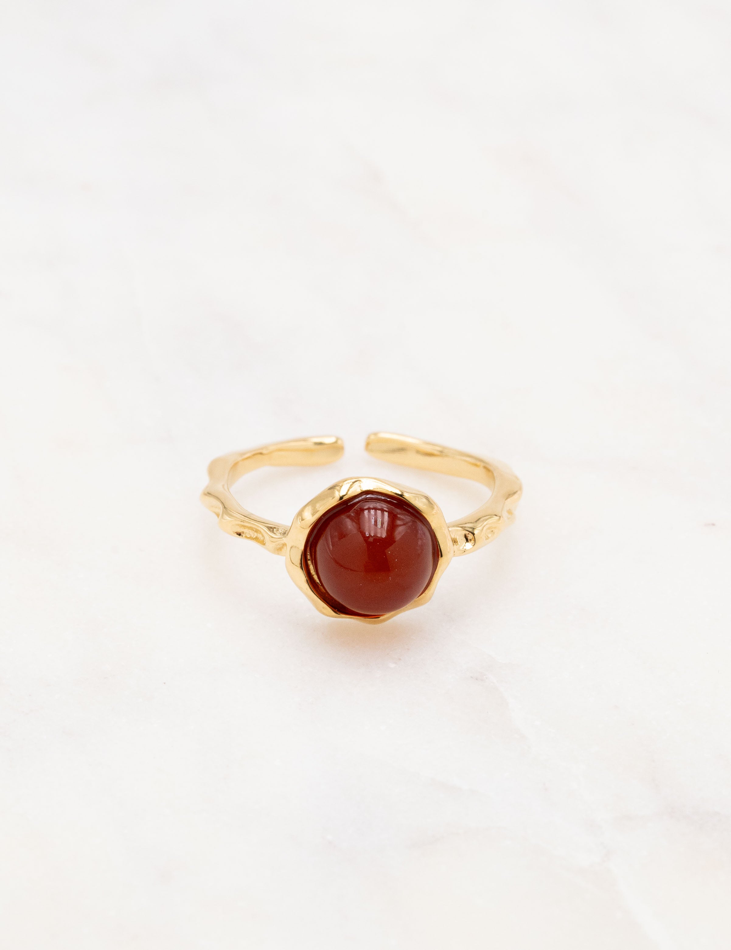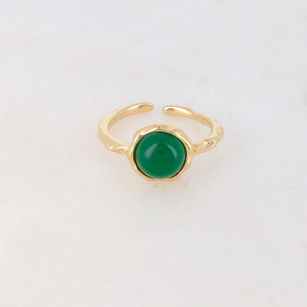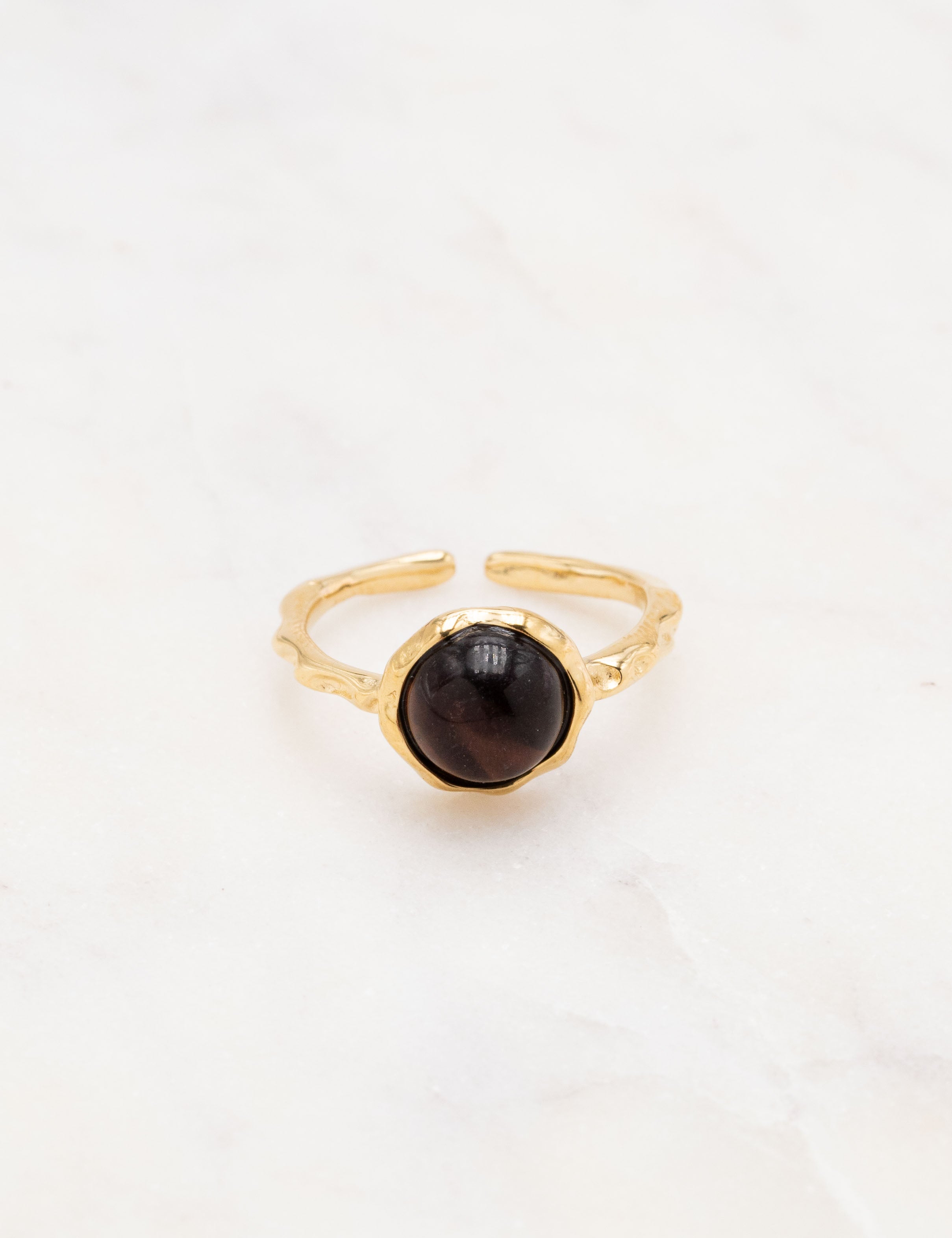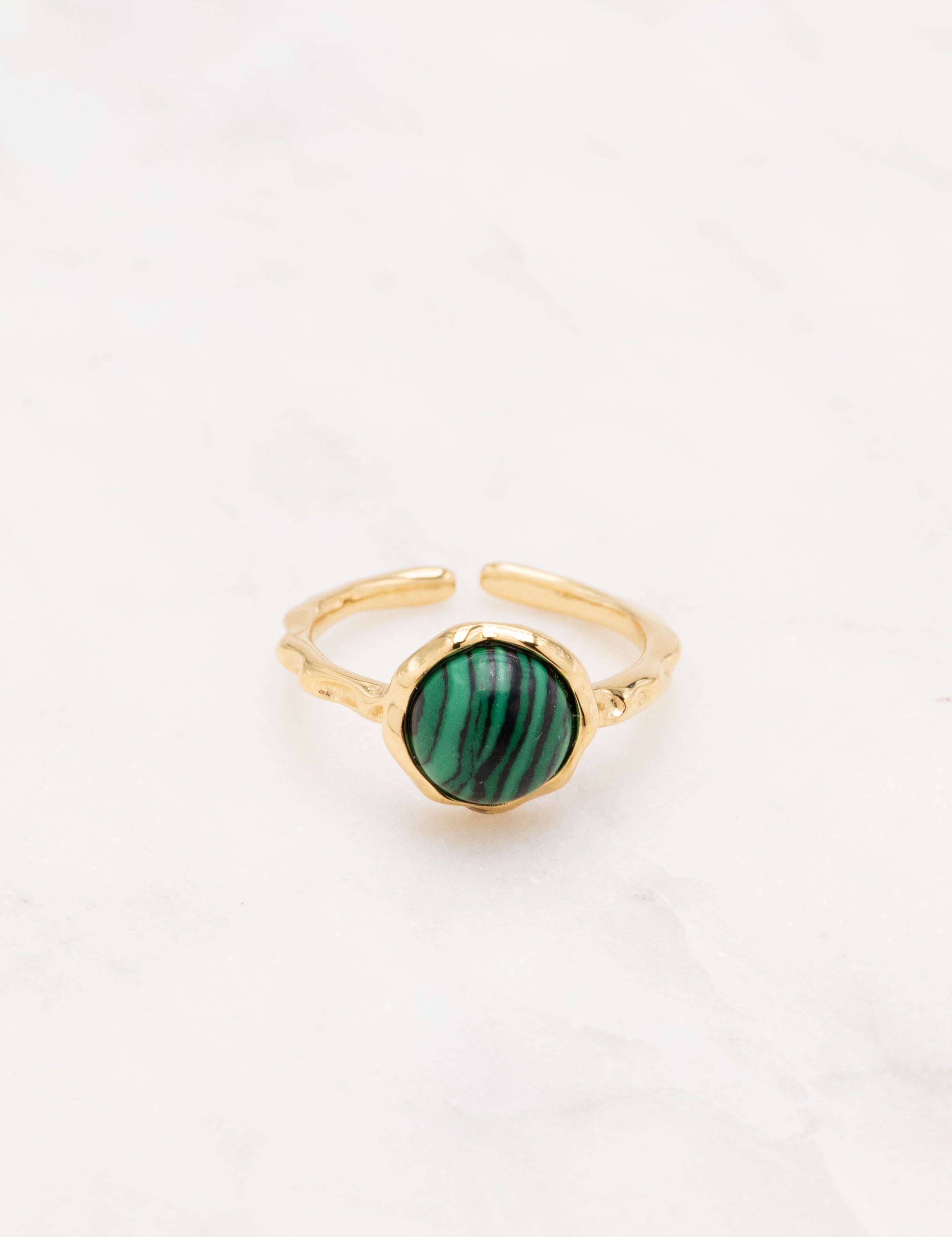Bague fine ajustable martelée composée d'une pièce ornée d'une pierre naturelle.