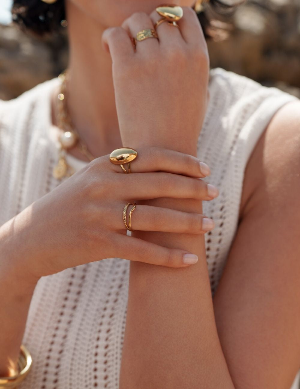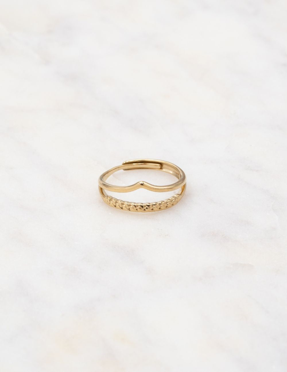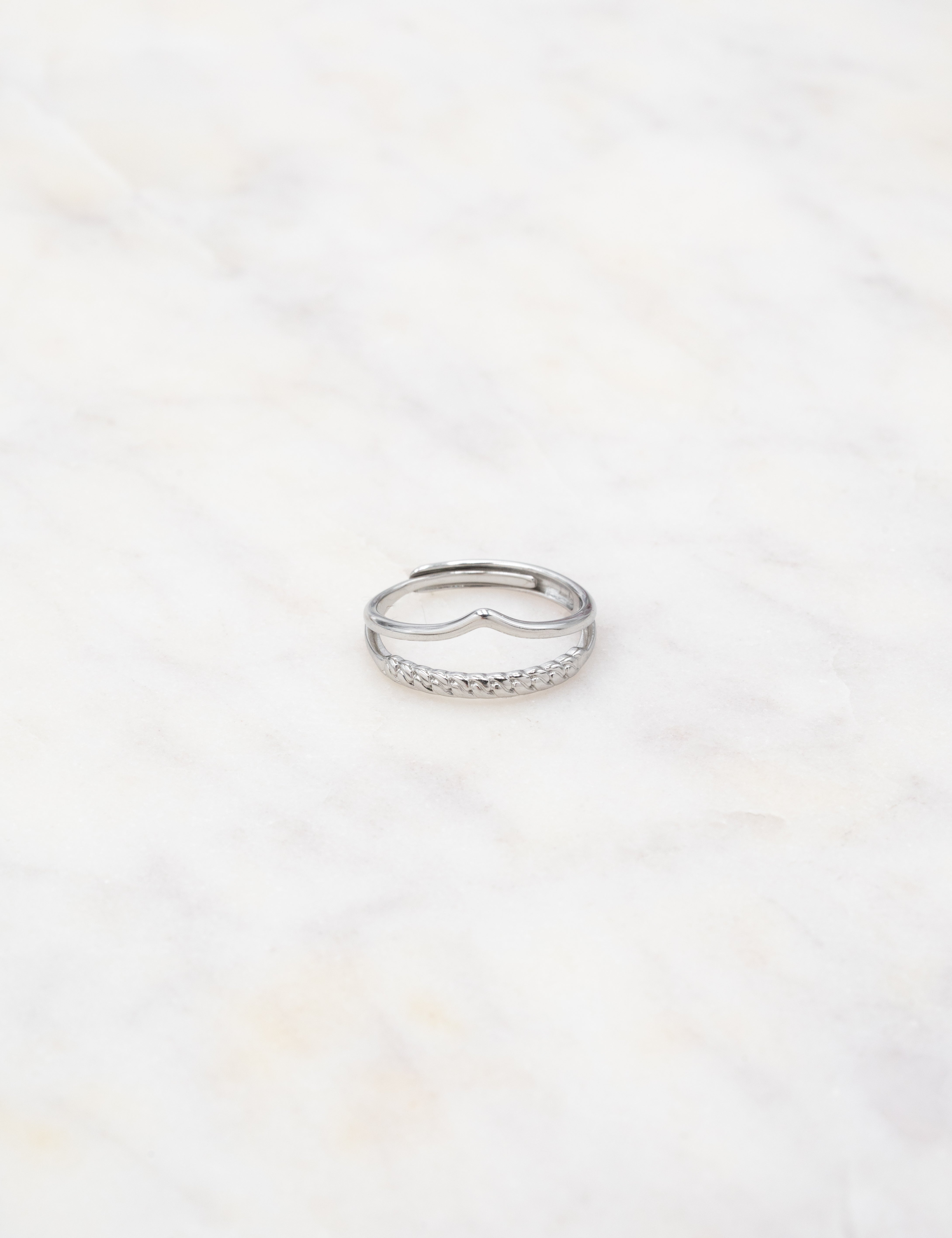 Bague ajustable graphique deux rangs avec un jeu de textures (lisse et cannelé)