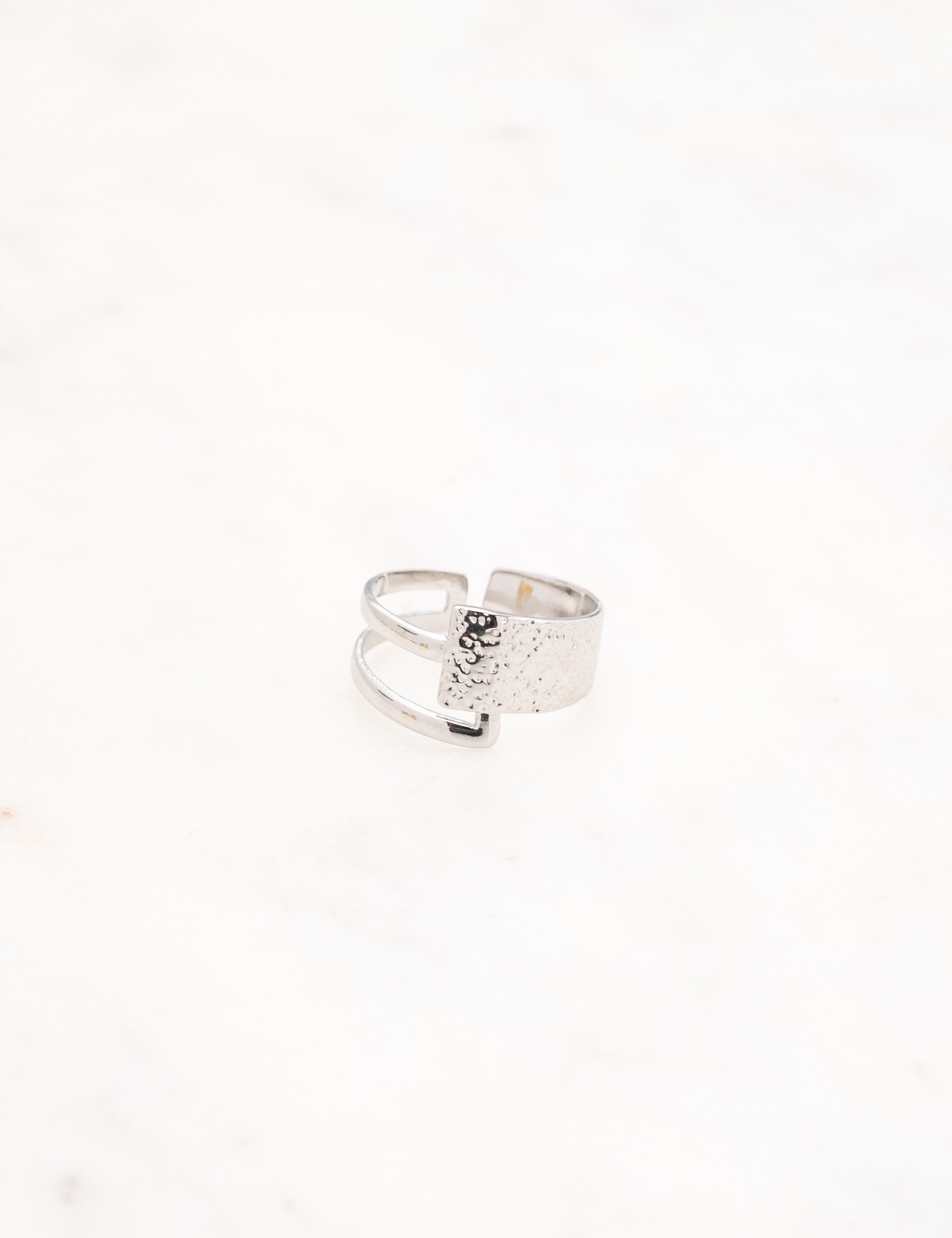 Bague ajustable avec un jeu graphique (ajouré et martelé)