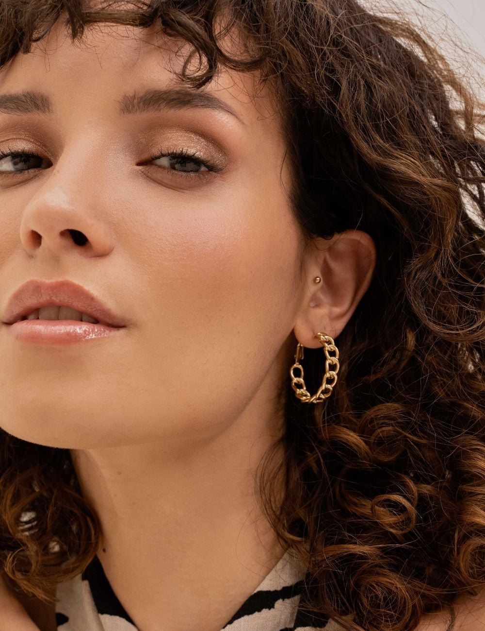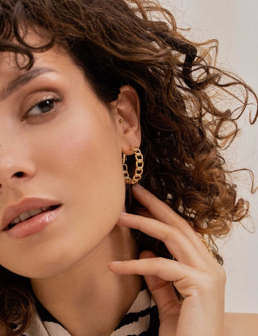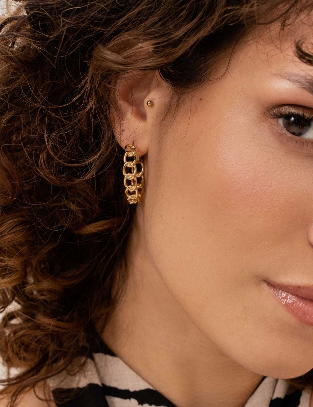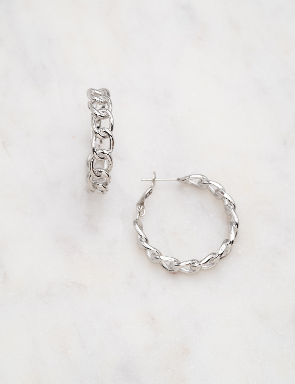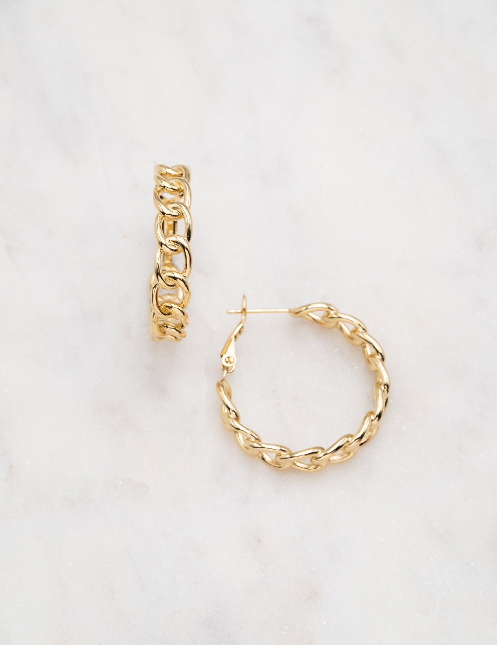 Boucles d'oreilles type créoles effet maillons. Fermoir cliquet.