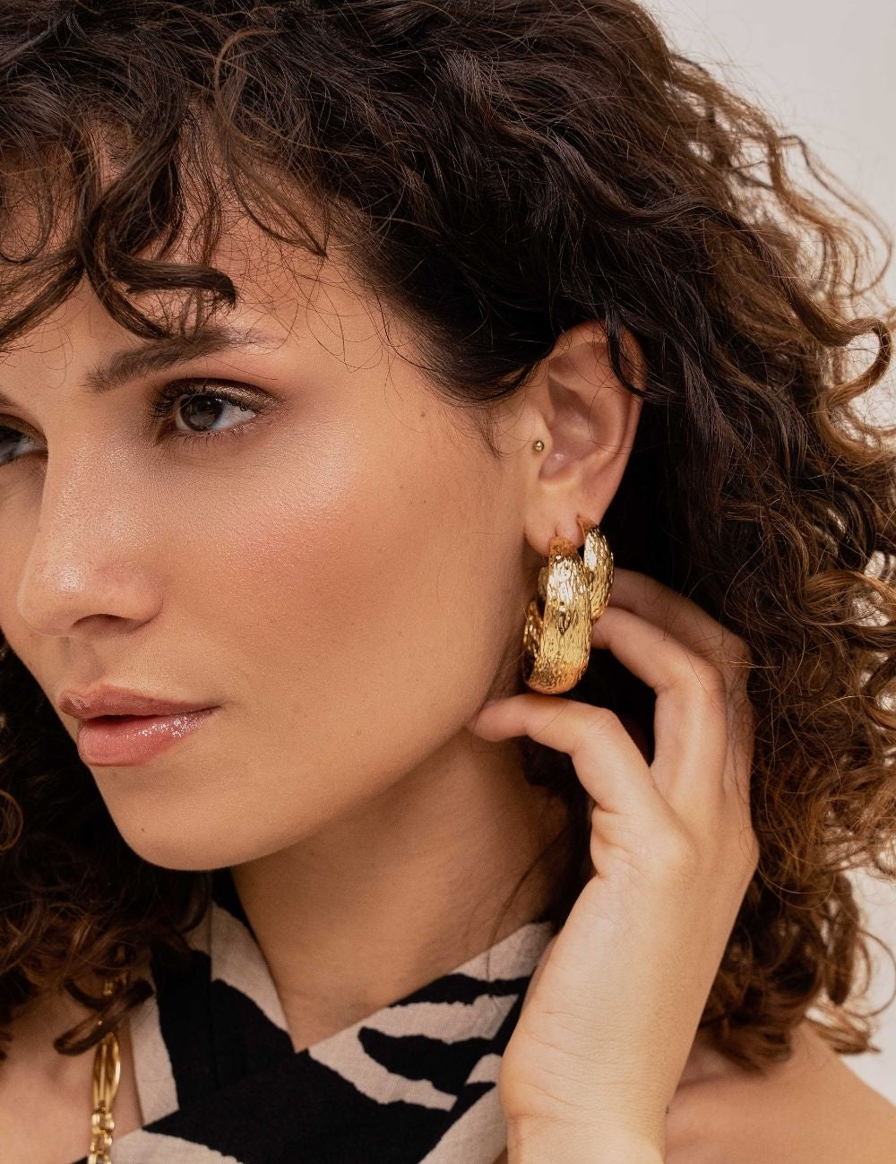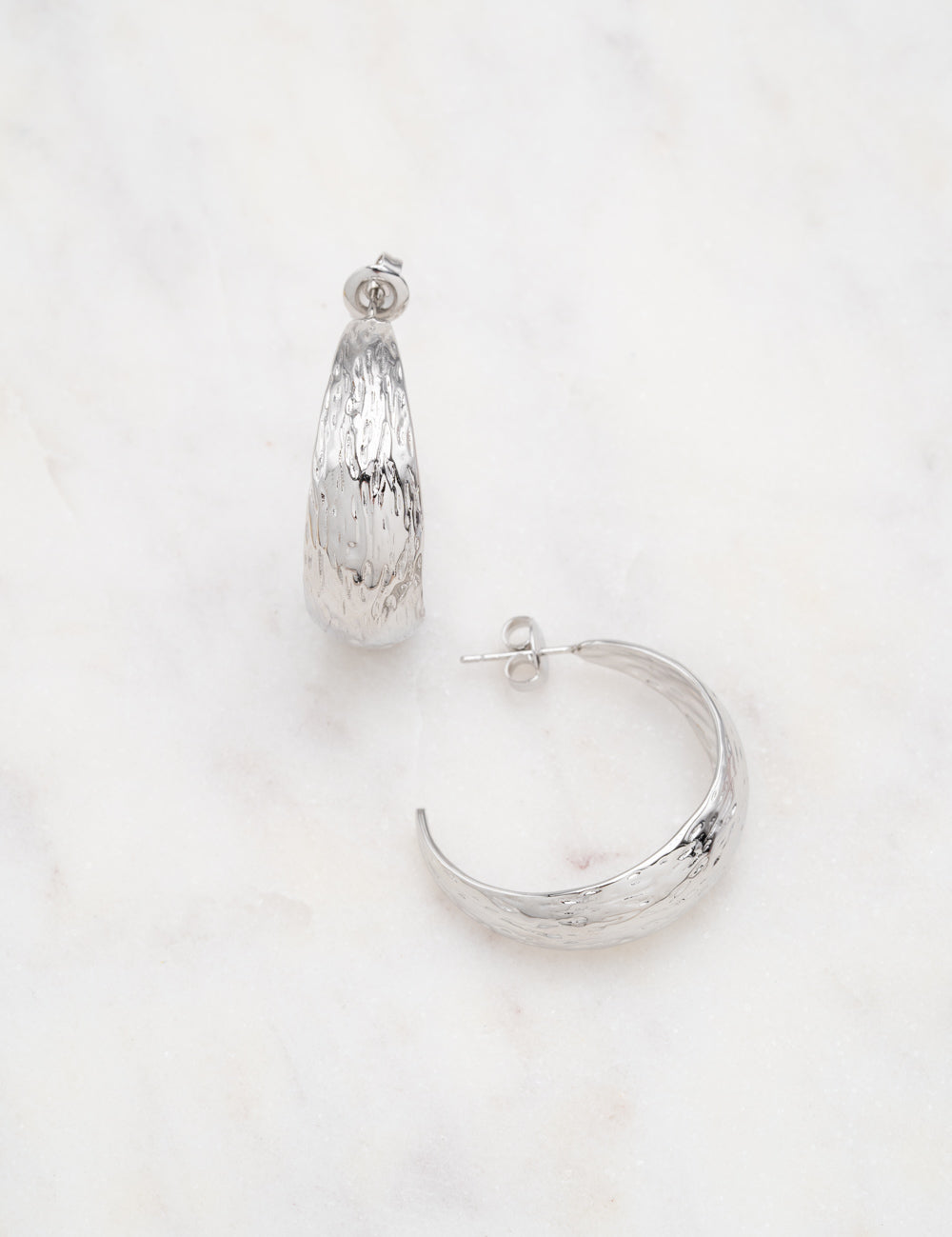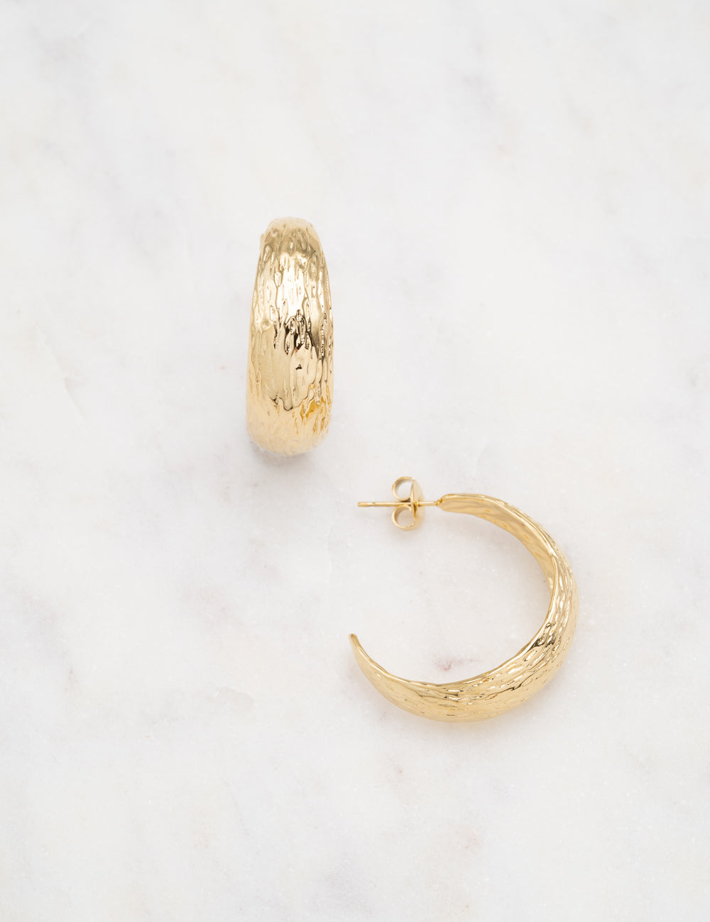 Boucles d'oreilles type créoles à puce martelées. Fermoir papillon.