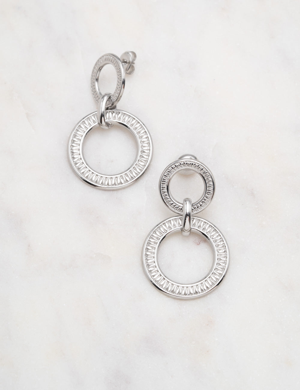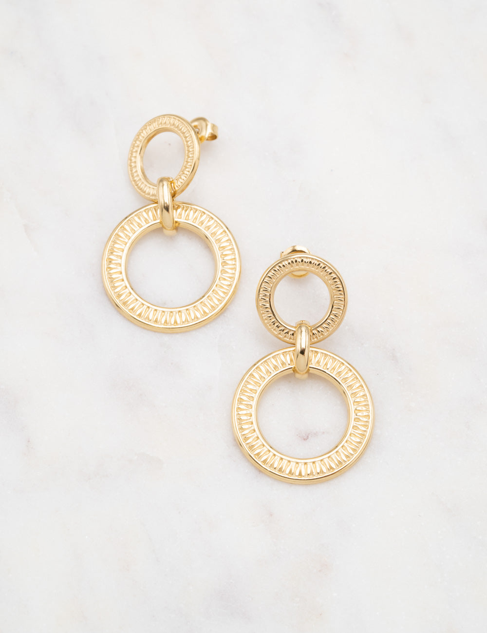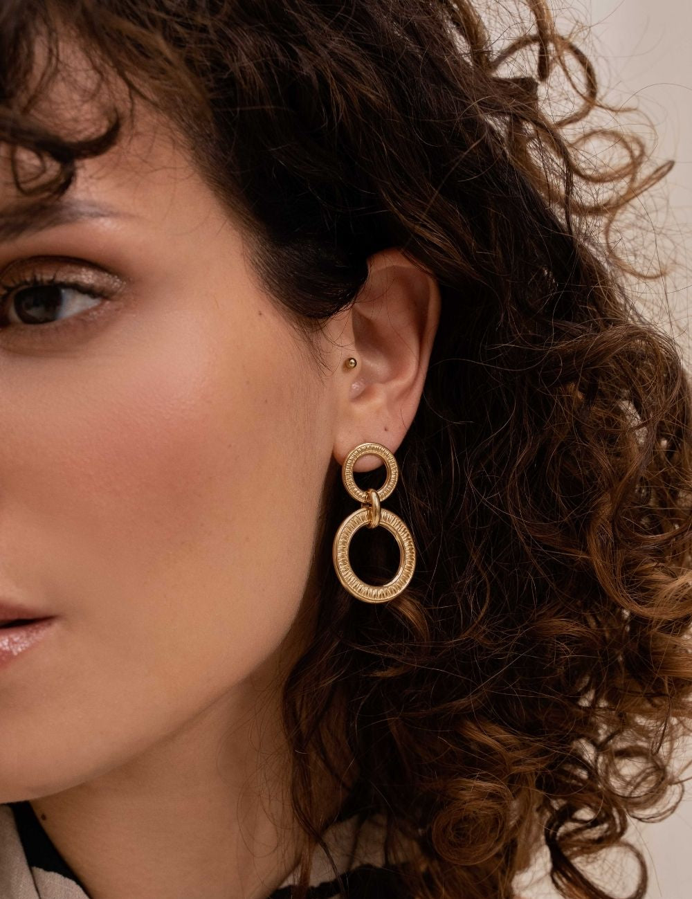 Boucles d'oreilles à puce composées de double anneaux texturées. Fermoir papillon.