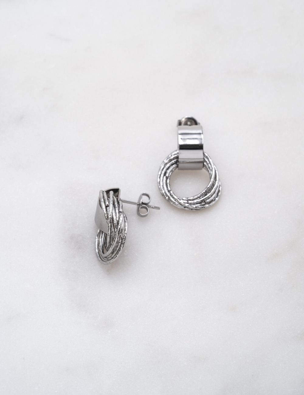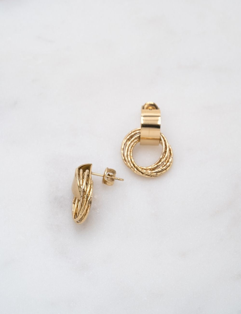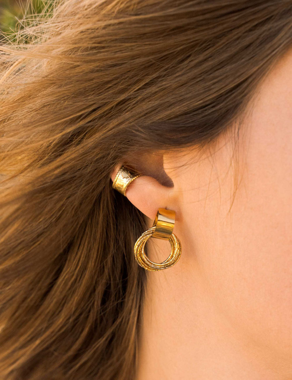 Boucles d'oreilles à puce composées de multi anneaux texturés.