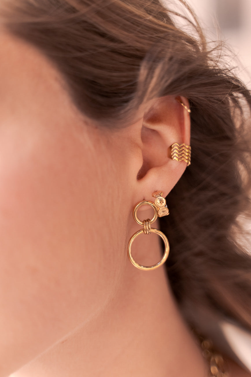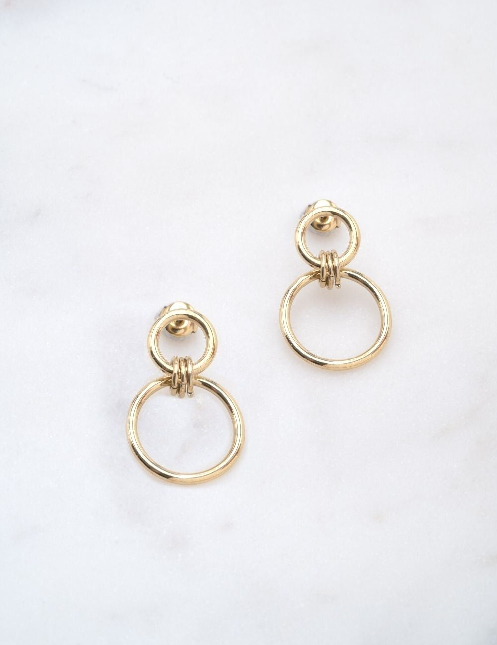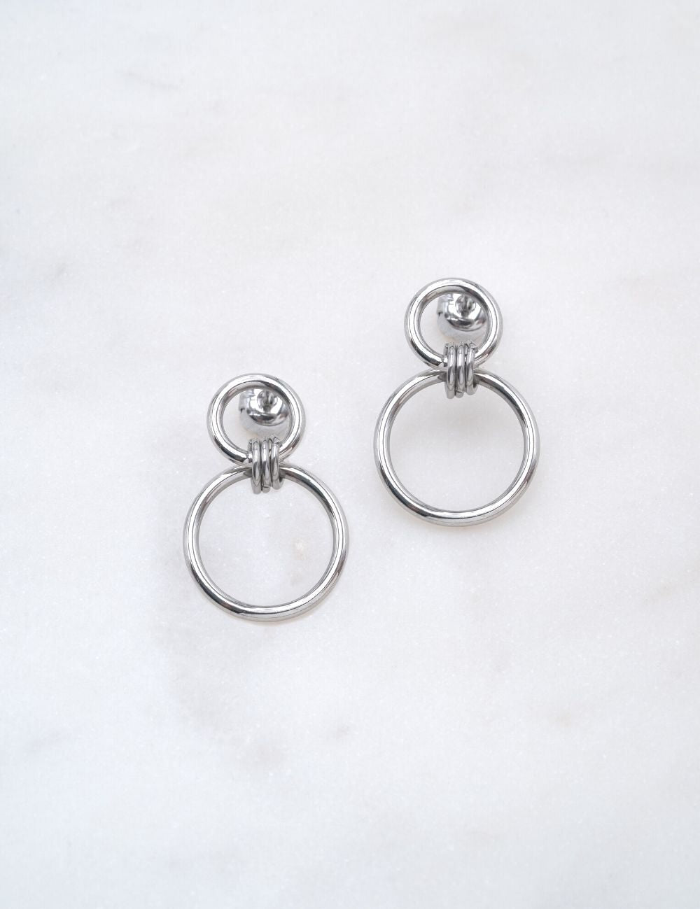 Boucles d'oreilles à puce composées d'un anneau pendant. Fermoir papillon.