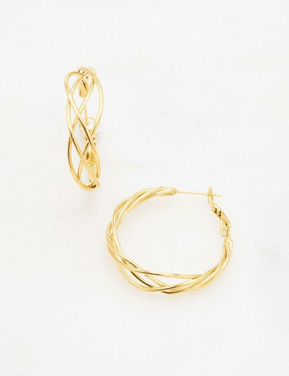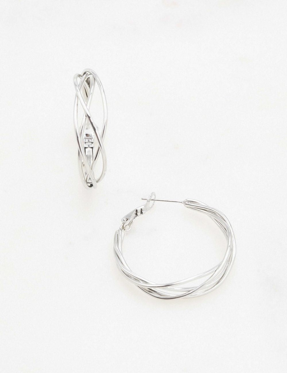 Boucles d'oreilles type créoles effet entrelacé. Fermoir cliquet.