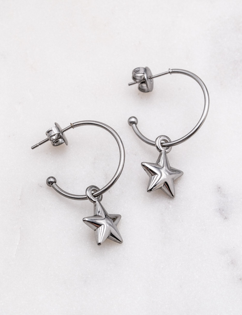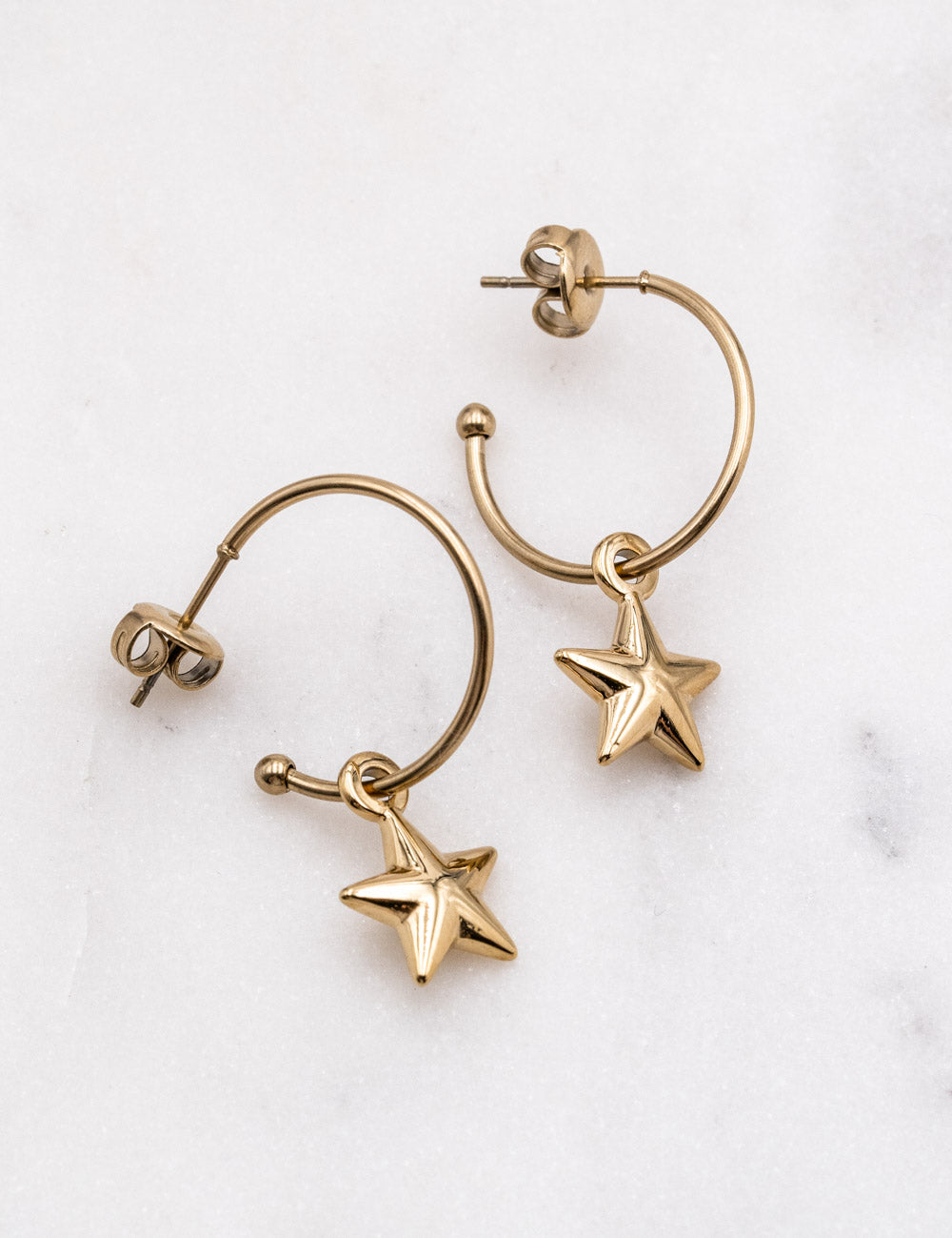 Boucles d'oreilles créoles à puce étoile pendante.