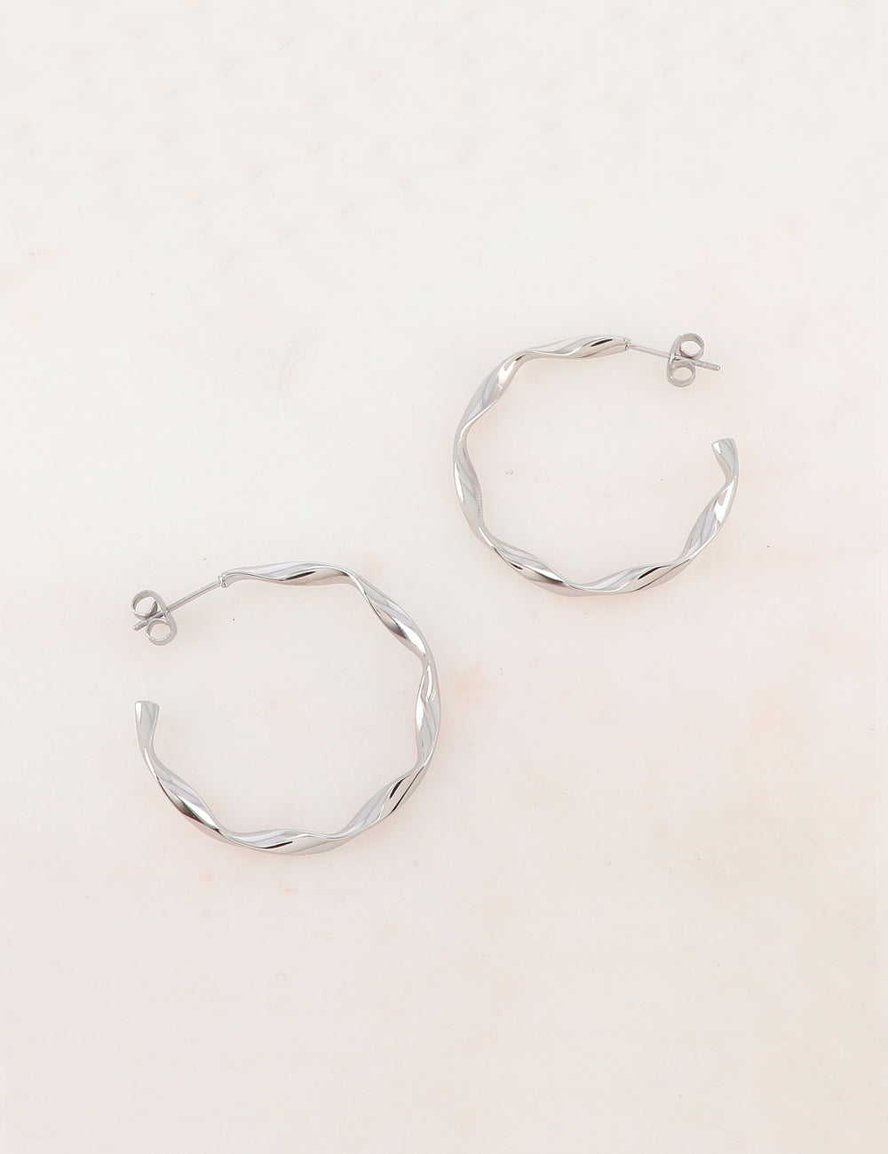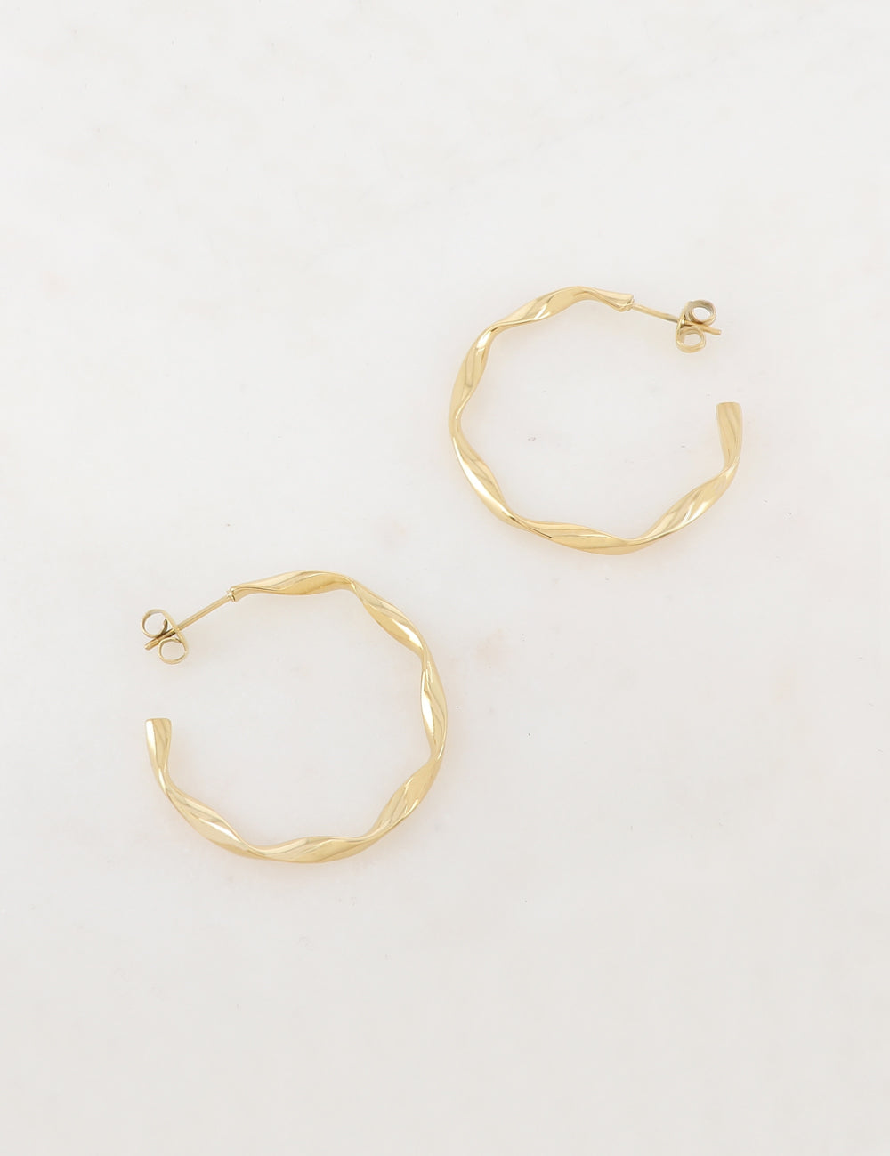 Boucles d'oreilles type créoles à puce ondulées. Fermoir papillon