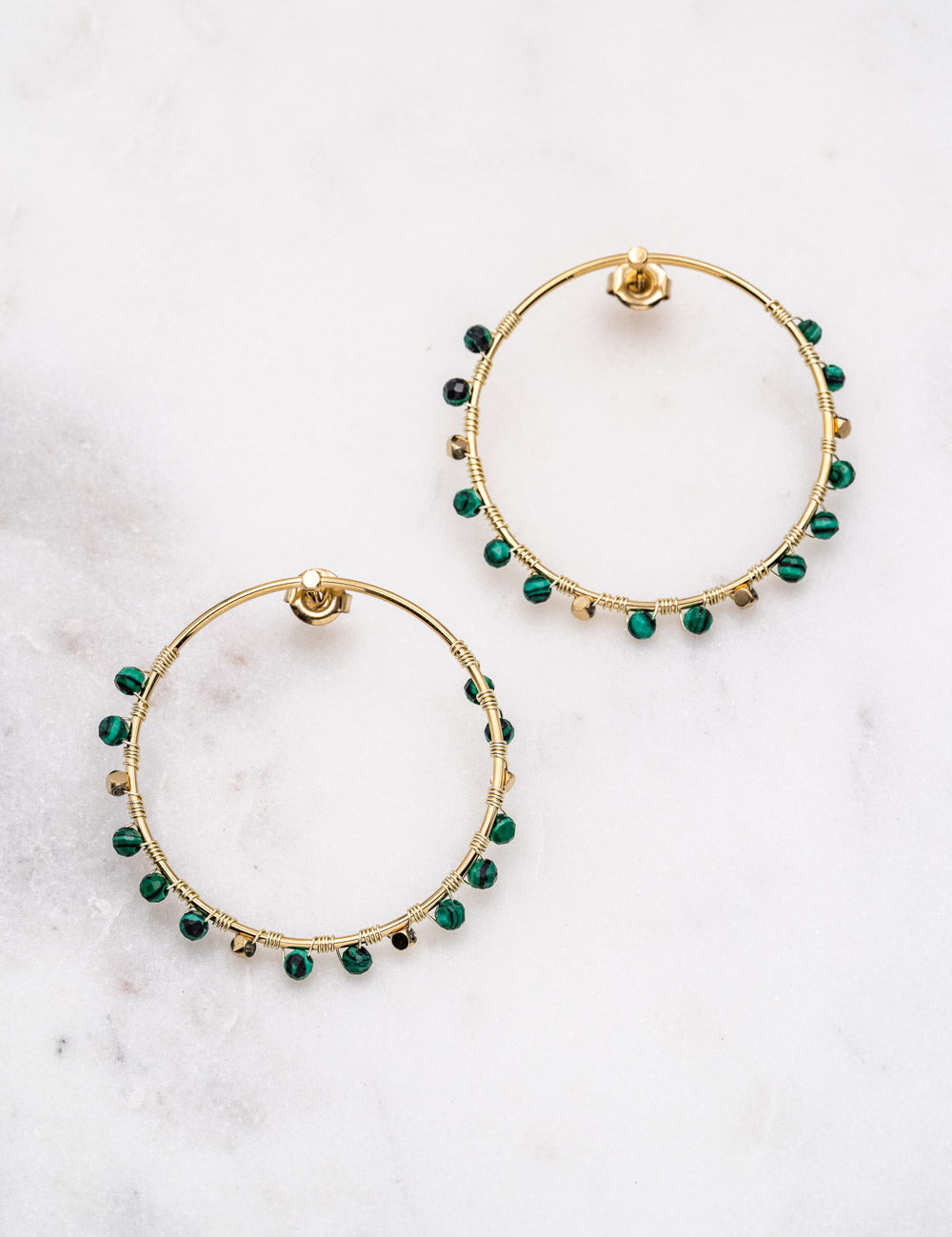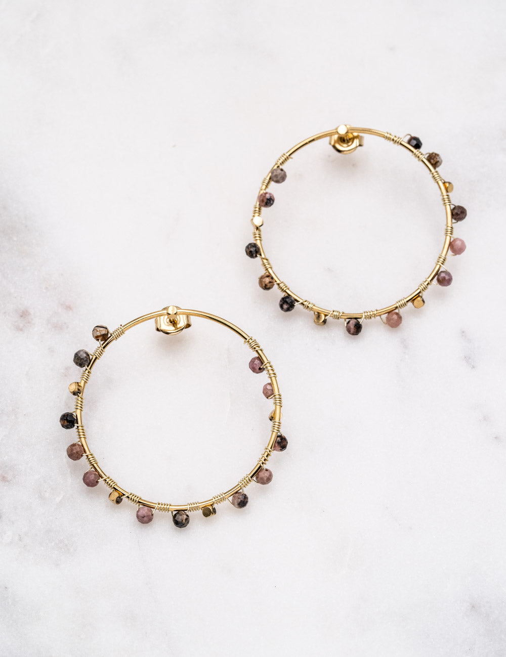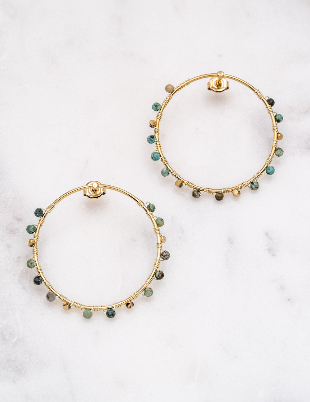 Boucles d'oreilles à puce composées de petites pierres naturelles. Fermoir papillon.