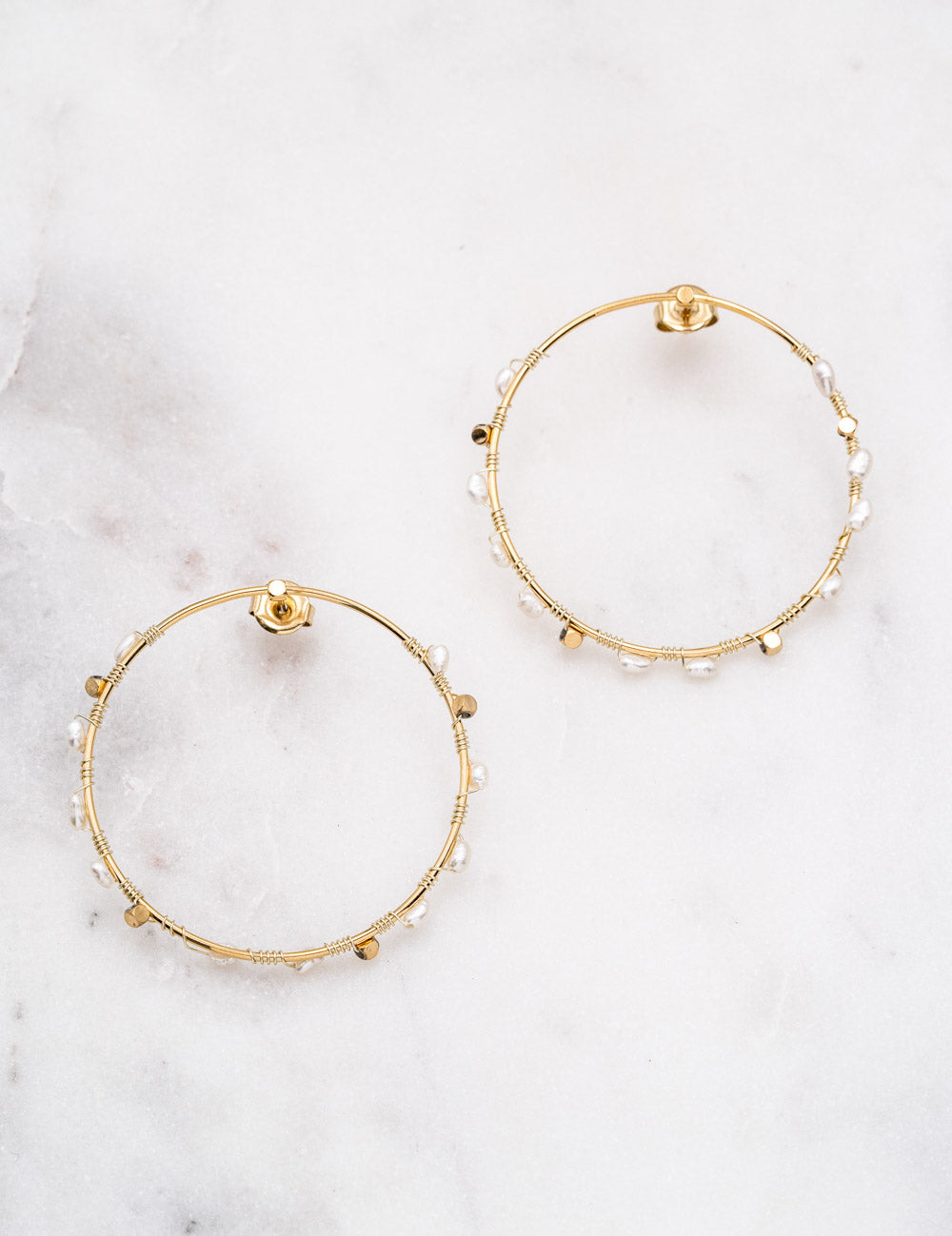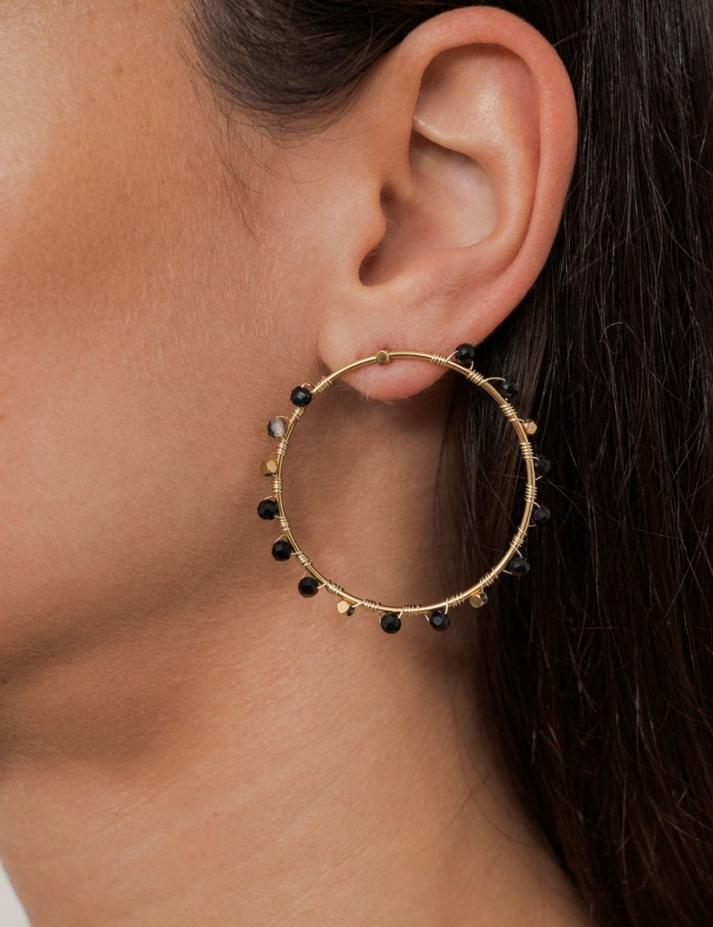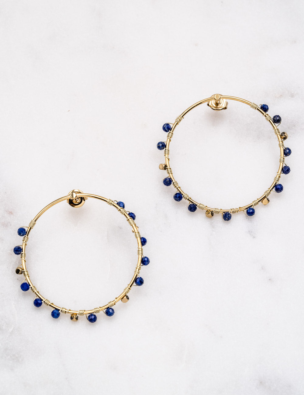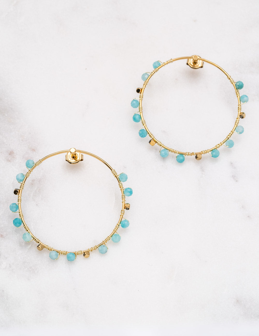Boucles d'oreilles à puce composées de petites pierres naturelles. Fermoir papillon.
