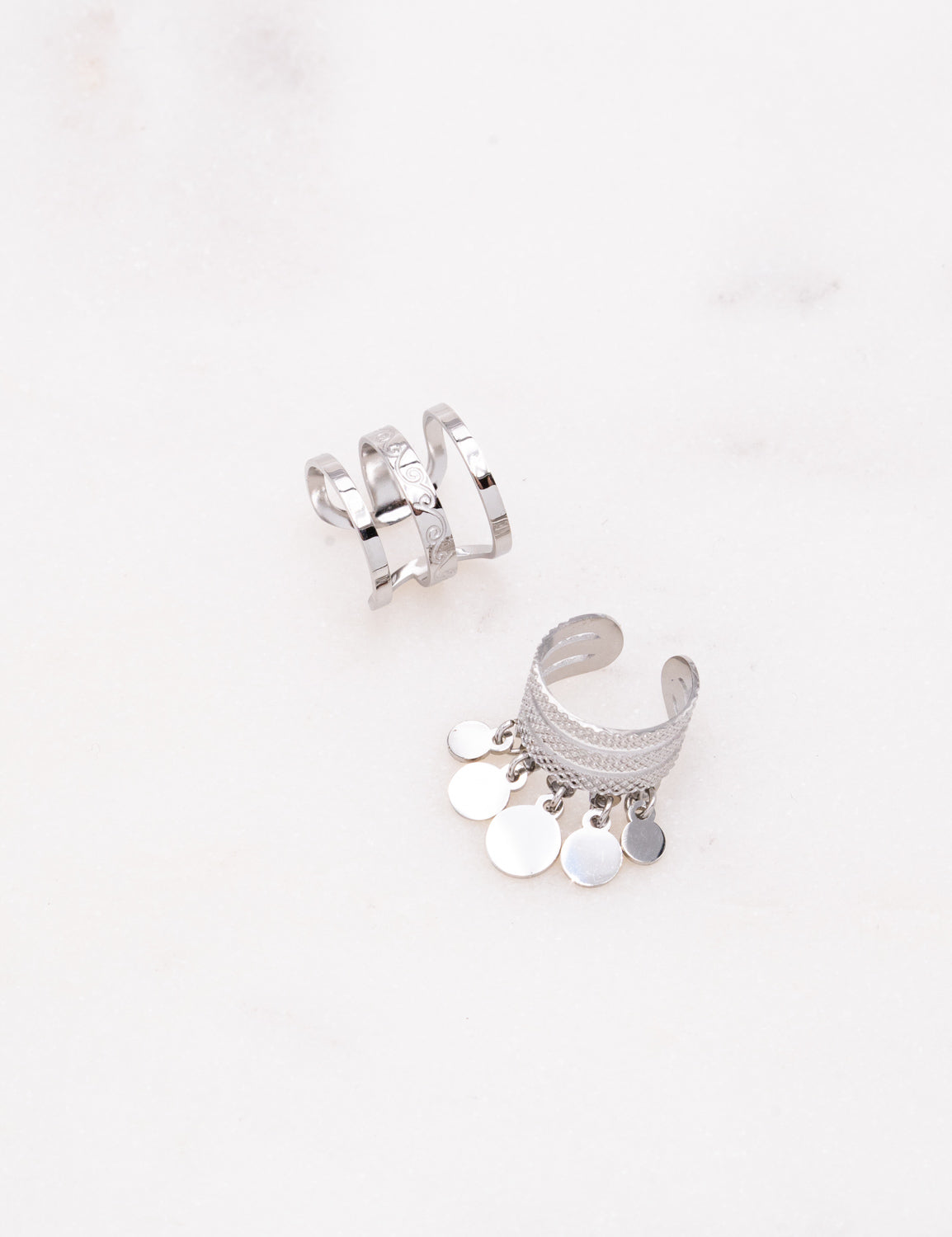 Lot de 2 Ear Cuffs atypiques (texturés et à pampilles rondes). Malléables.