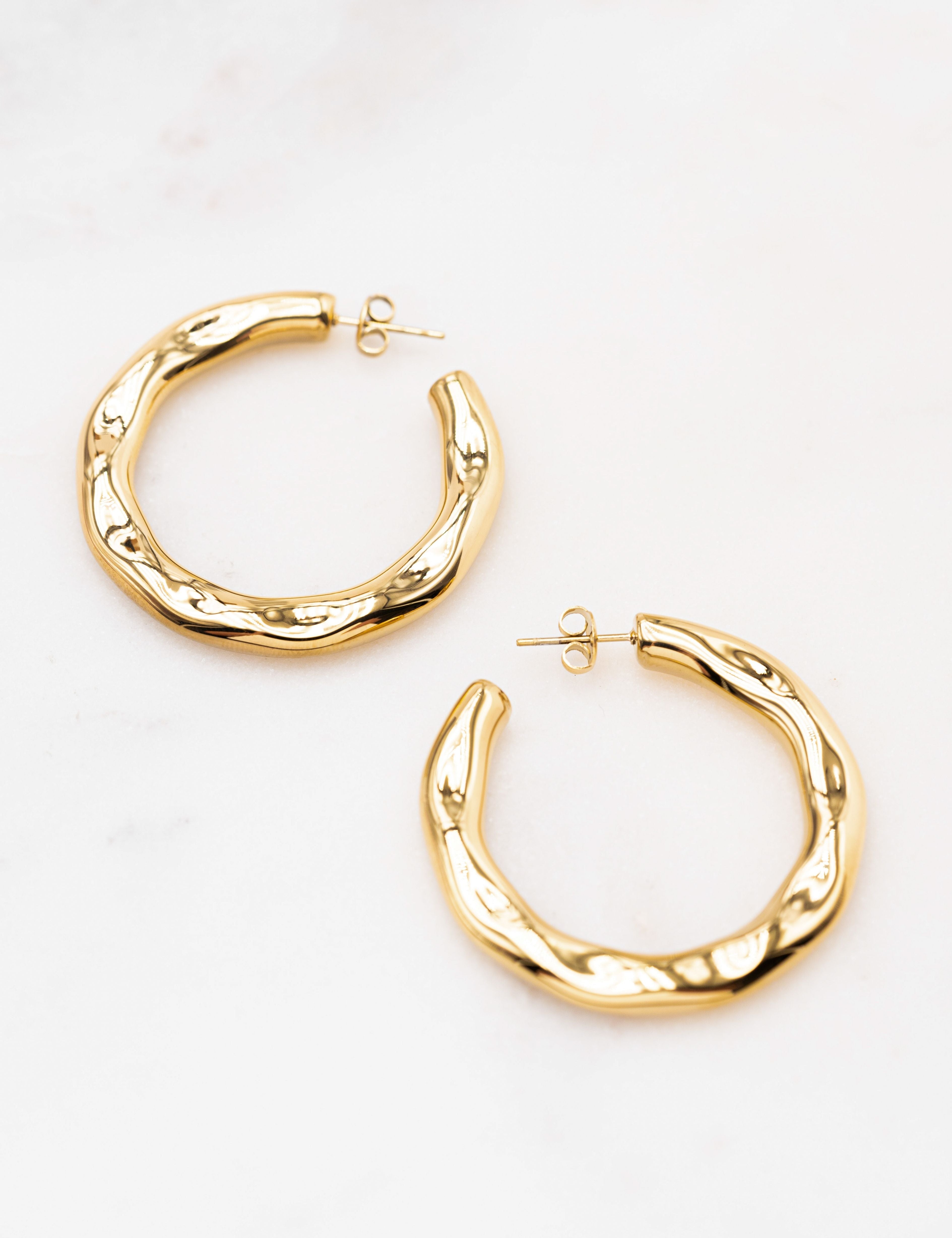 Boucles d'oreilles type créoles à puce effet martelé. Fermoir papillon.