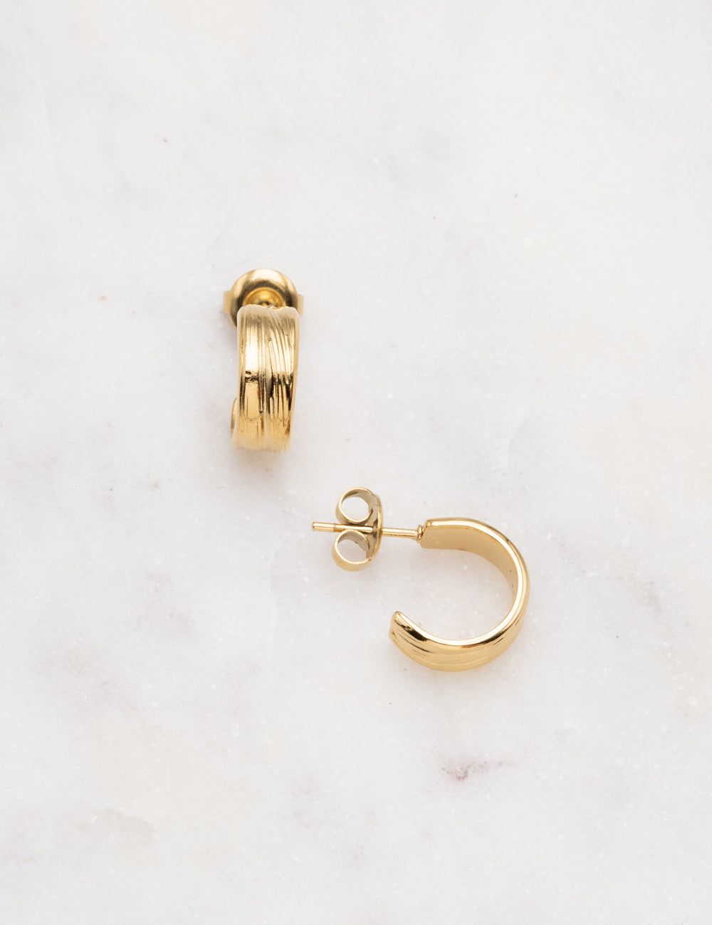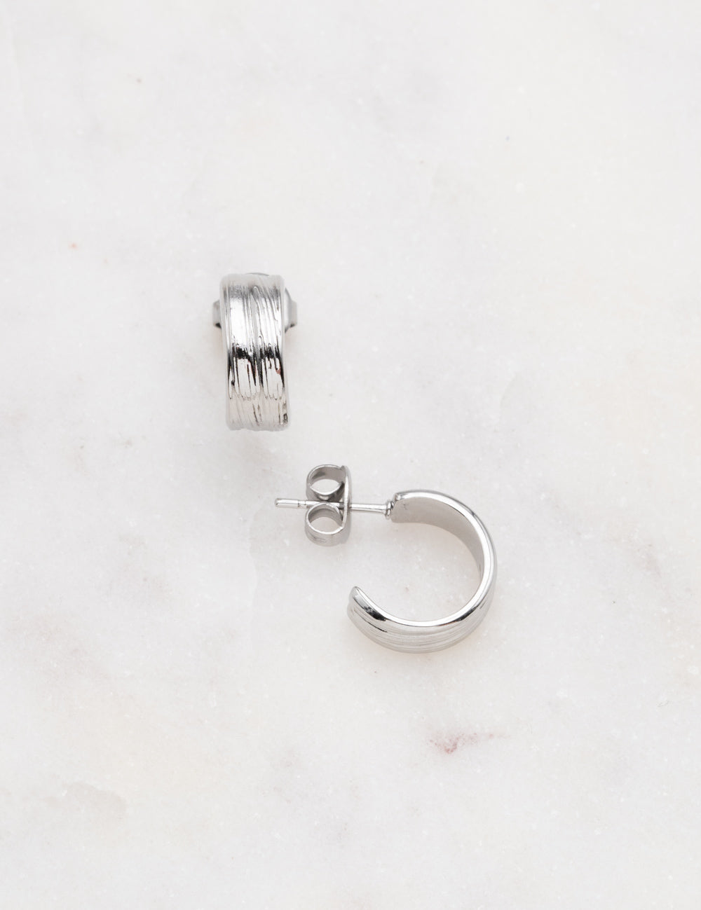Boucles d'oreilles type créoles à puce texturées. Fermoir papillon.