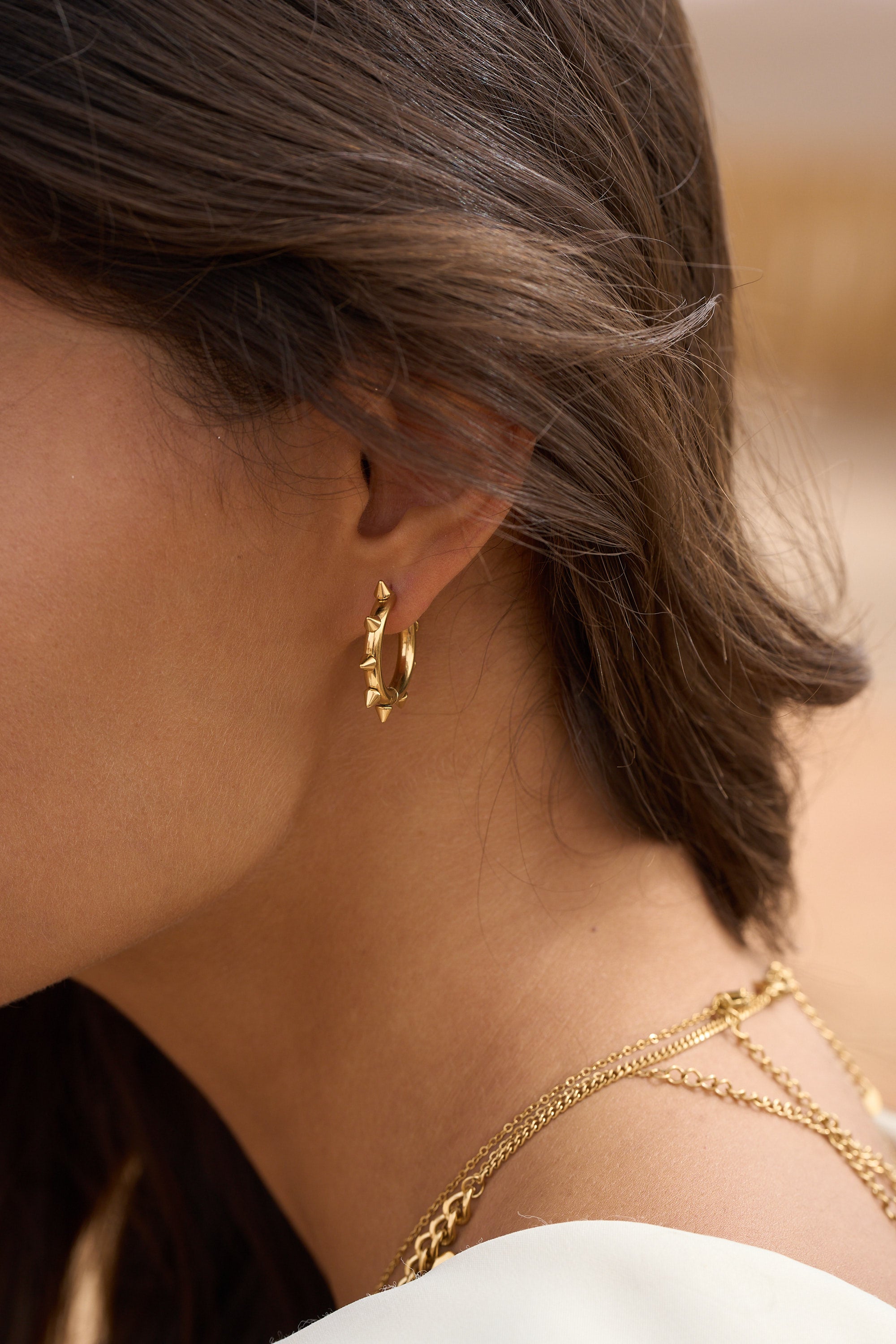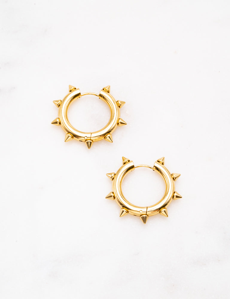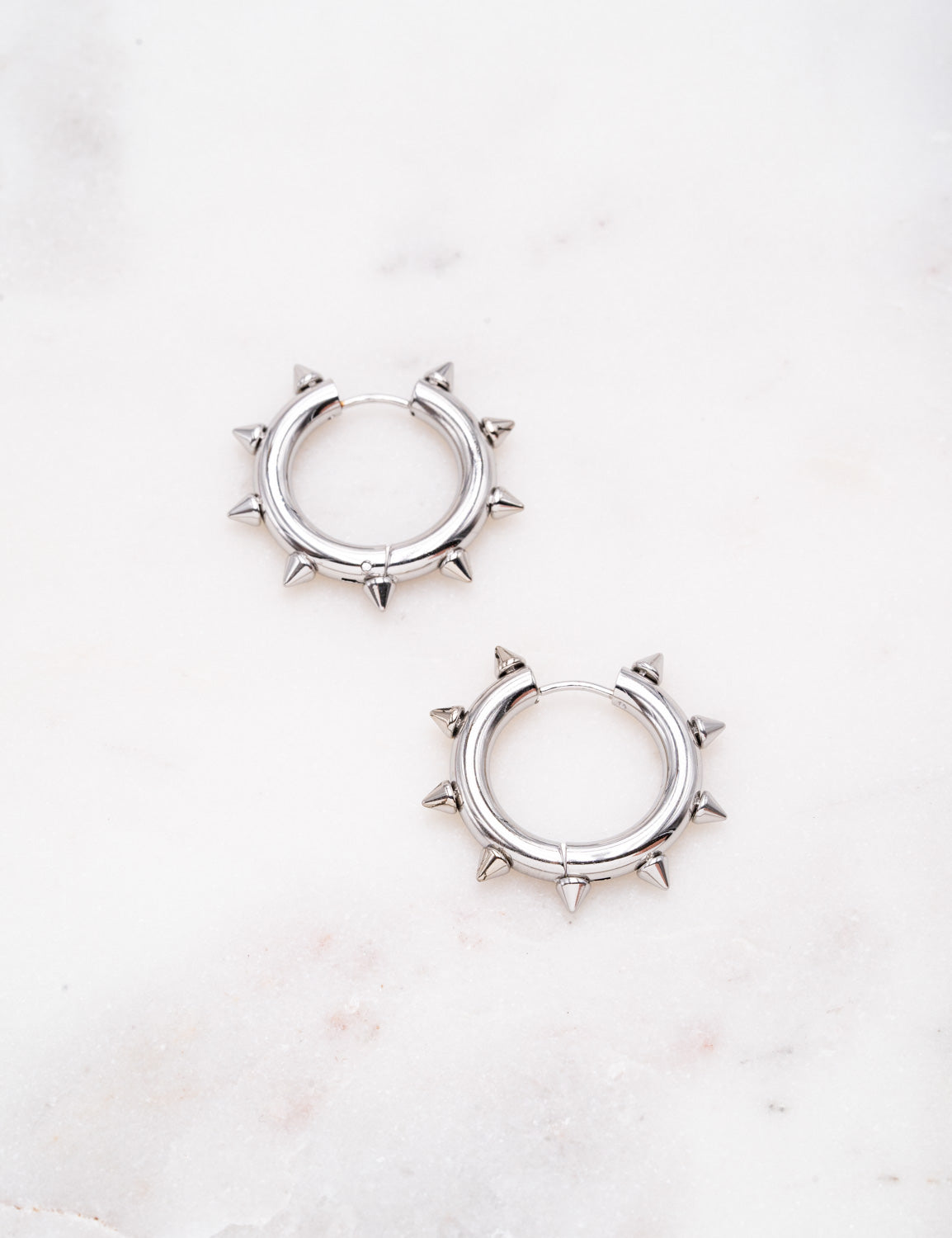 Boucles d'oreilles type créoles à fermoir charnière embellies de 9 petits picots.