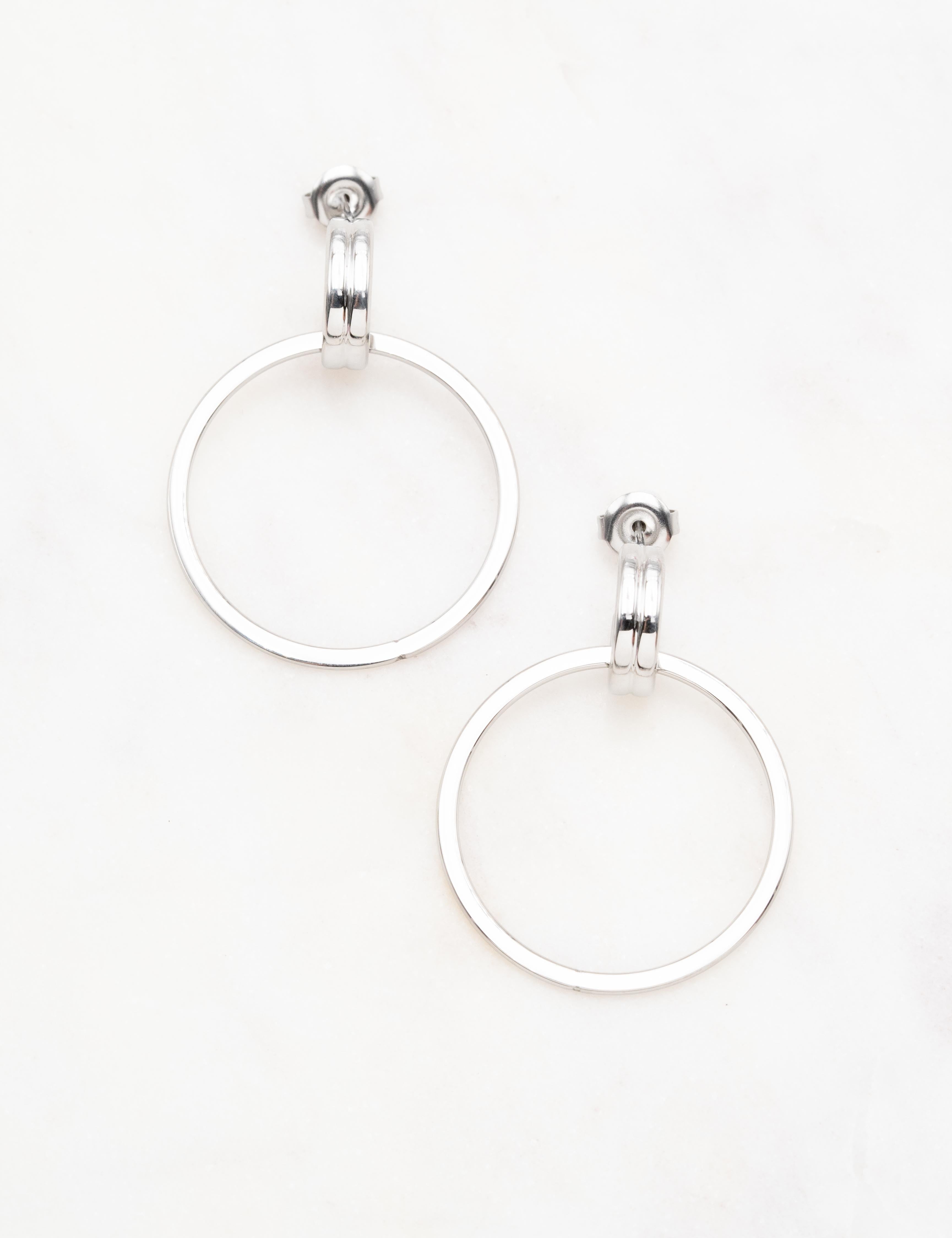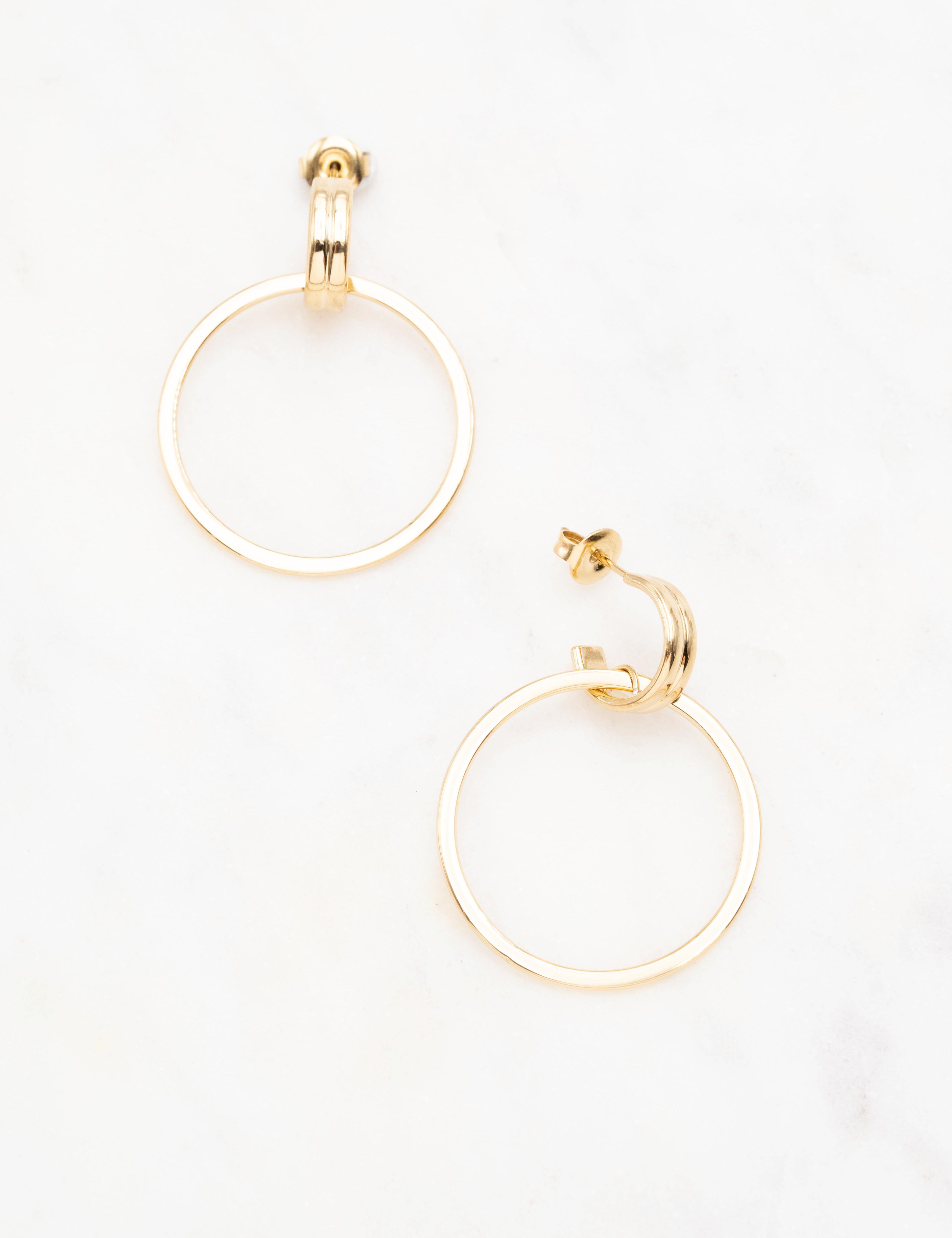 Boucles d'oreilles graphiques type créoles à puce composées d'un anneau.