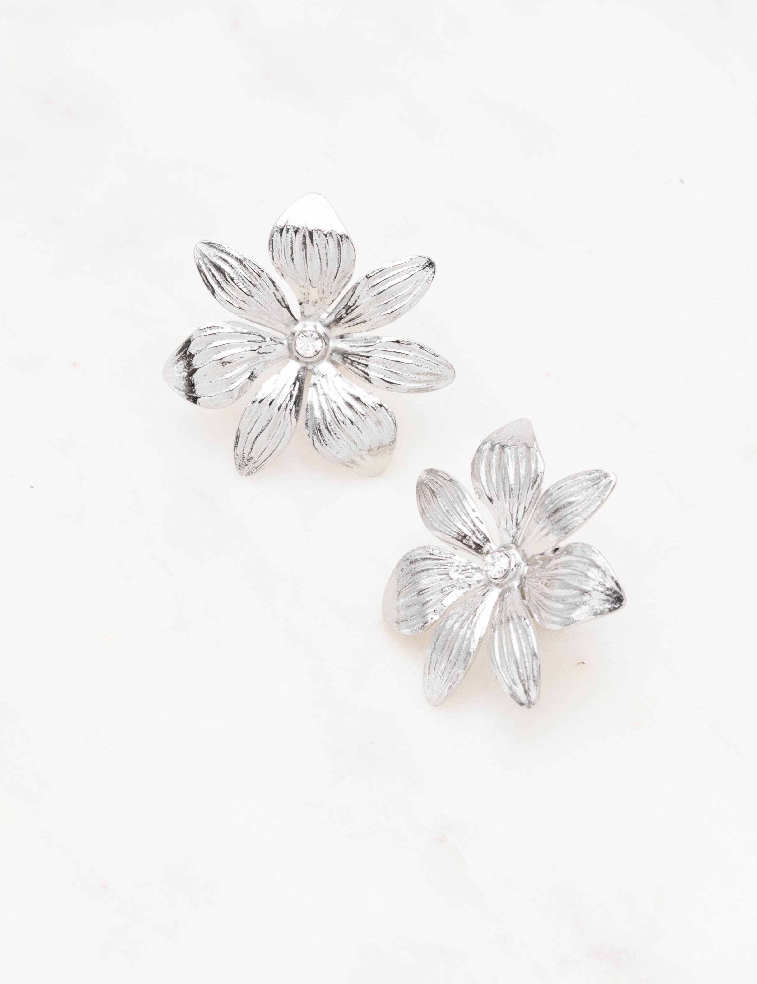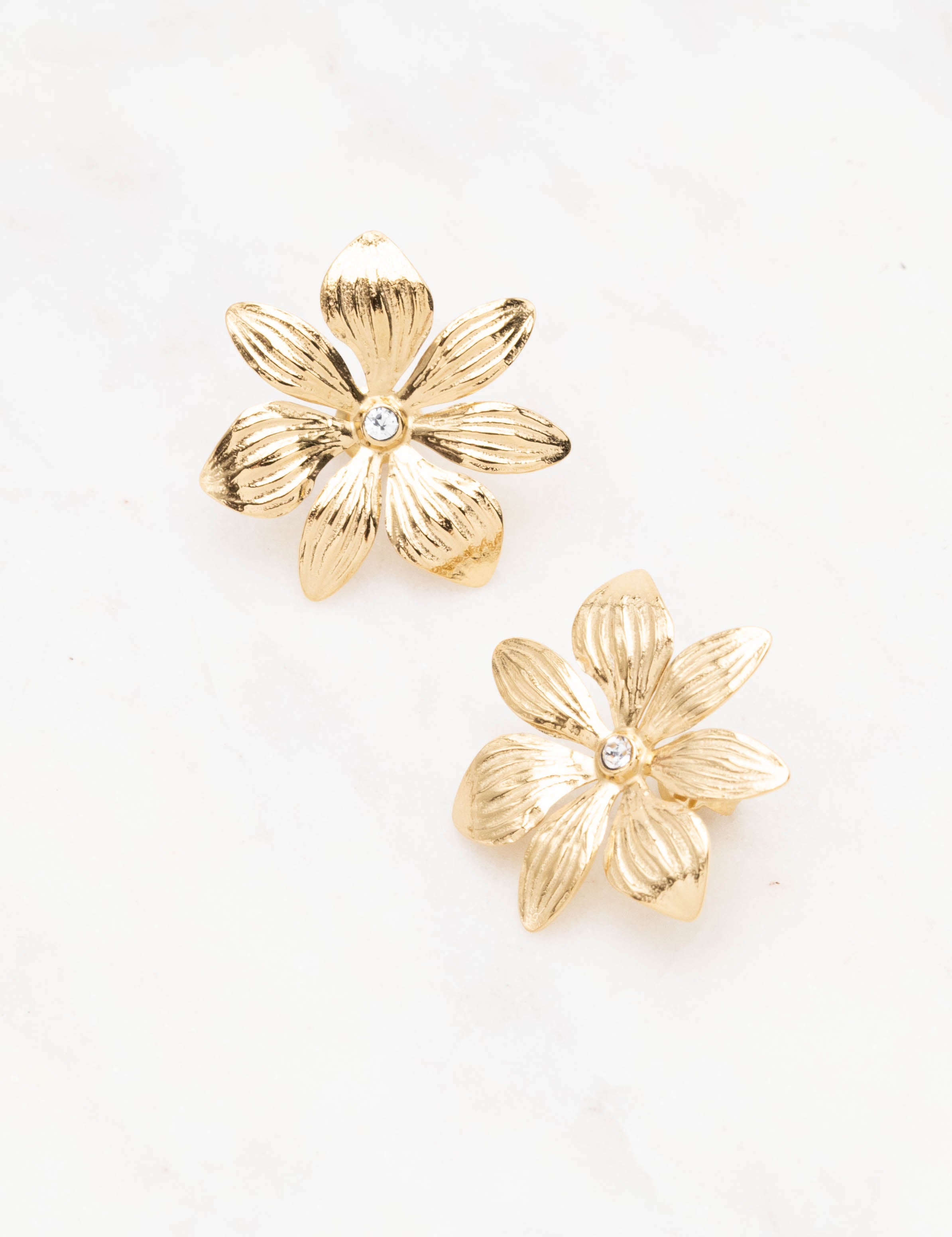 Boucles d'oreilles à puce composées d'une pièce florale ornée d'un strass zirconium.