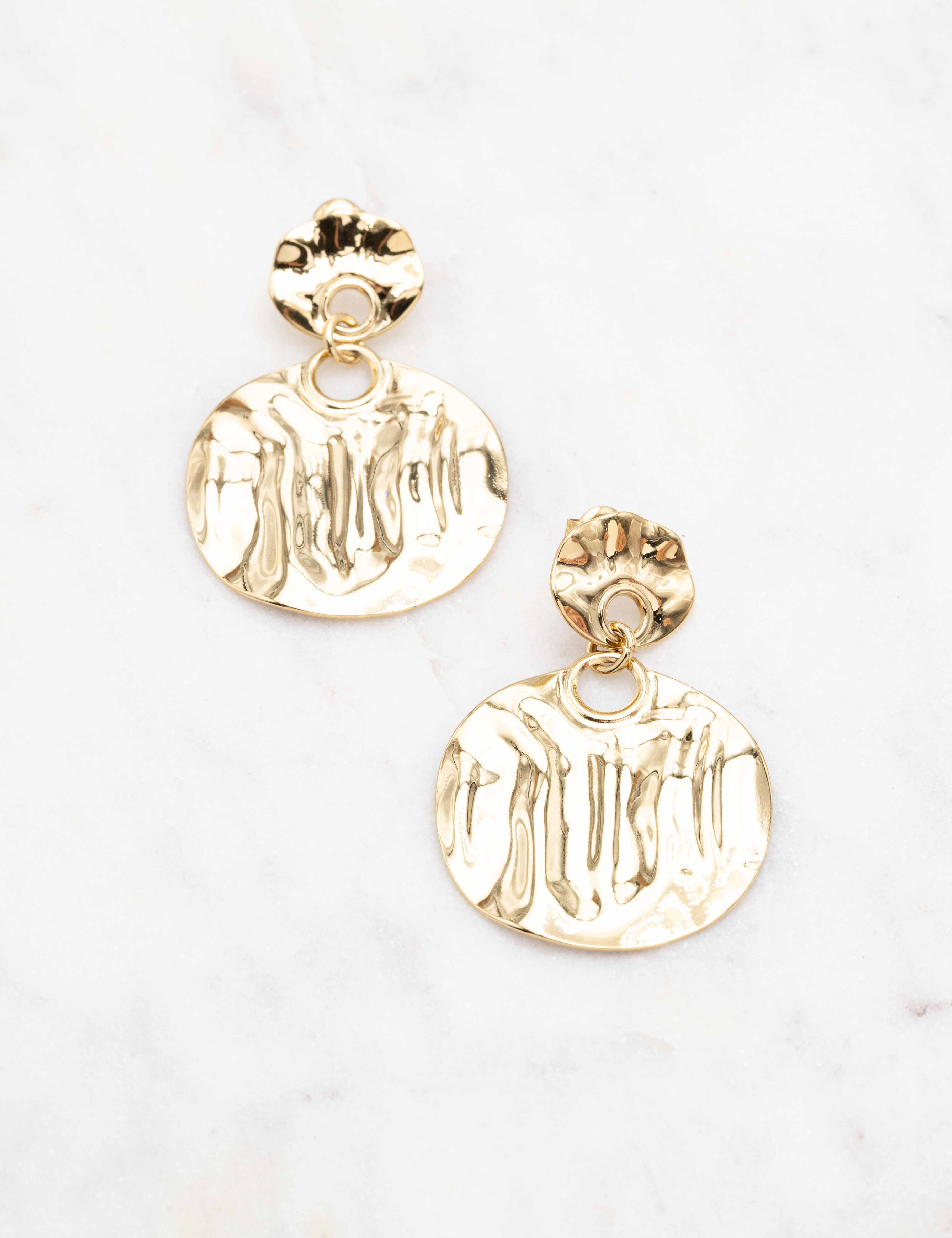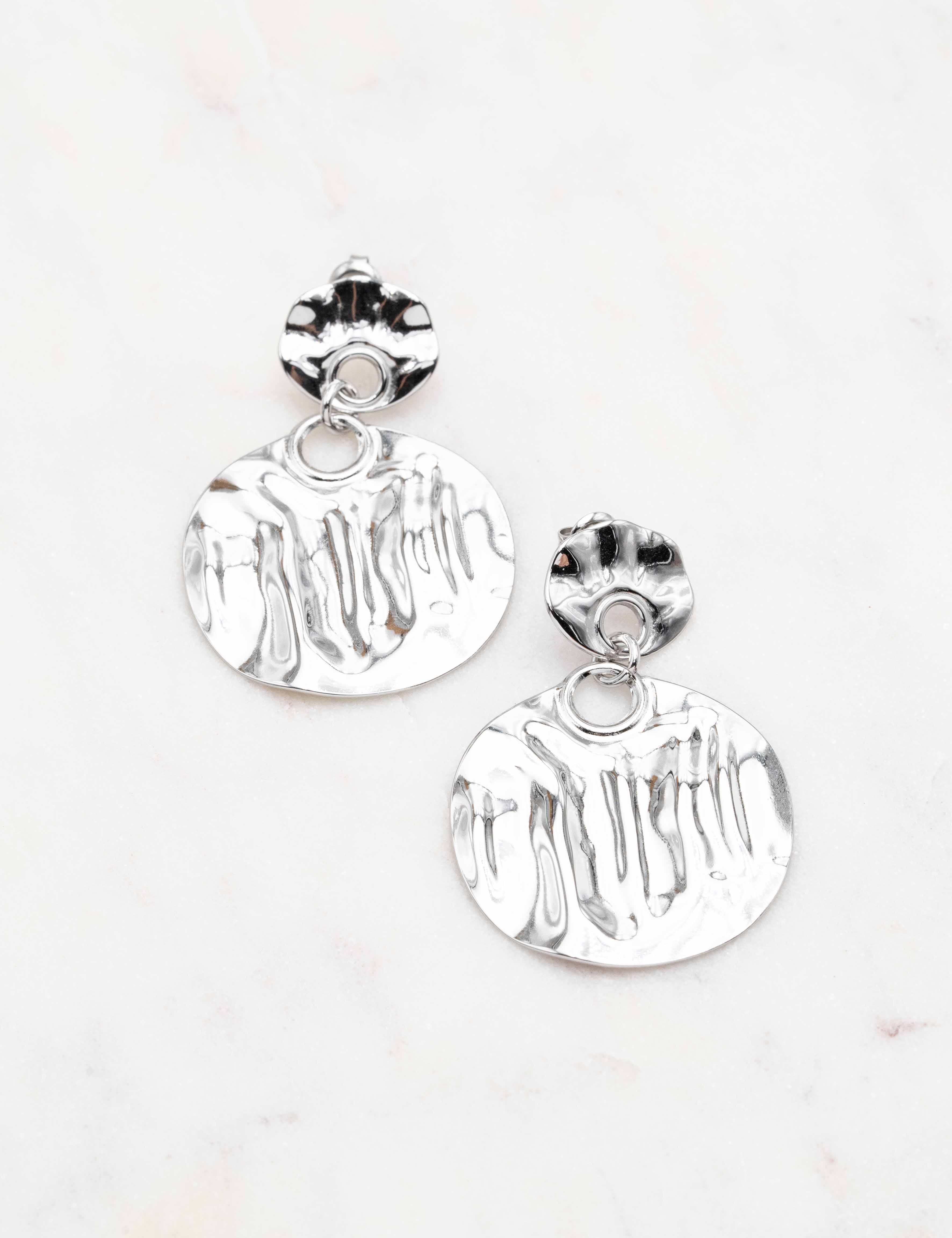 Boucles d'oreilles graphiques à puce composées de deux pièces martelées effet ondulé.