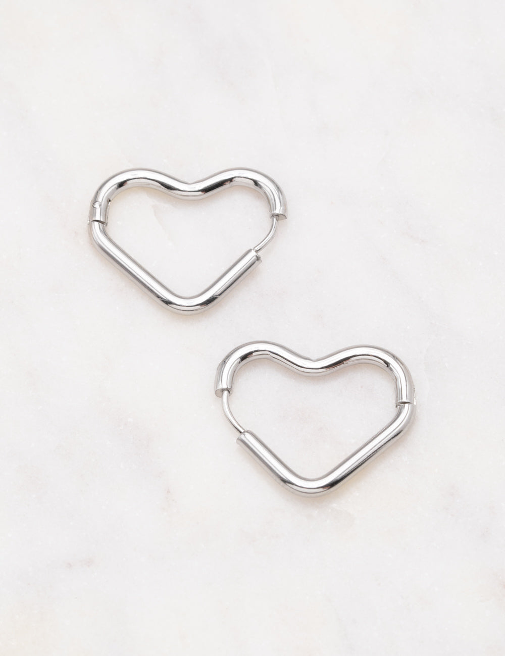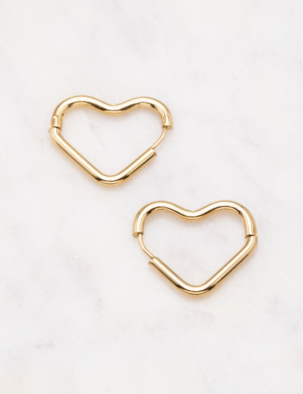 Boucles d'oreilles type créoles en forme de coeur. Fermoir charnière.