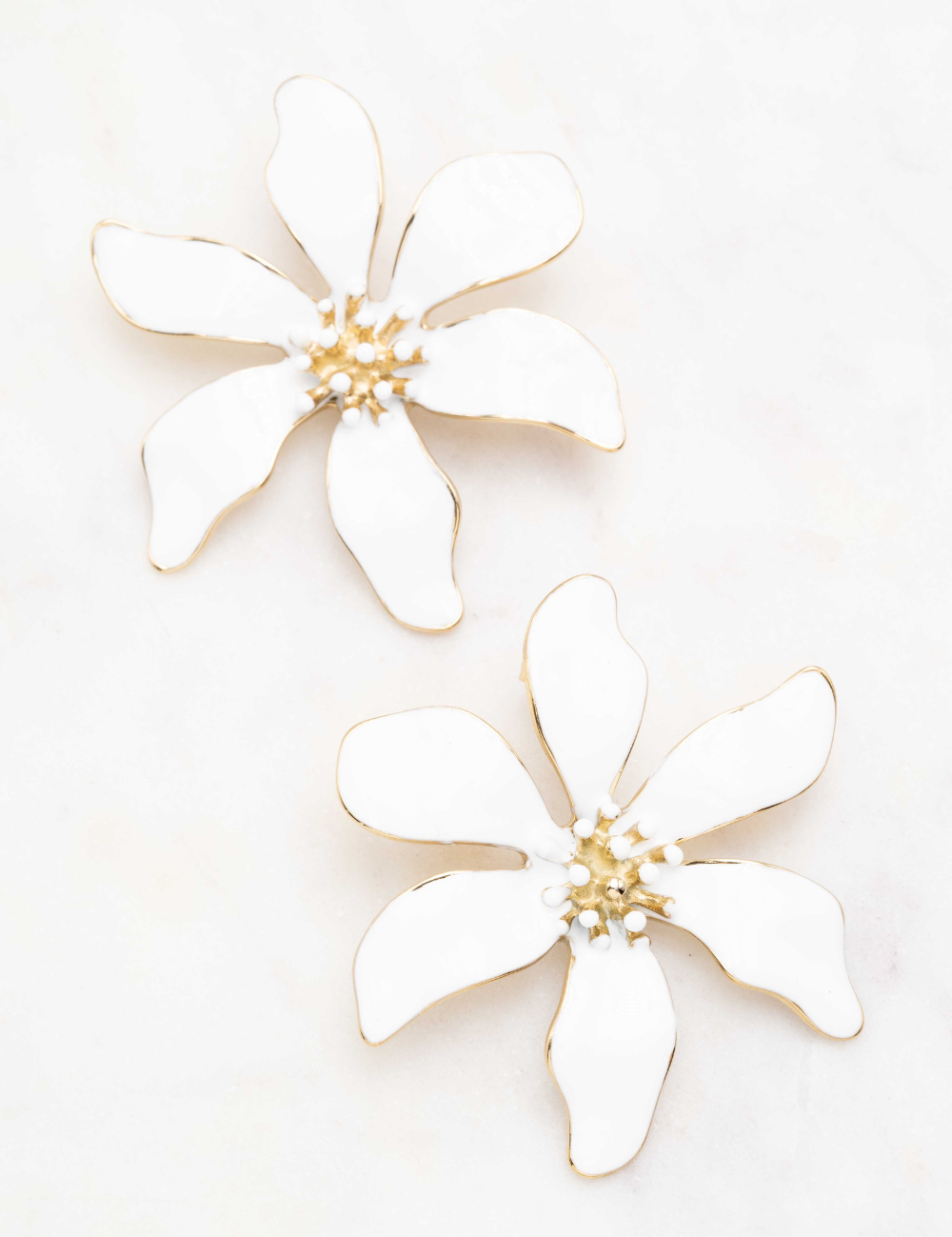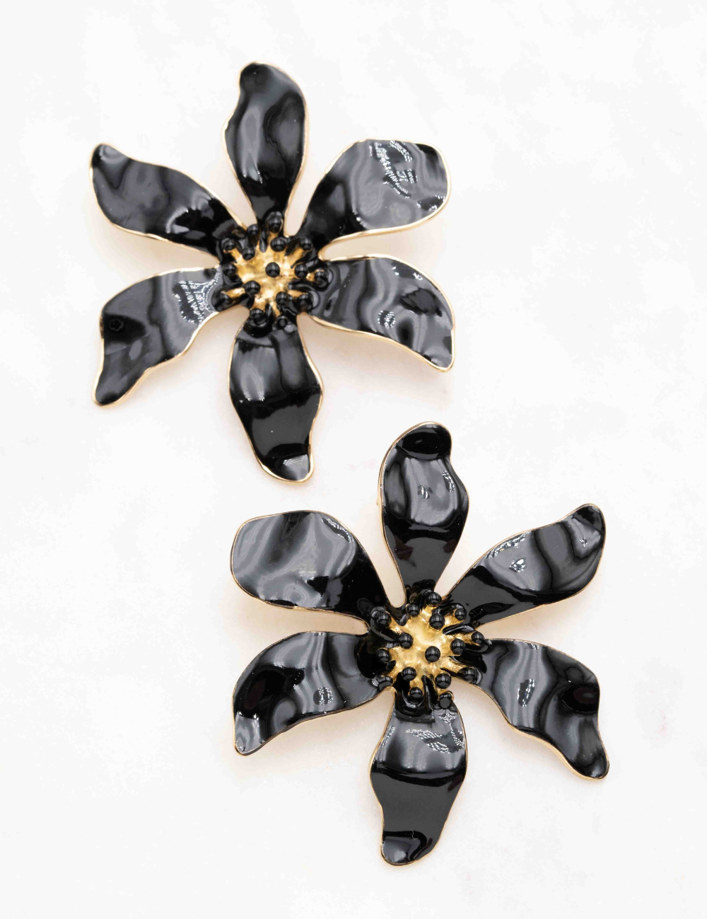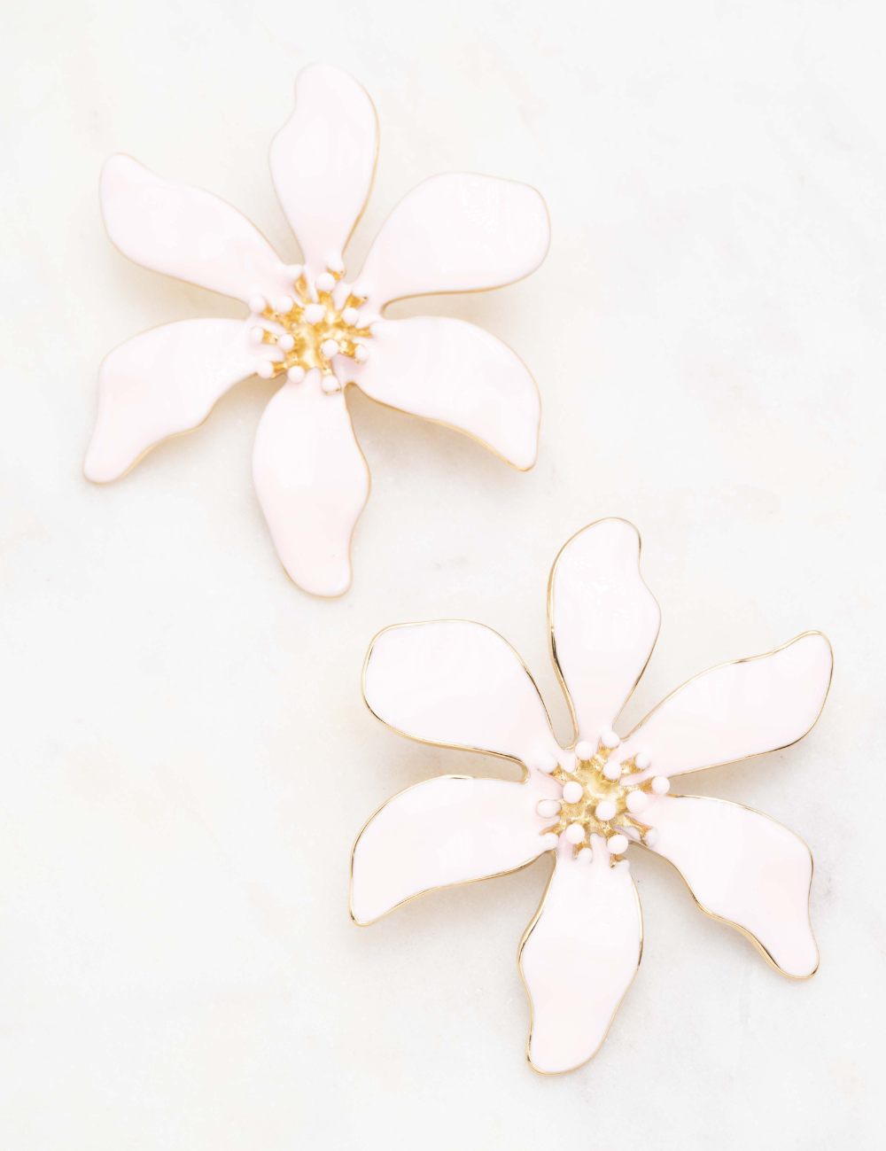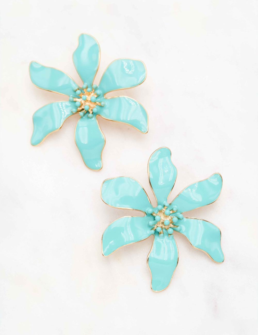 Boucles d'oreilles à puce formant une fleur émaillée colorée.