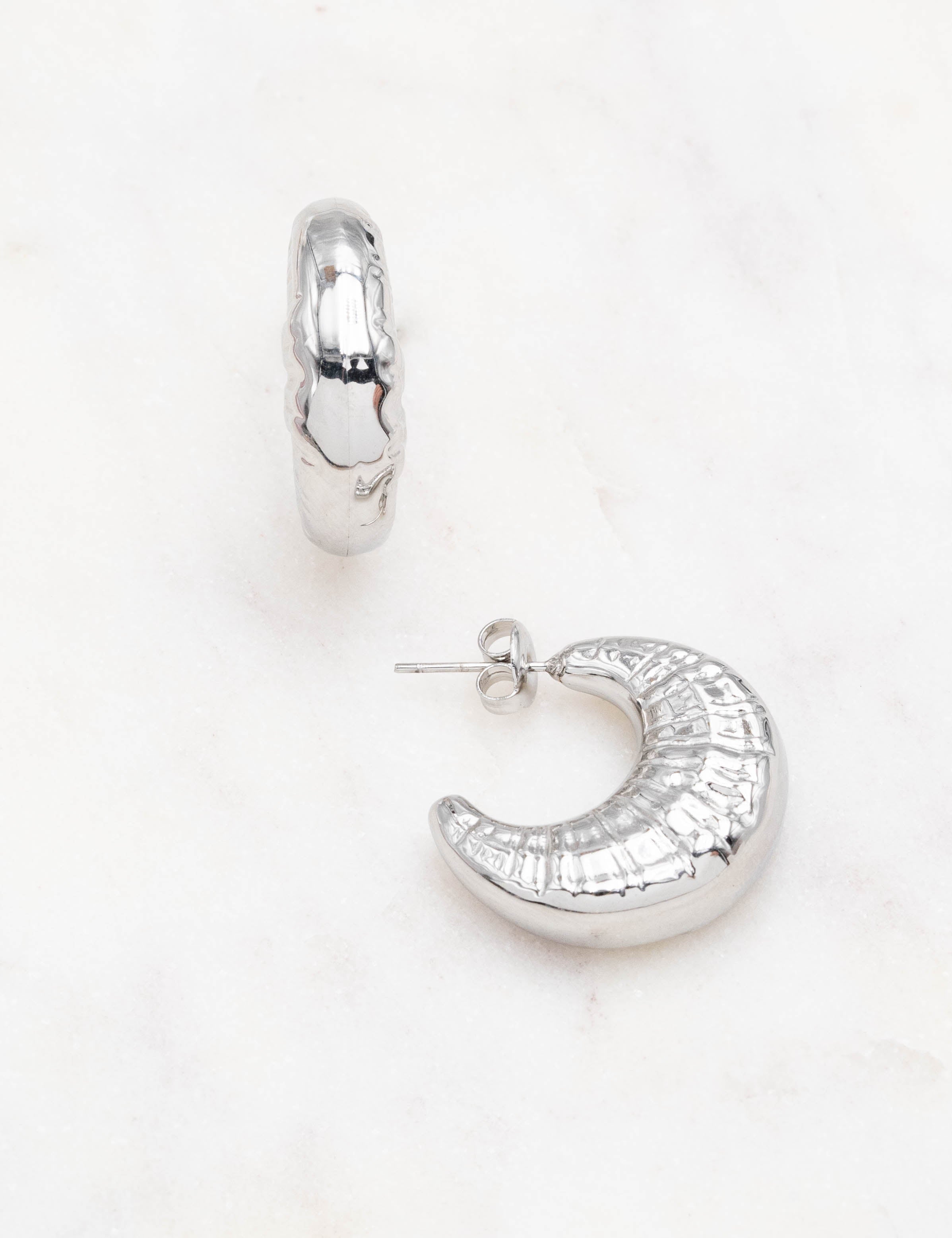 Boucles d'oreilles type créoles texturées à puce effet bombé.