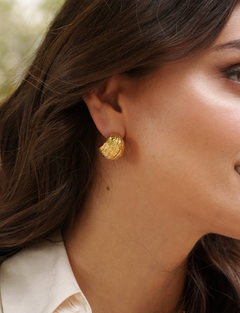 Boucles d'oreilles type créoles à puce bombées et texturées