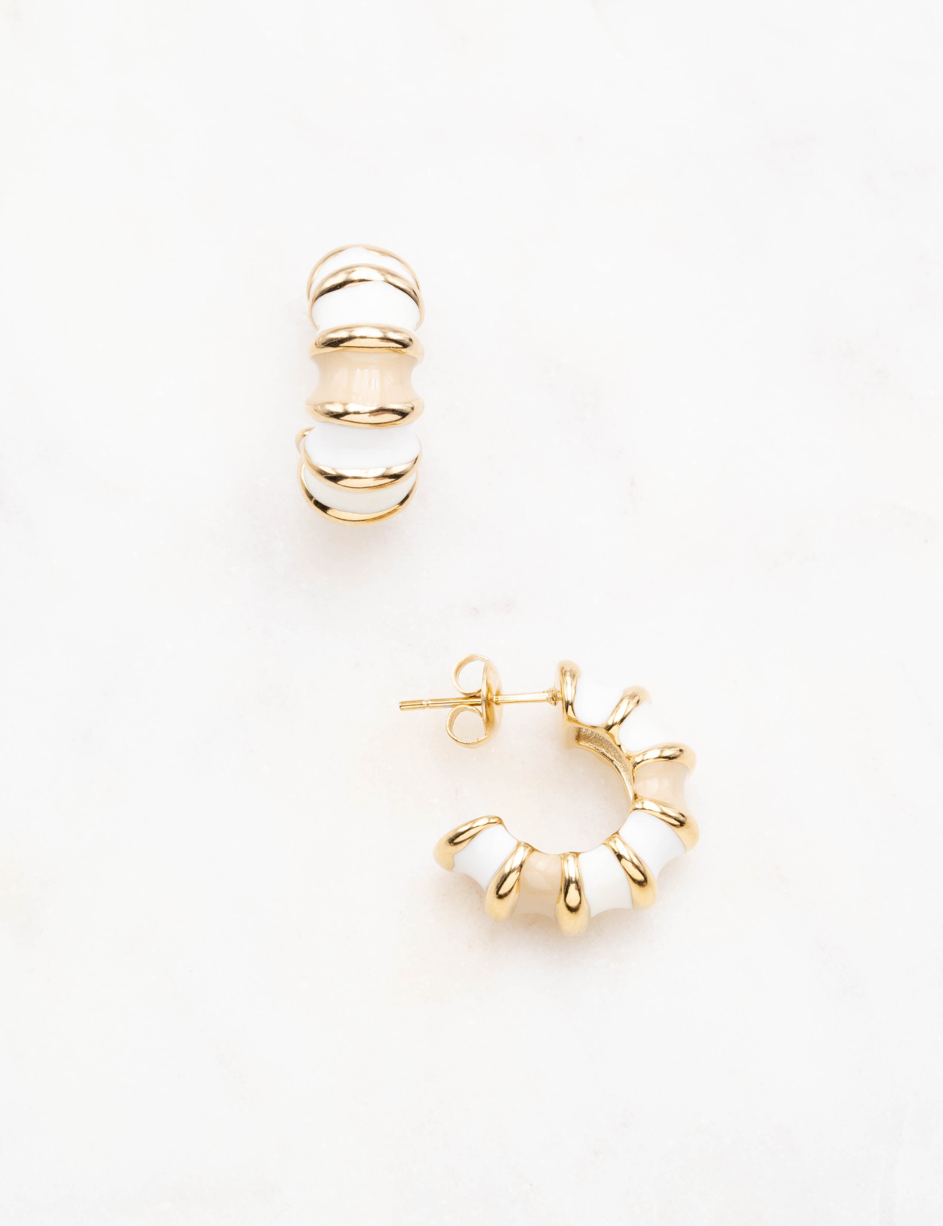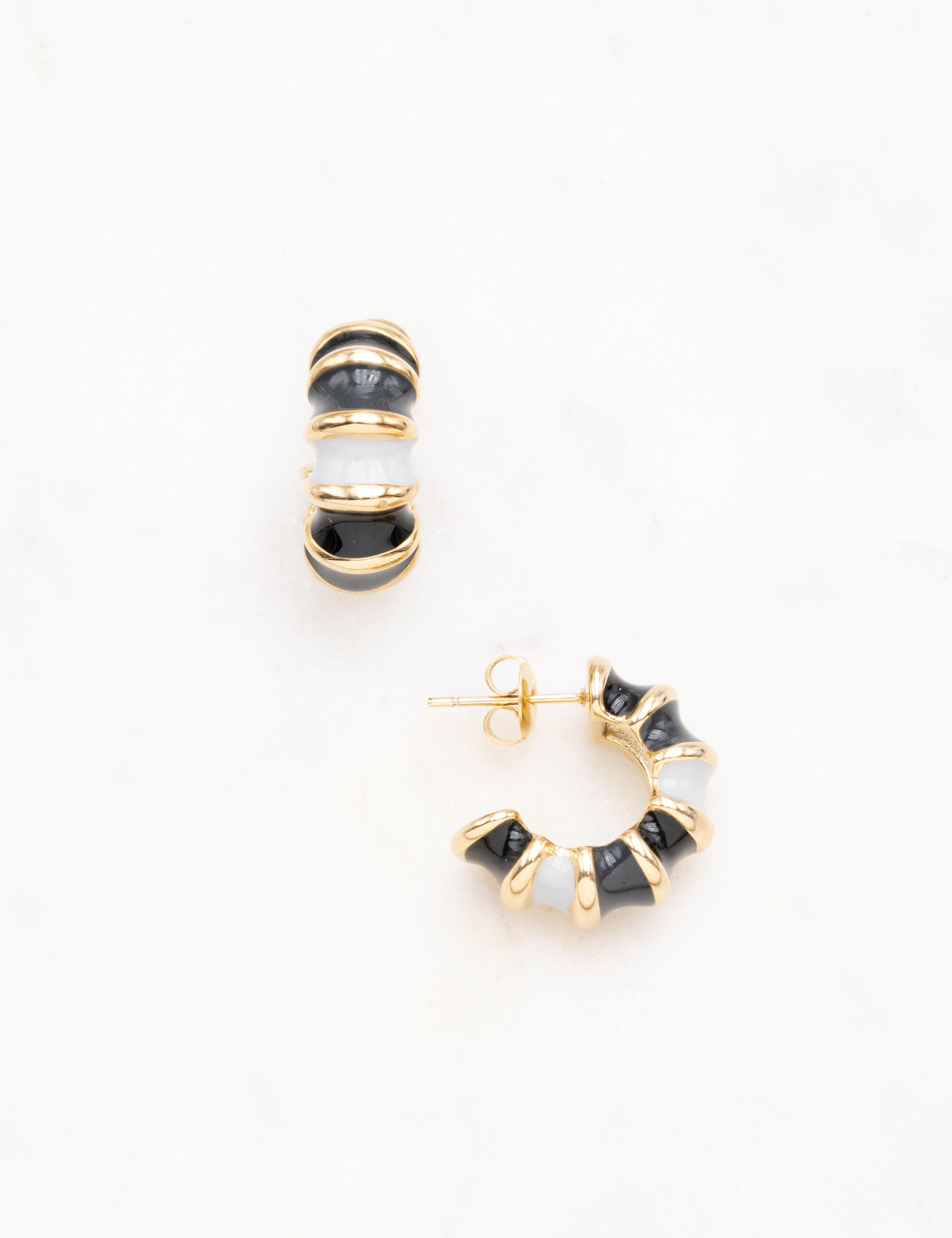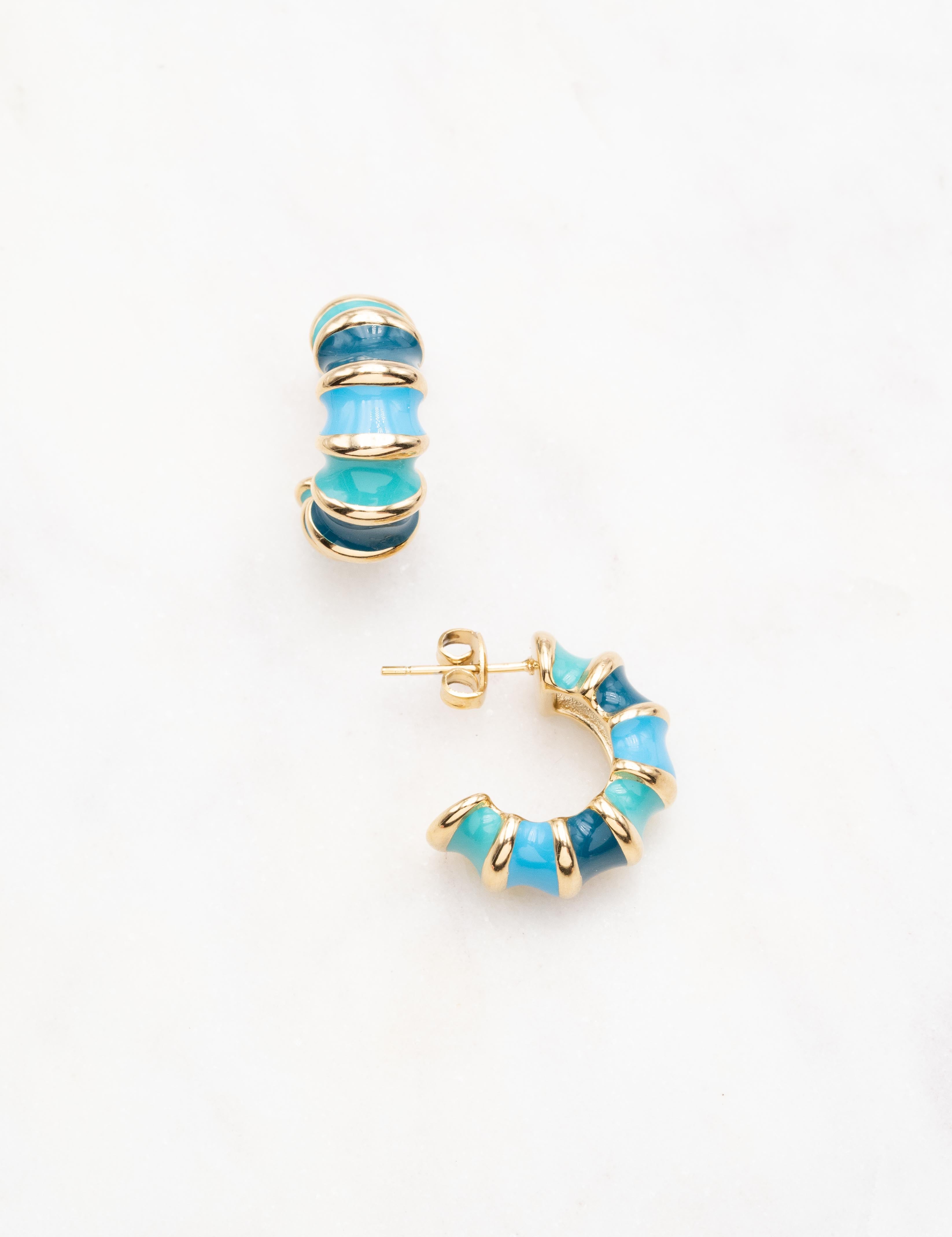 Boucles d'oreilles graphiques type créoles à puce émaillées colorées.