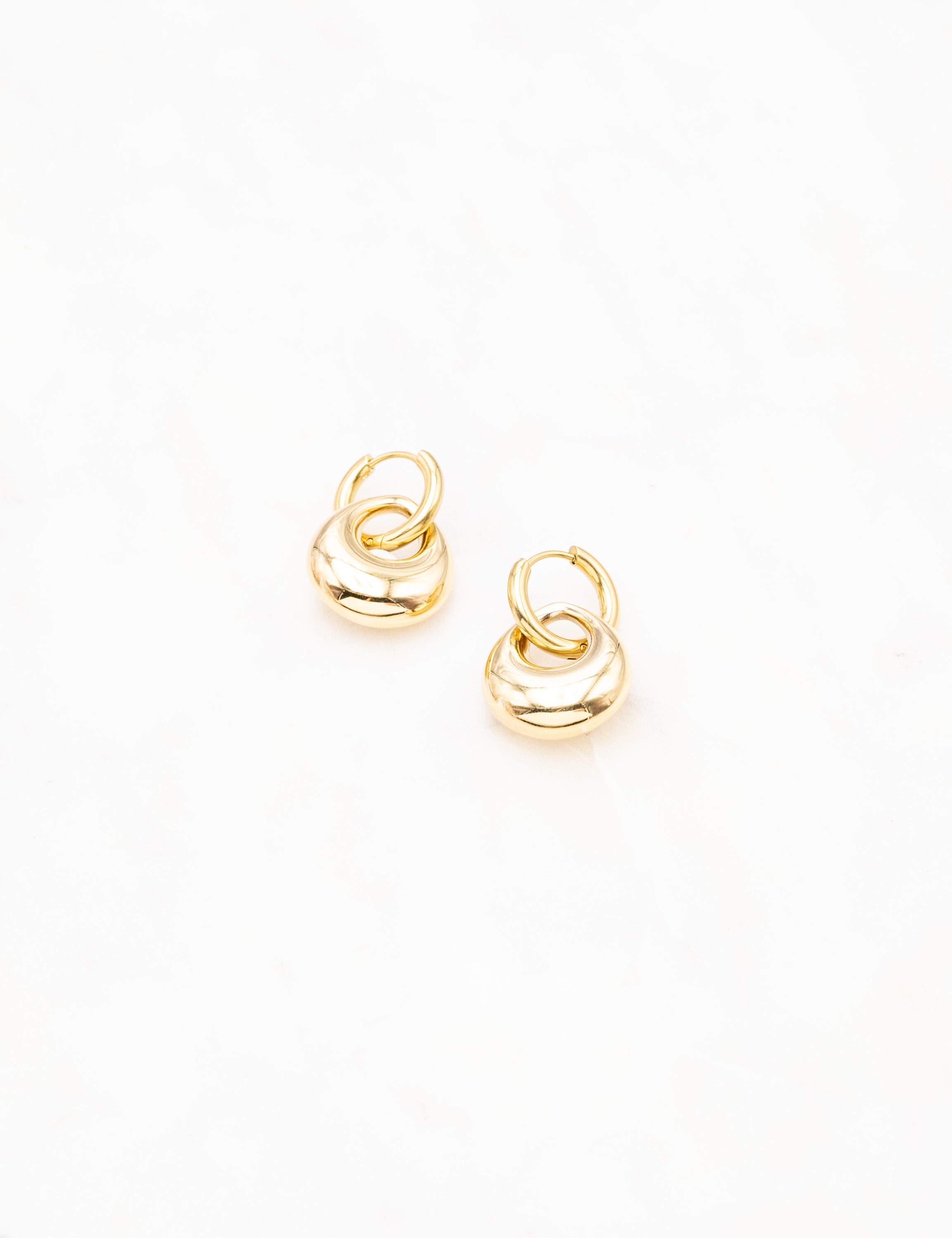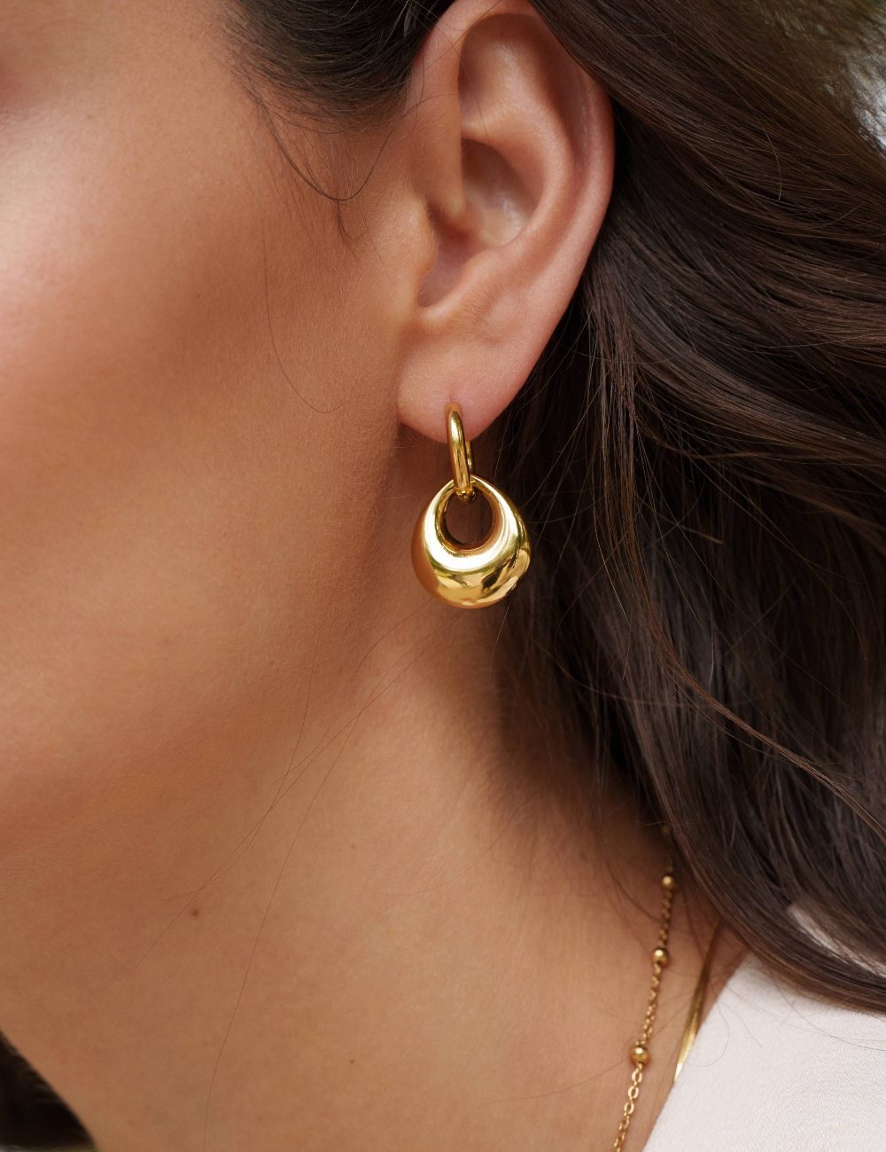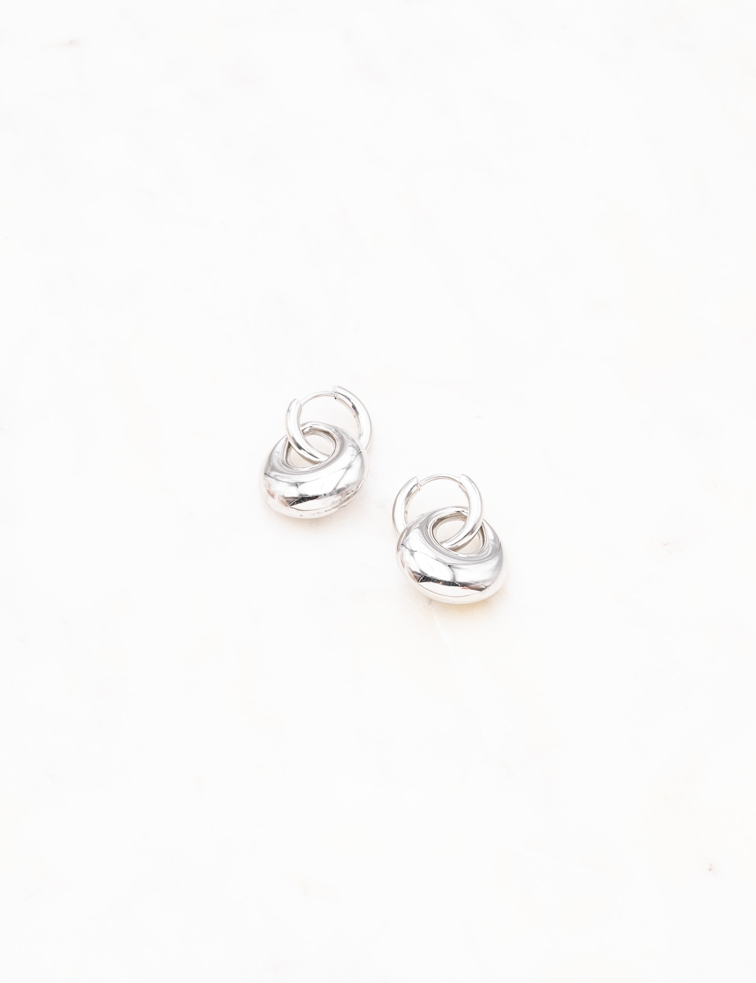 Boucles d'oreilles graphiques type créoles composées d'un pendant géométrique.