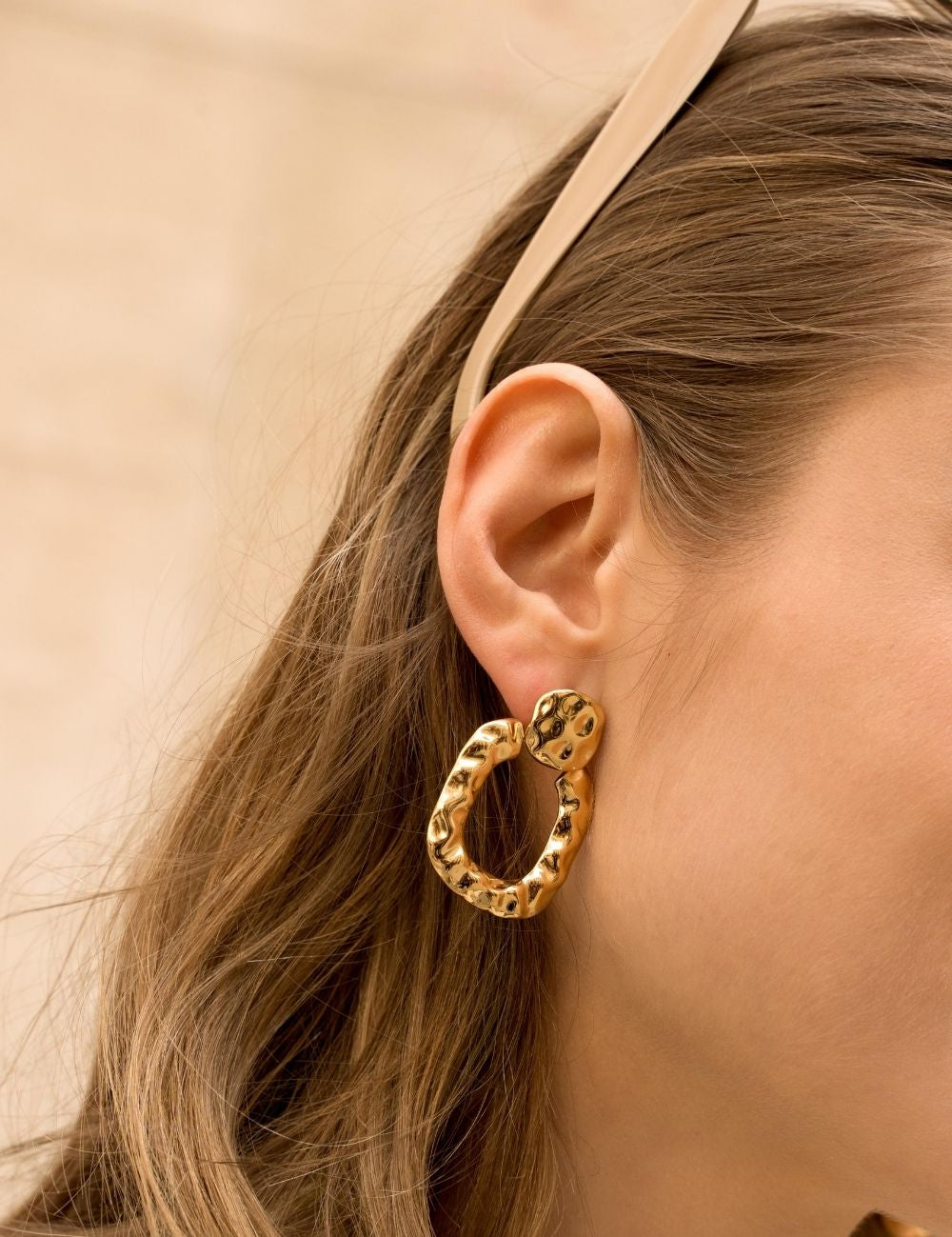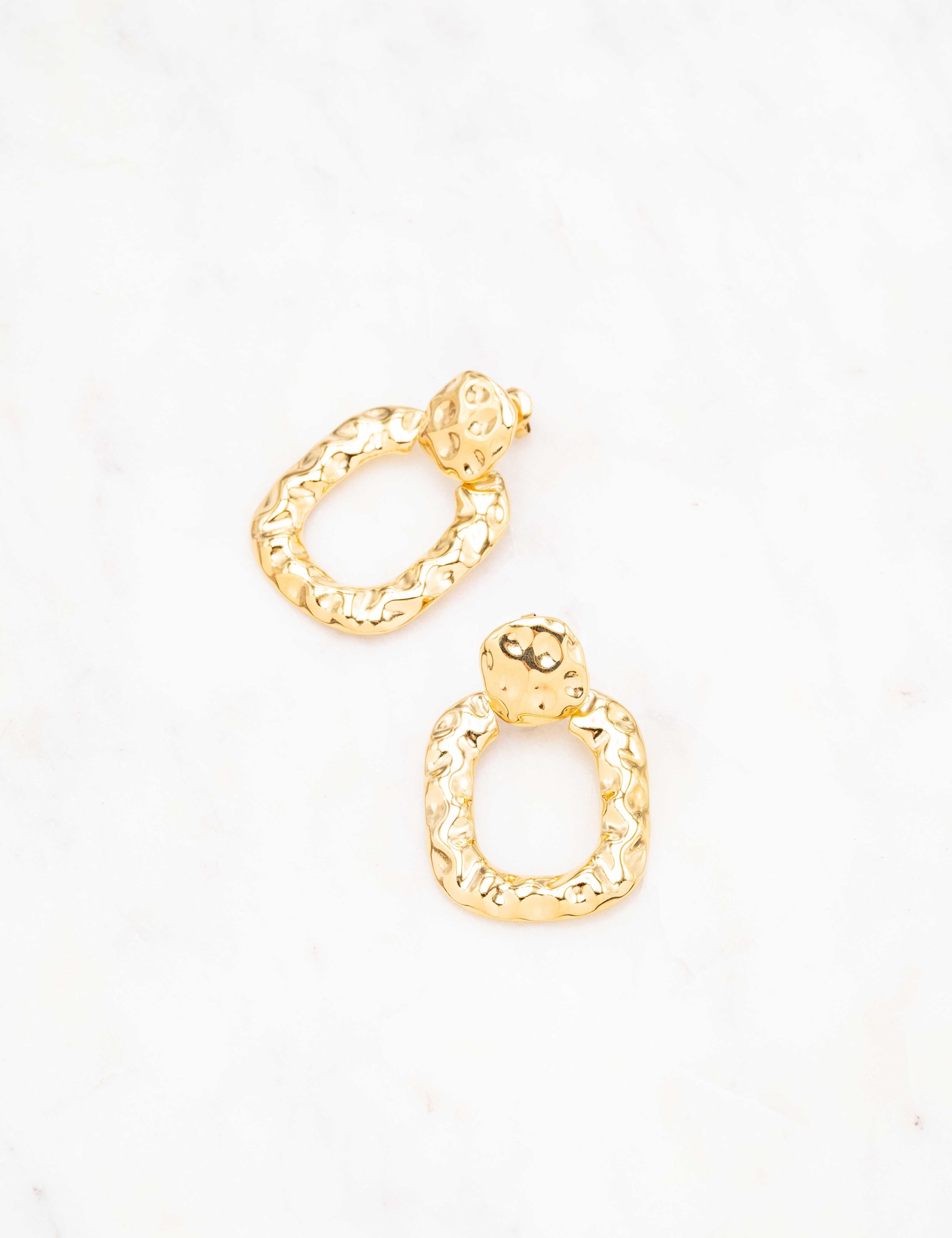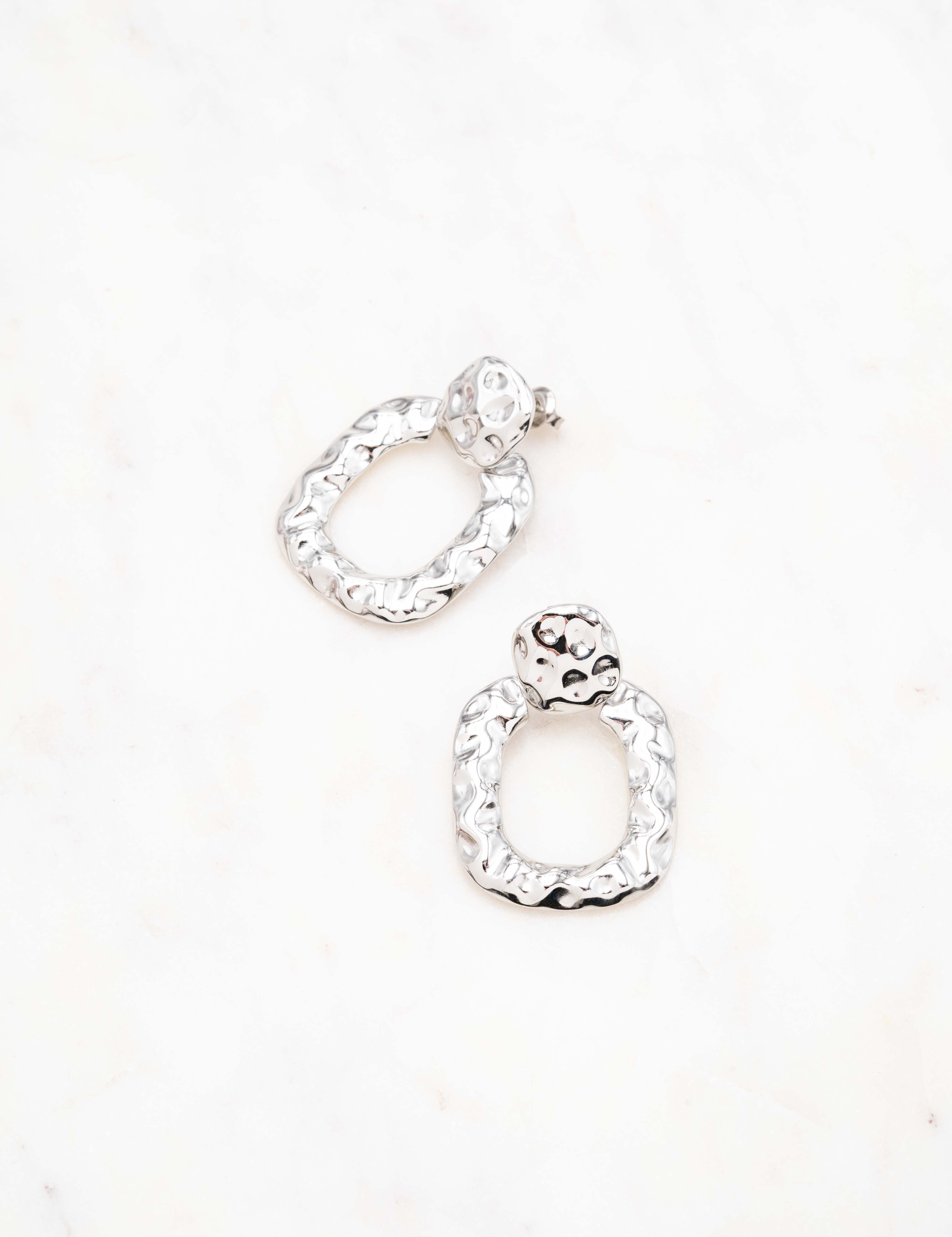 Boucles d'oreilles graphiques à puce composée d'une pièce texturée et ajourée de forme carrée.