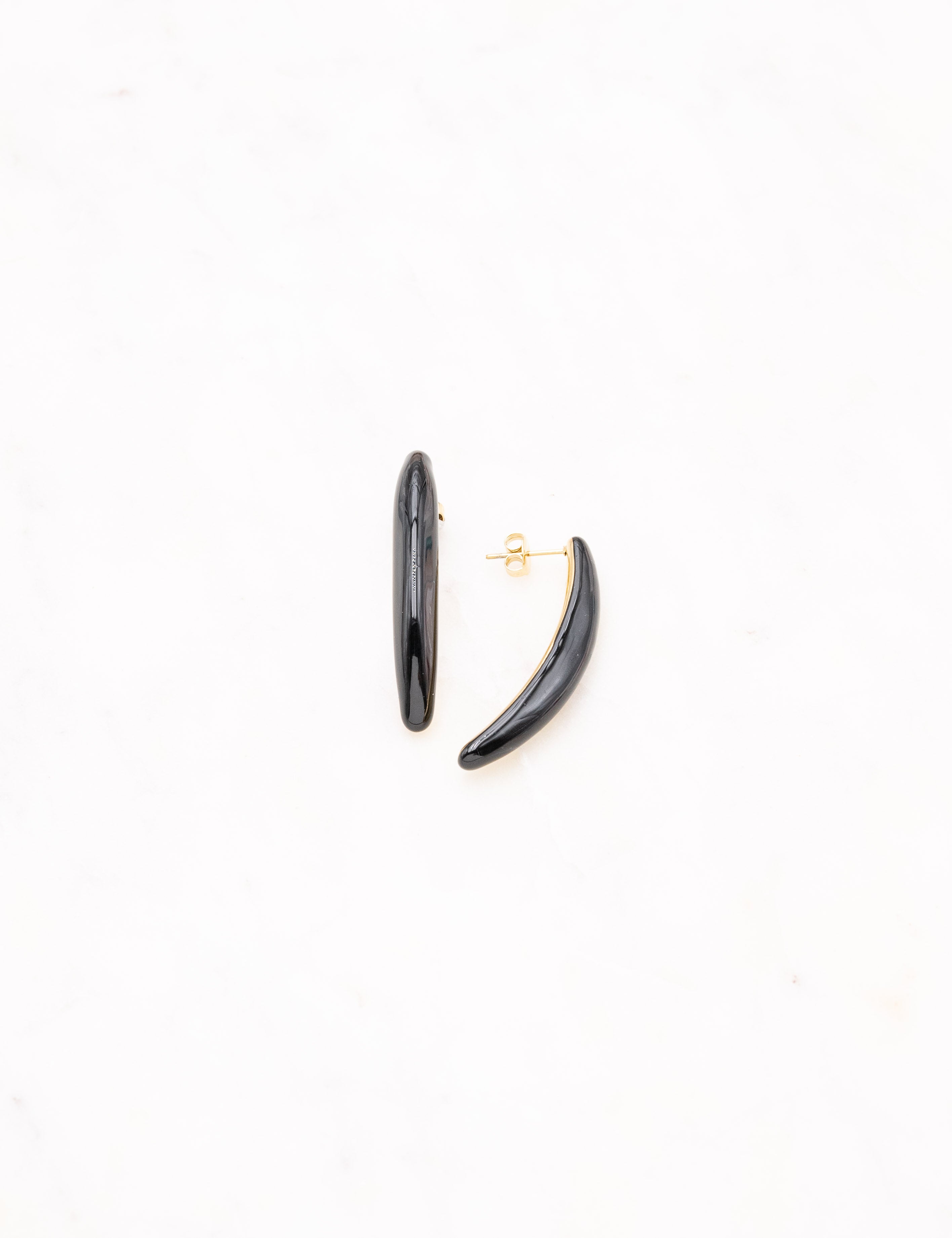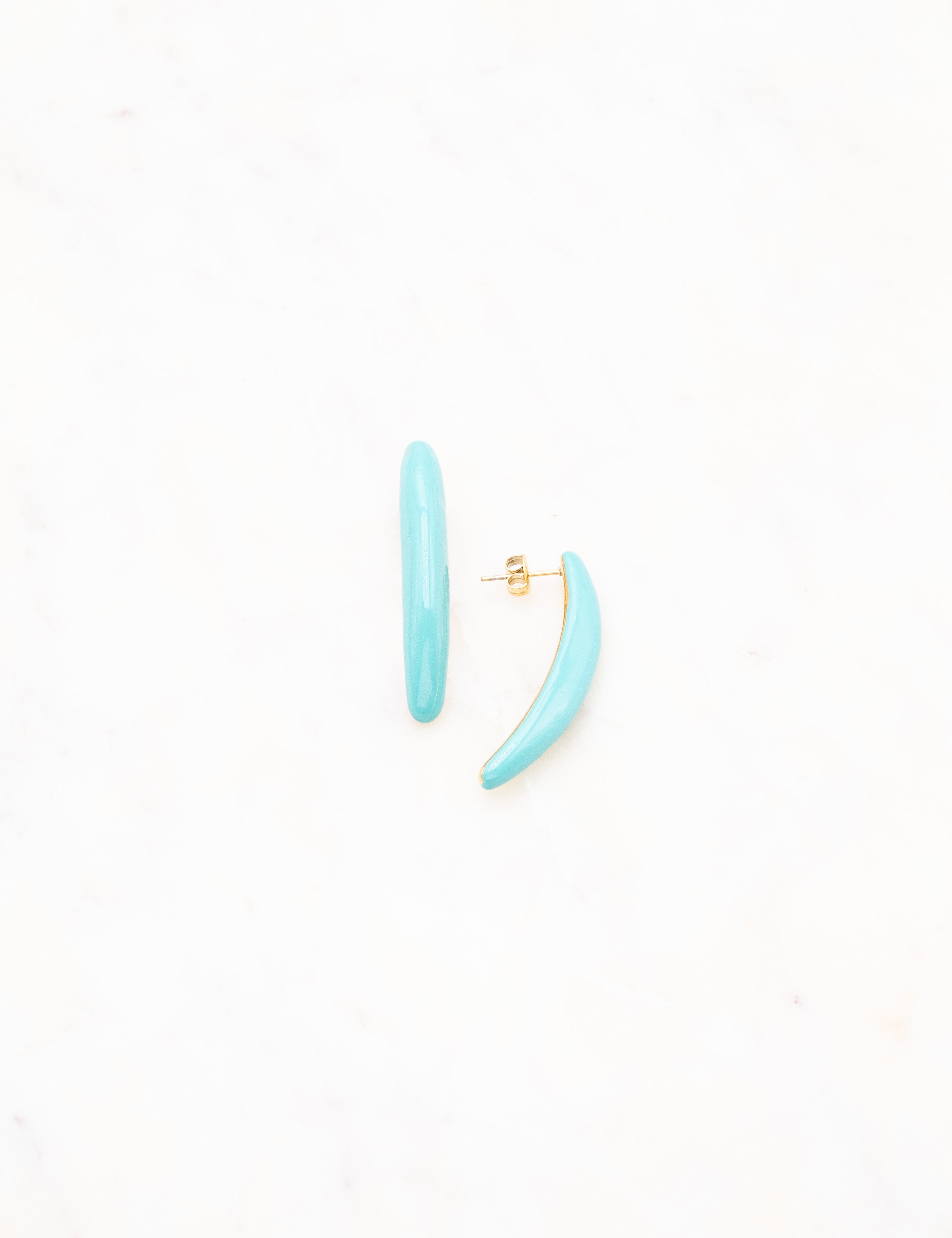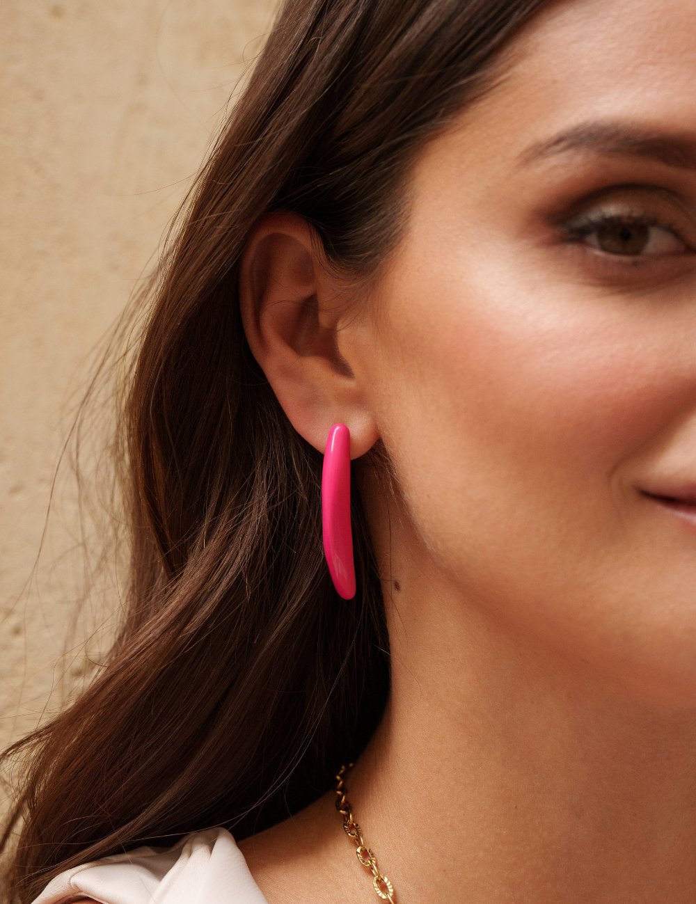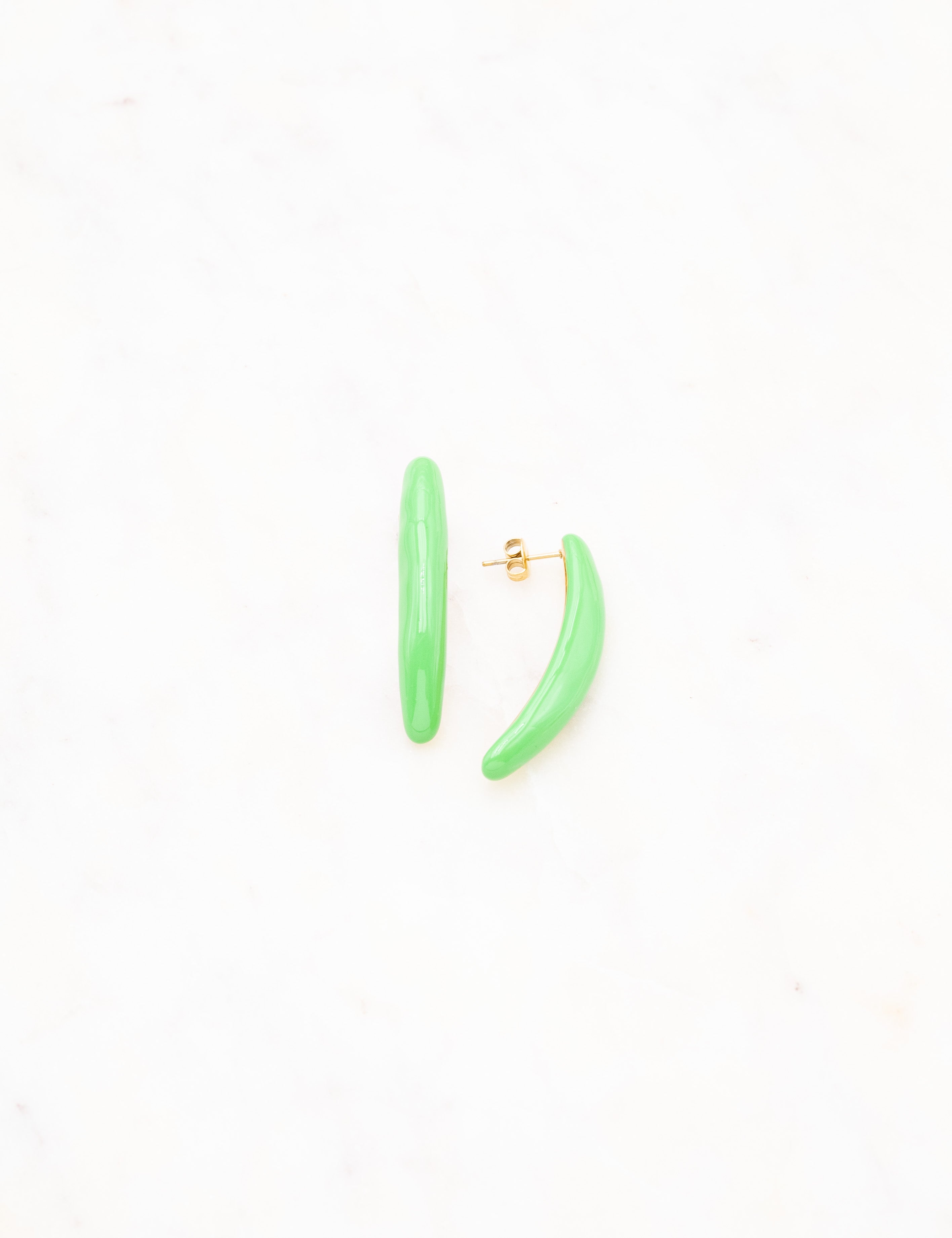 Boucles d'oreilles à puce composée d'une forme graphique colorée émaillée.