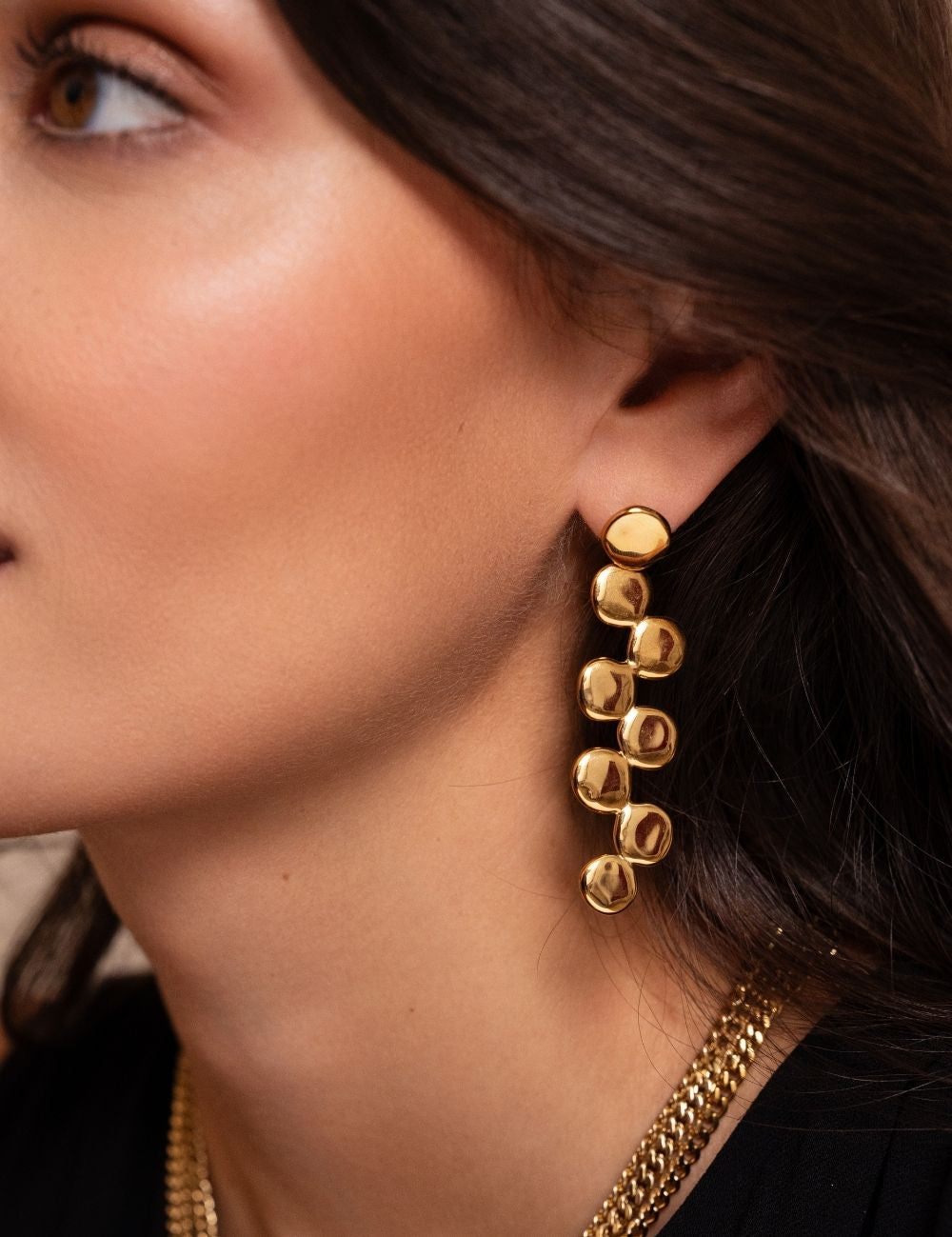 Boucles d'oreilles graphiques à puce pendantes composées de multi-ronds.