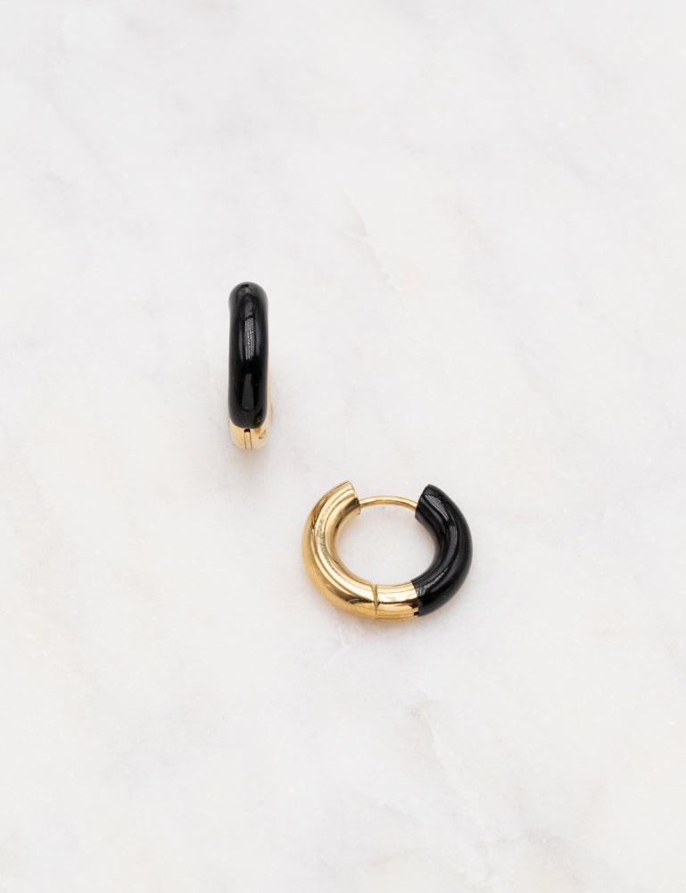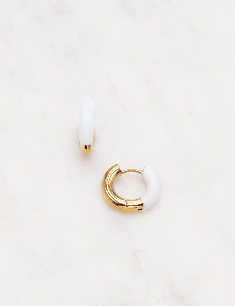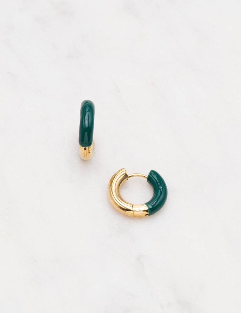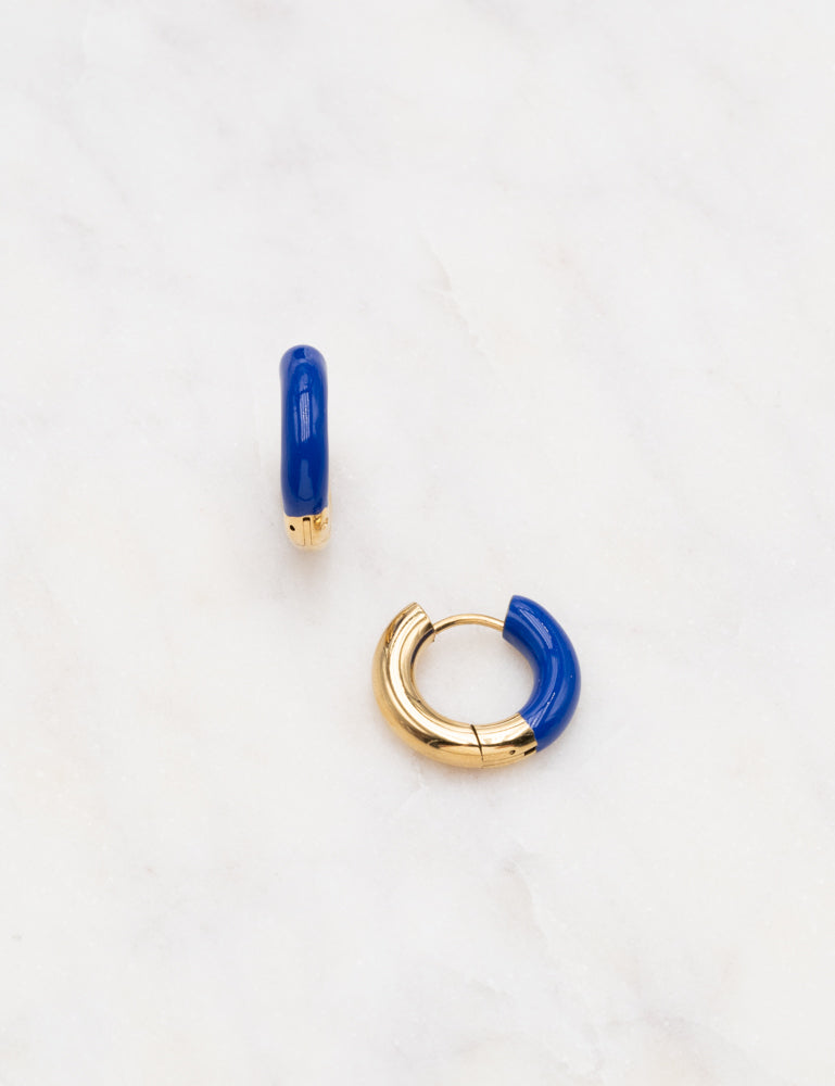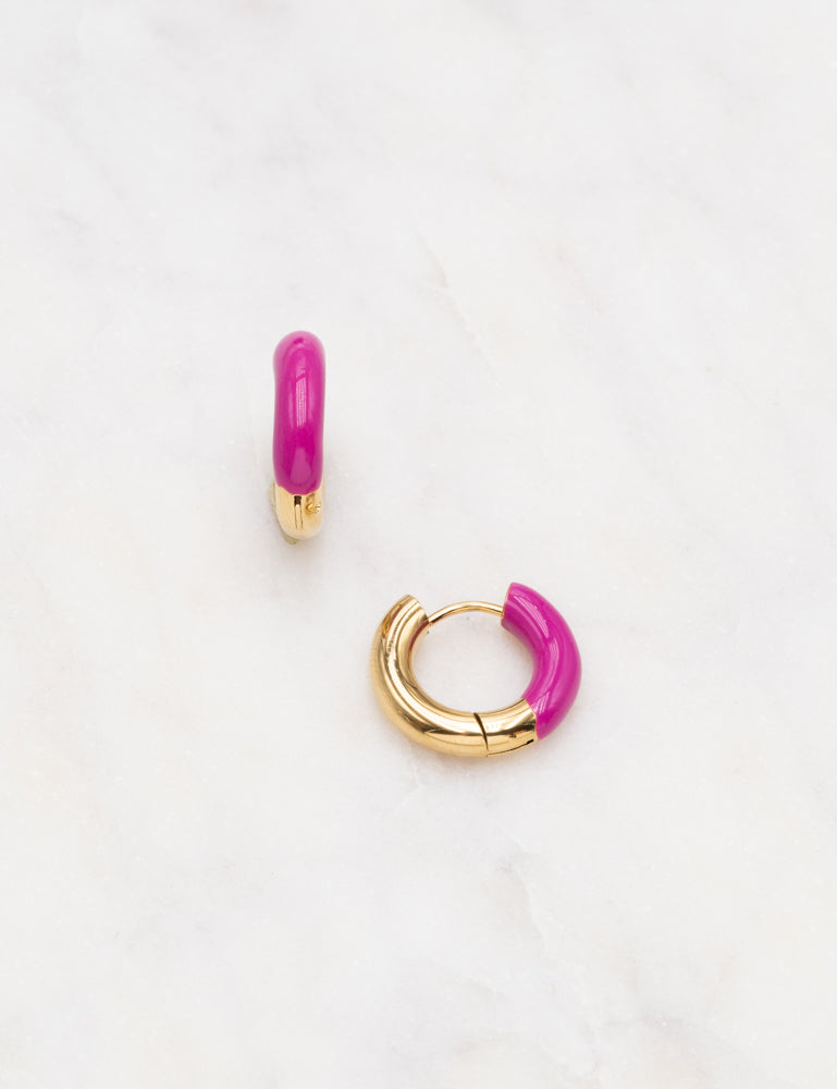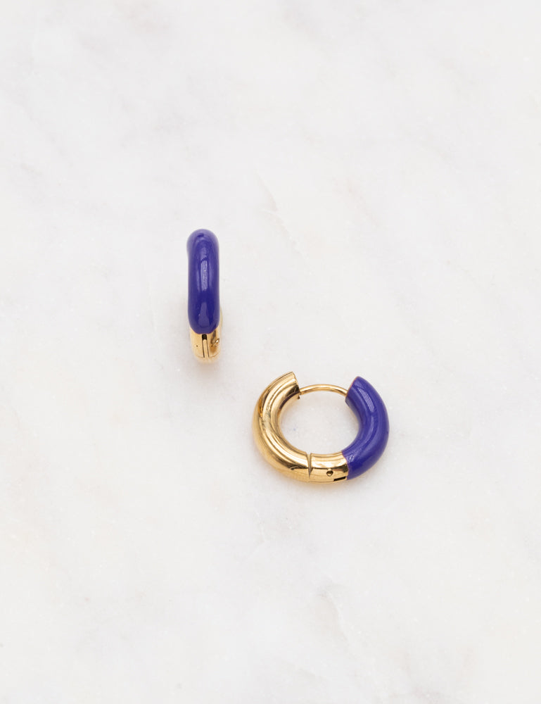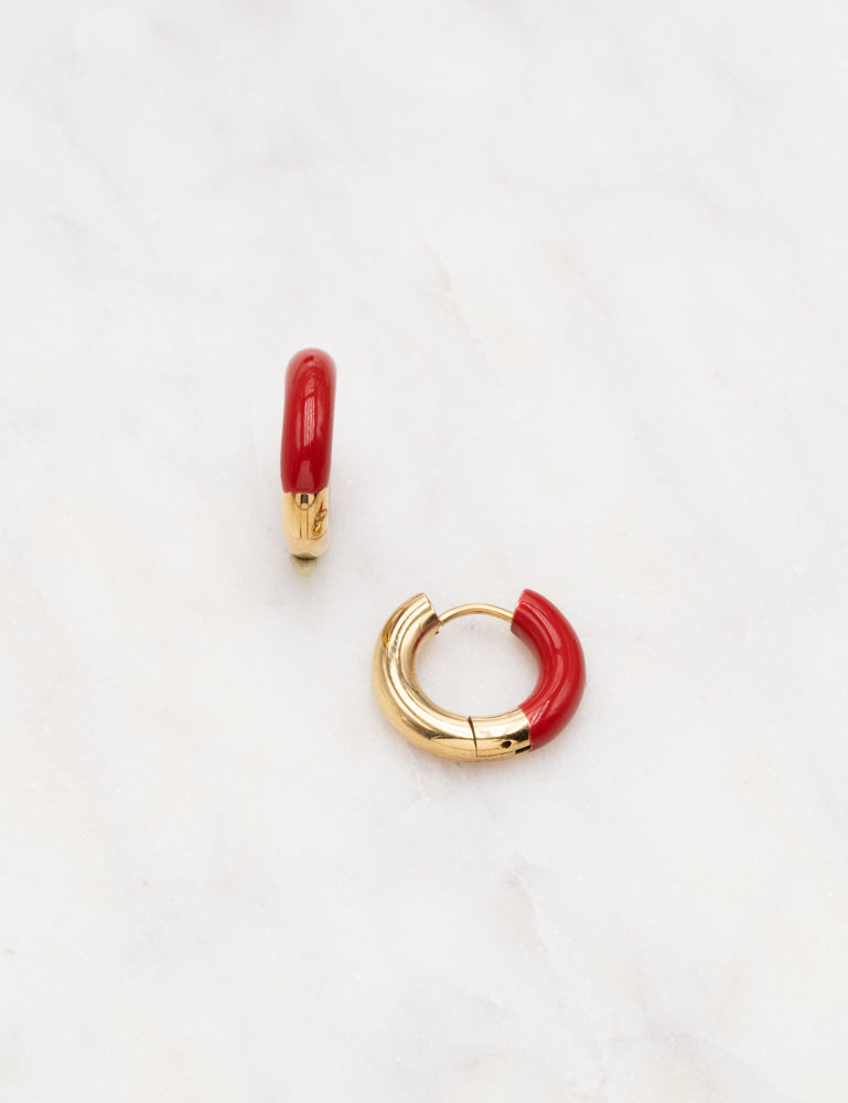 Boucles d'oreilles de type créoles bi matières (acier et émail coloré).