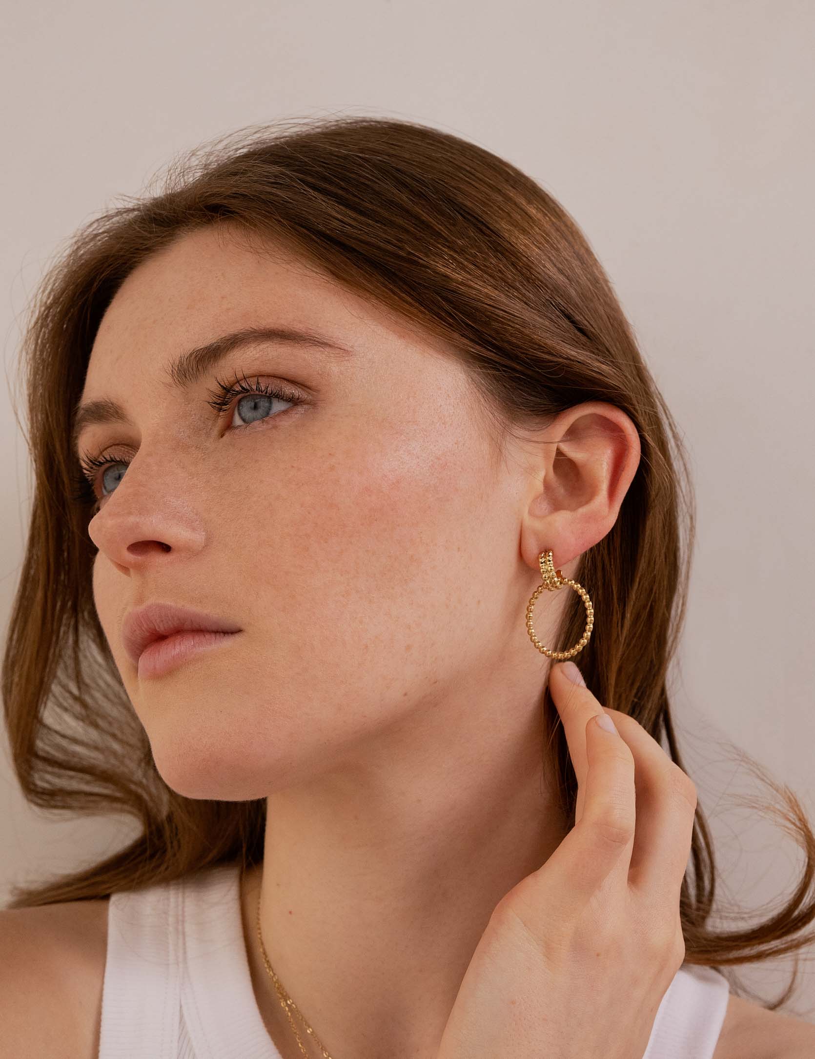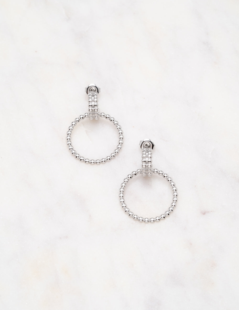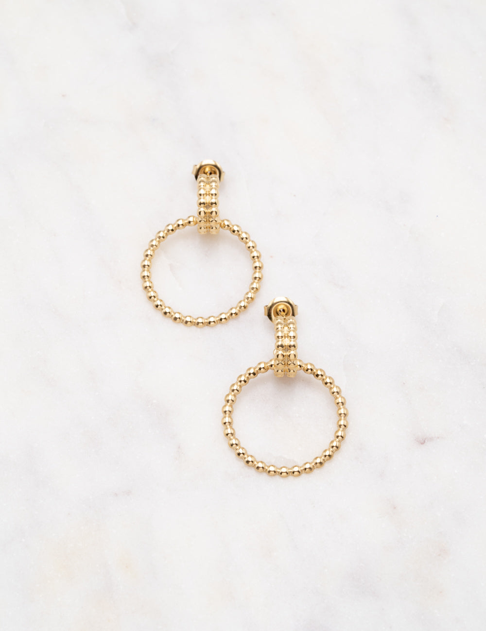 Boucles d'oreilles type créoles à puce composées d'une demi créole et d'un anneau effet cannelé. Fermoir papillon.