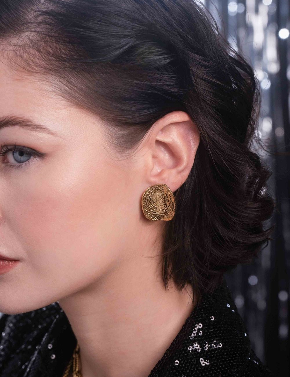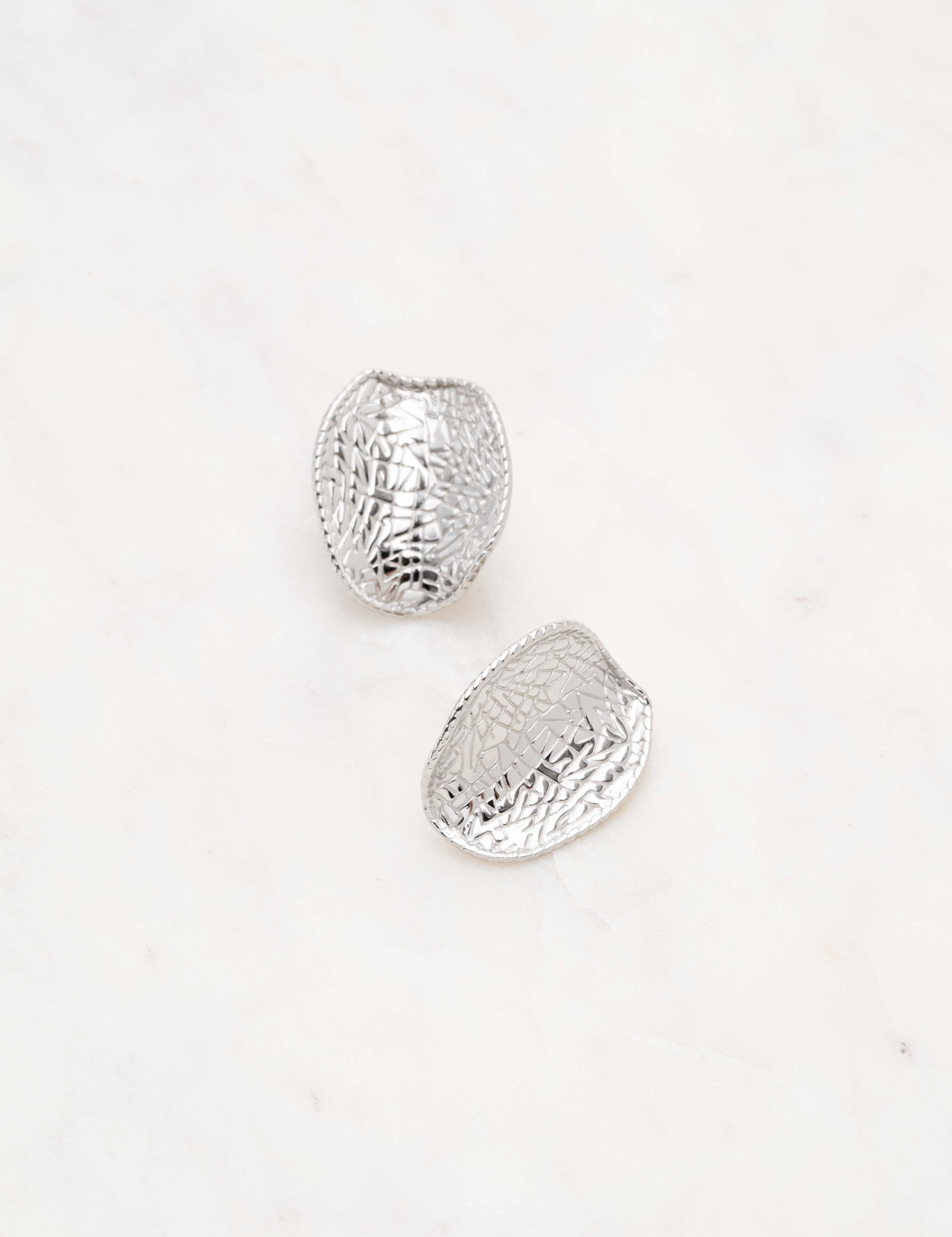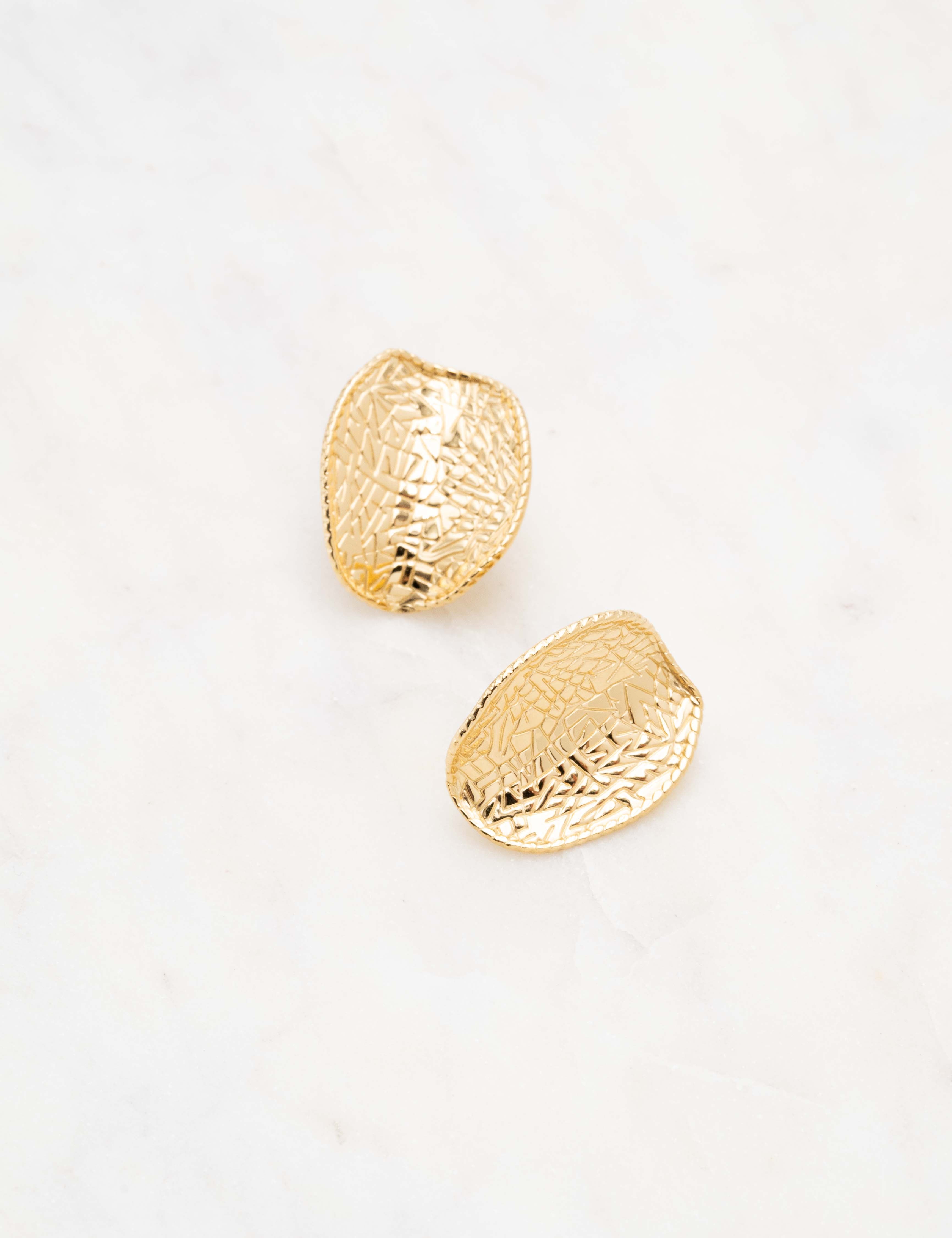Boucles d'oreilles graphiques à puce composées d'une pièce martelée effet brossé.