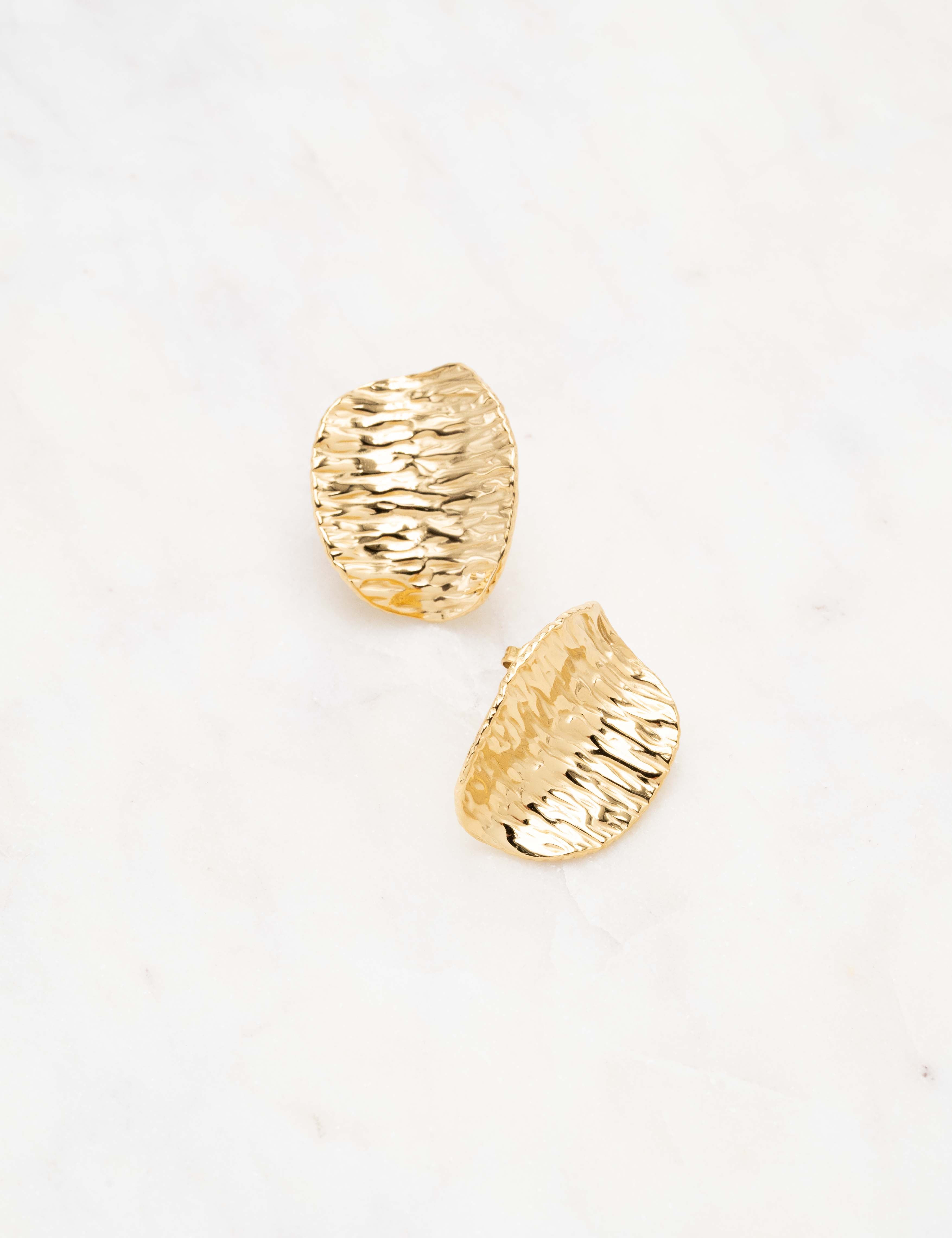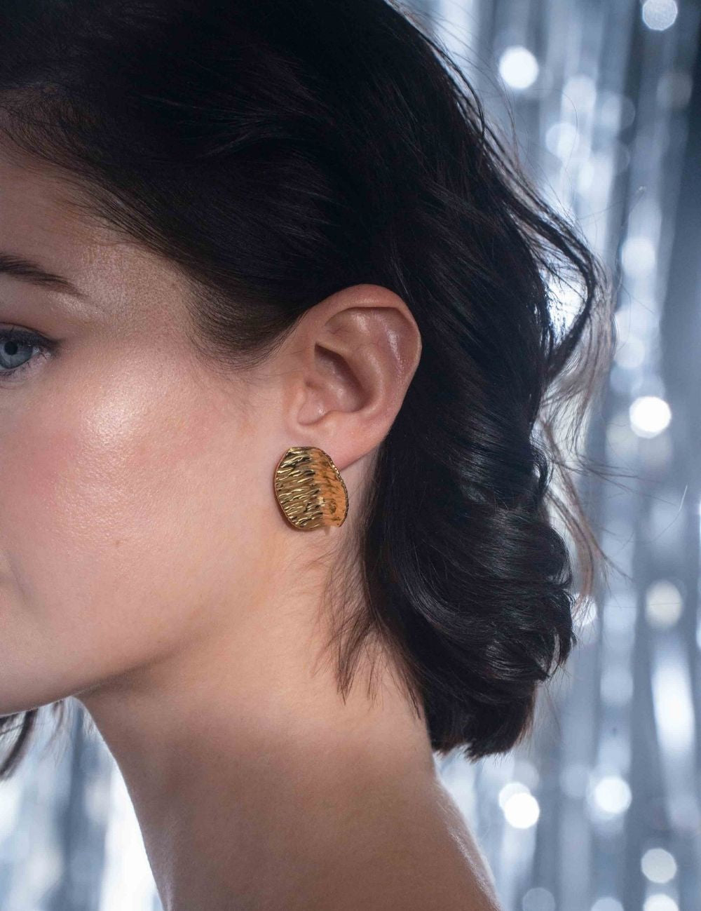 Boucles d'oreilles graphiques à puce composées d'une pièce texturée à la transversale.