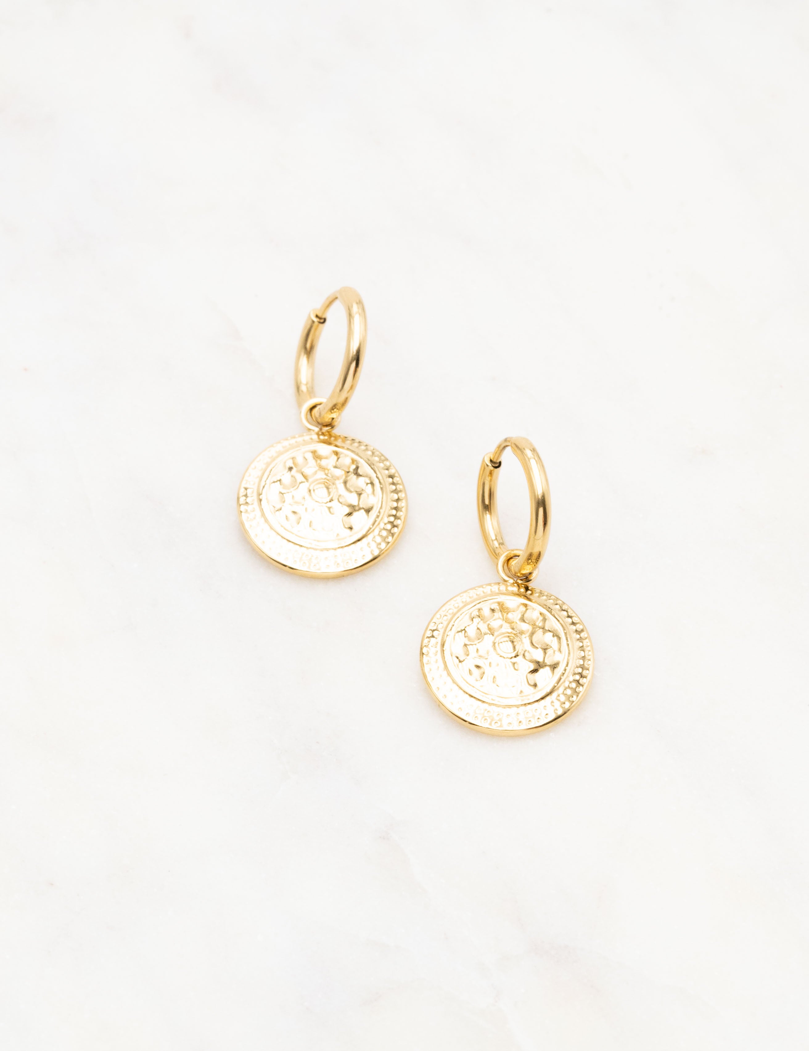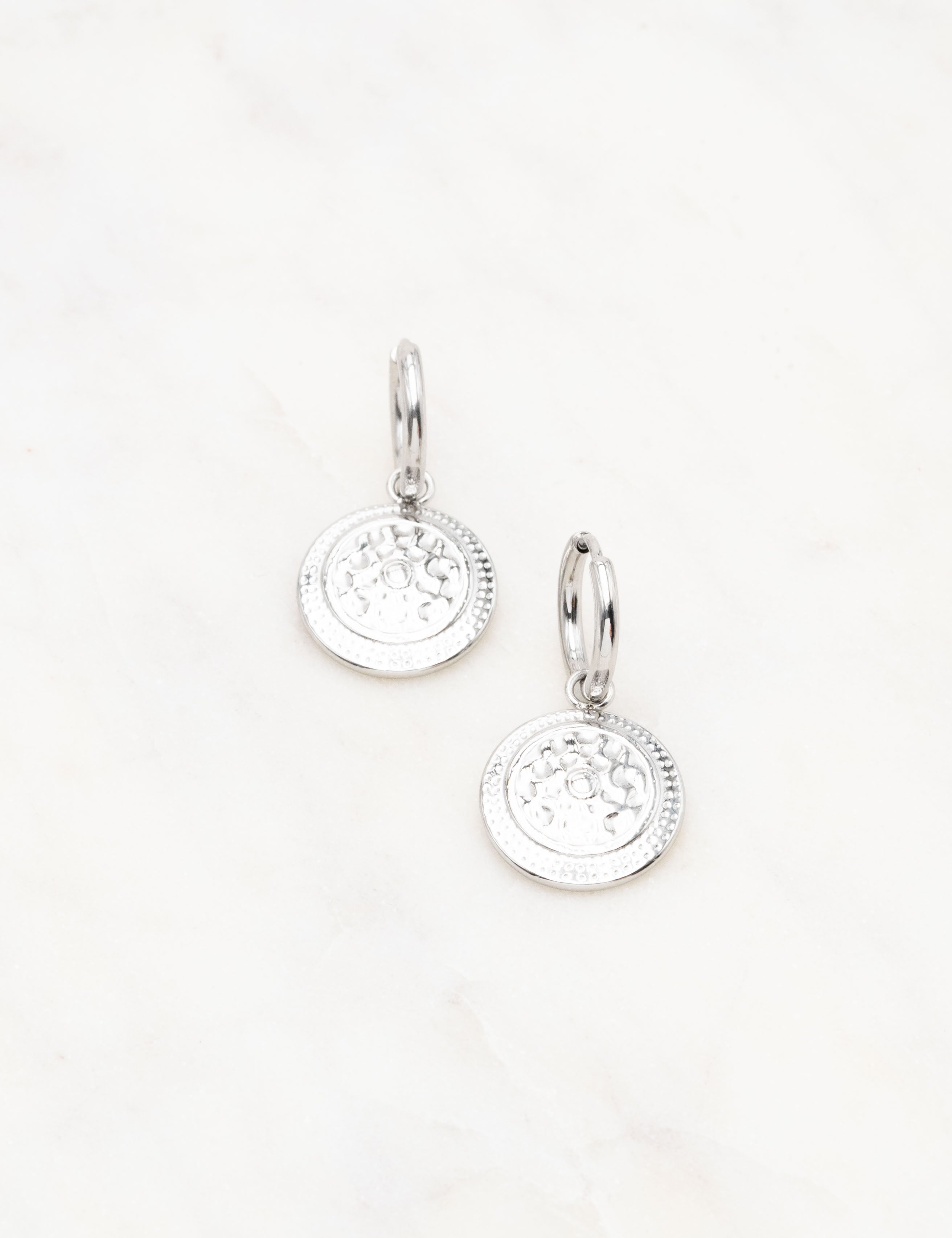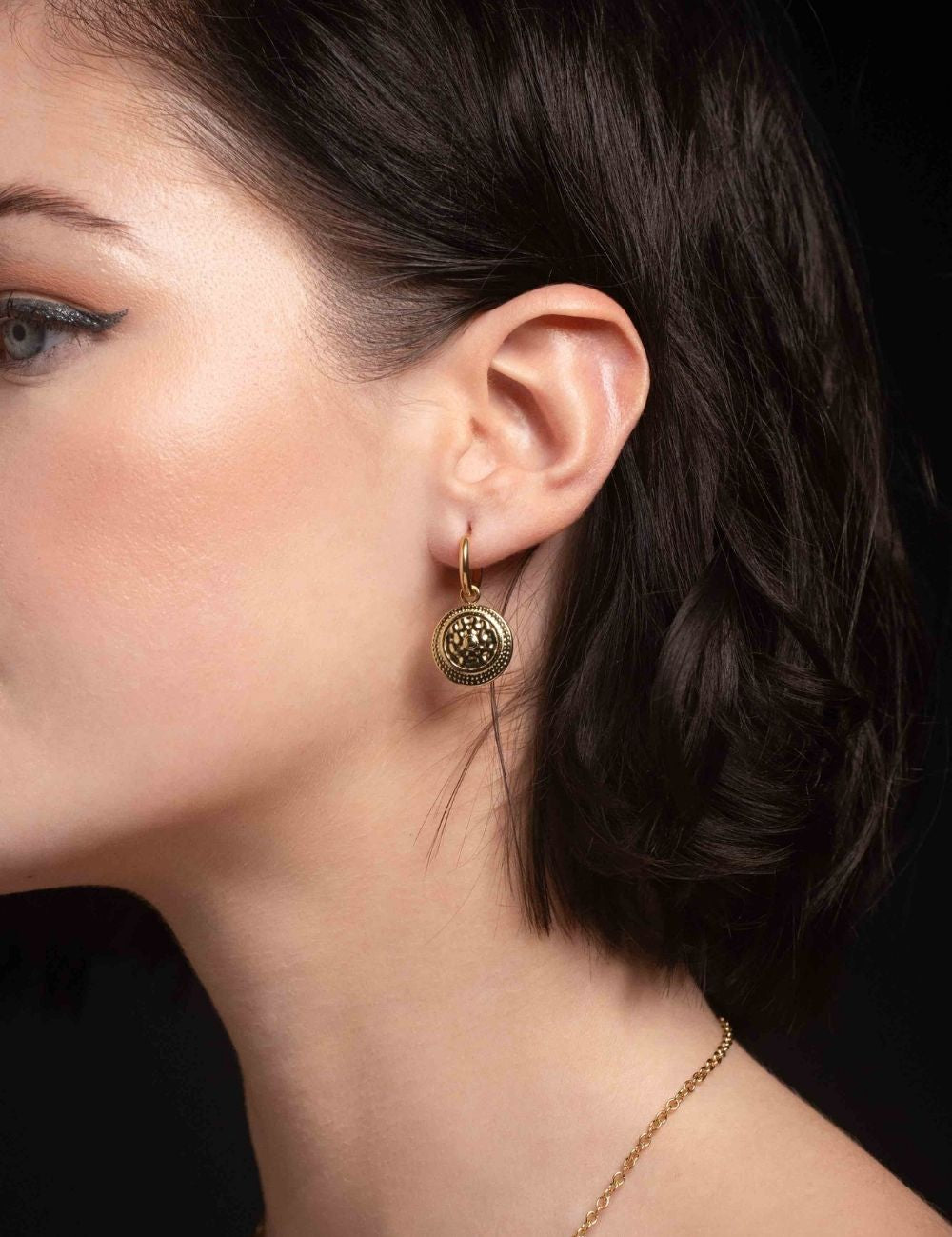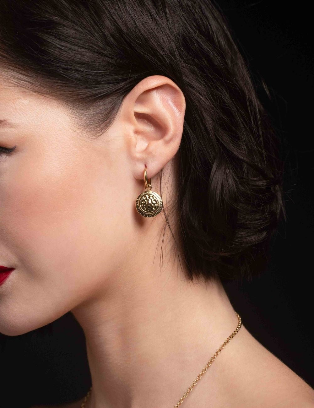Boucles d'oreilles type créoles composées d'une pièce ronde martelée.