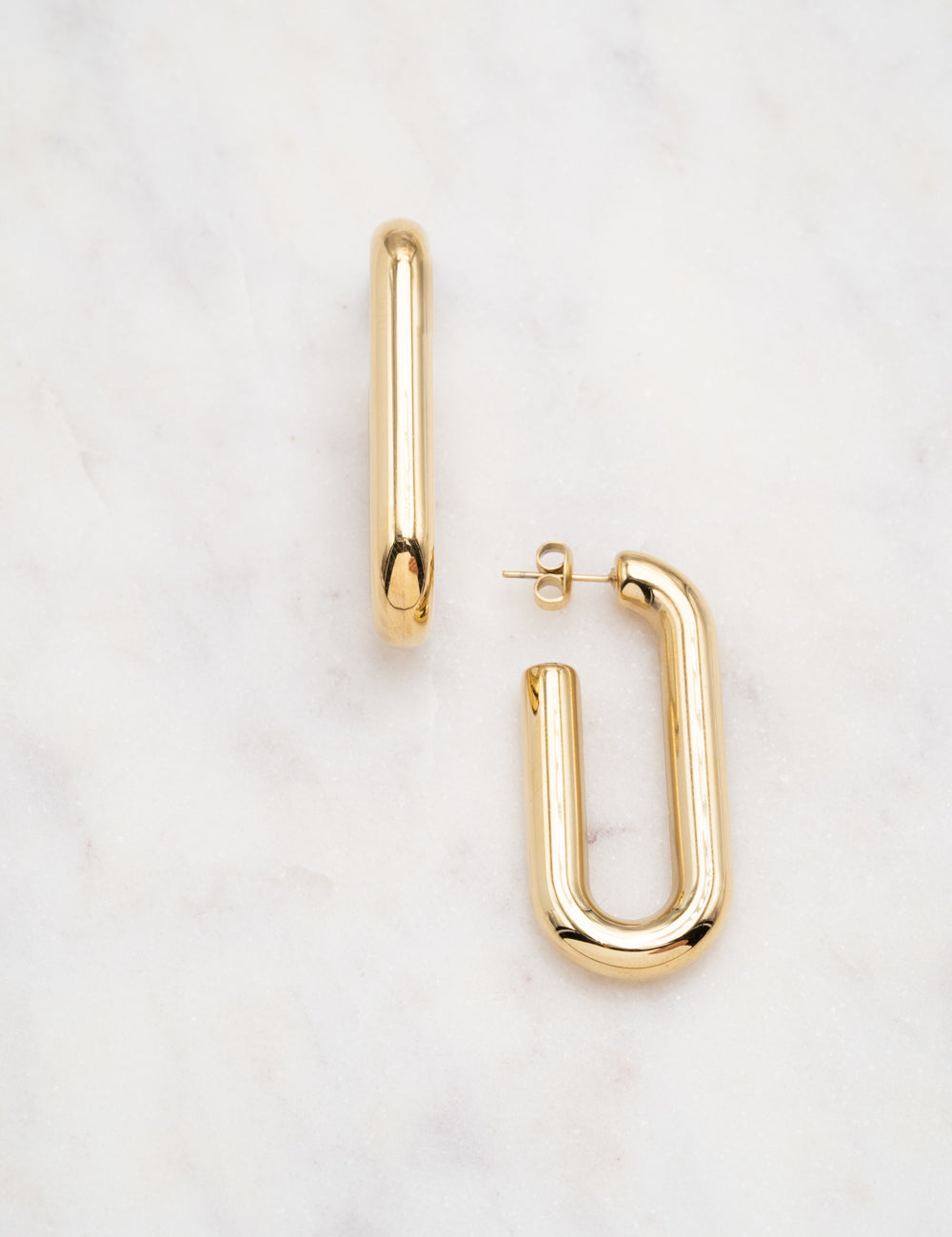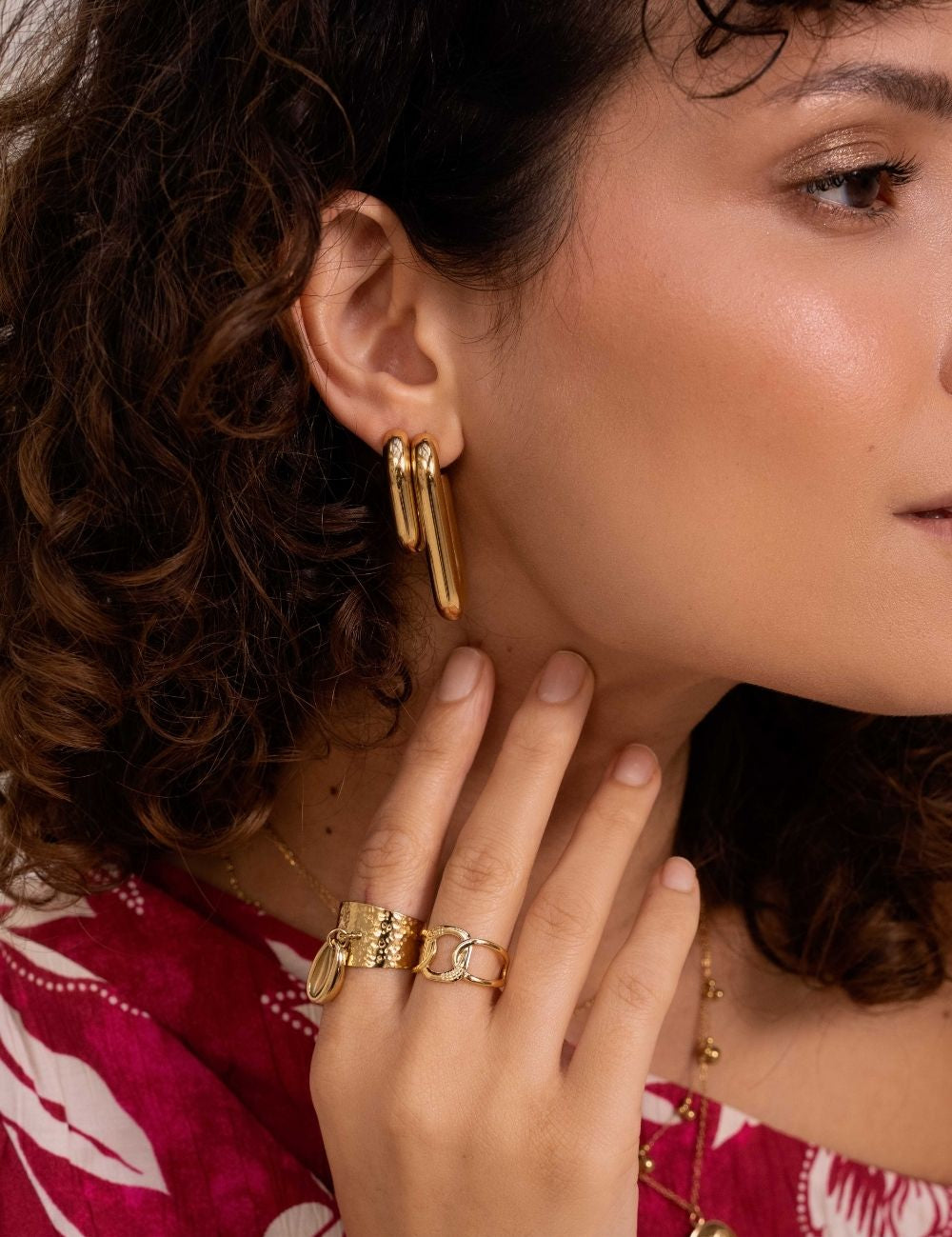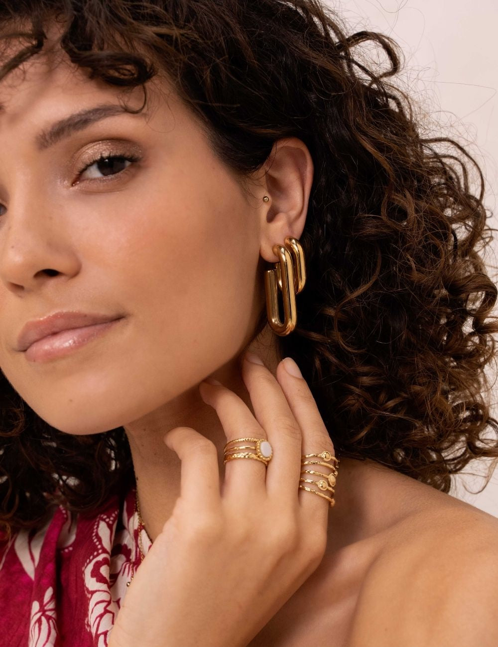 Boucles d'oreilles graphiques type créoles larges à puce.